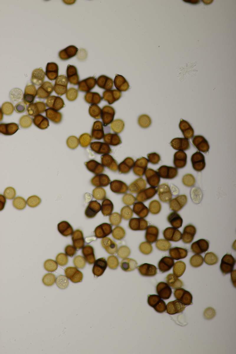 In KOH mikroskopiert, weil sonst einfach nur alles zusammenklebte. Sporen waren leider weit und breit keine zu sehen.