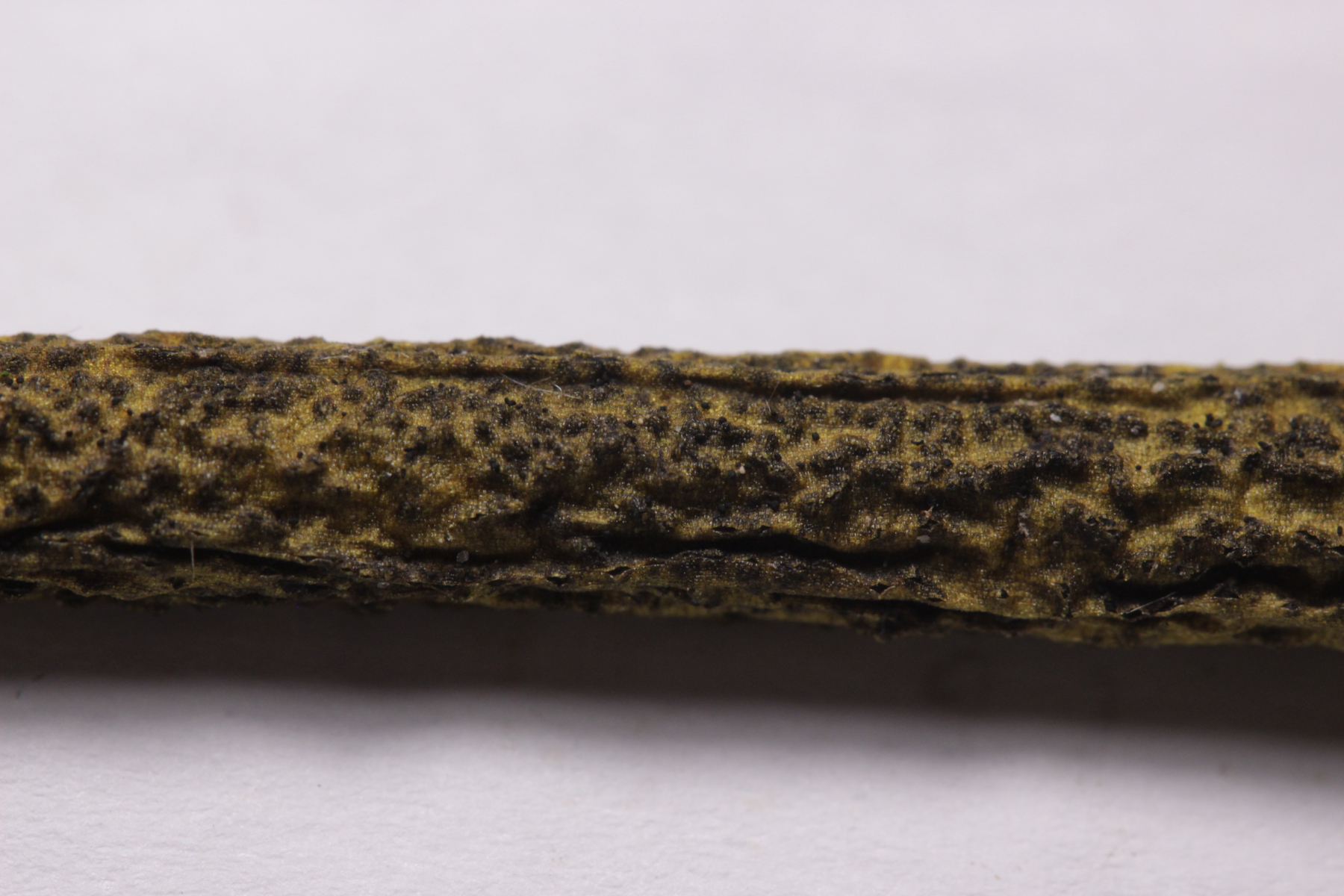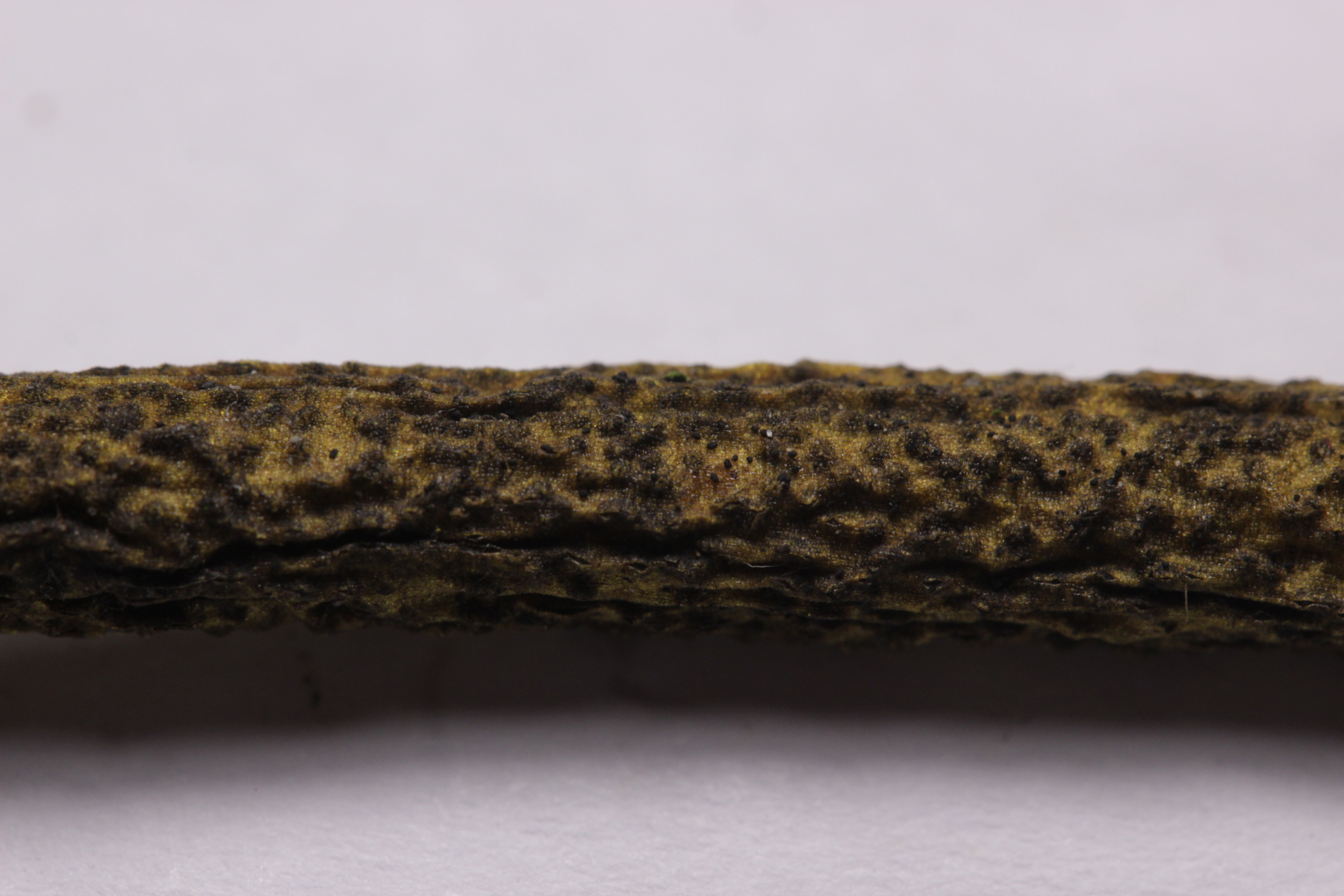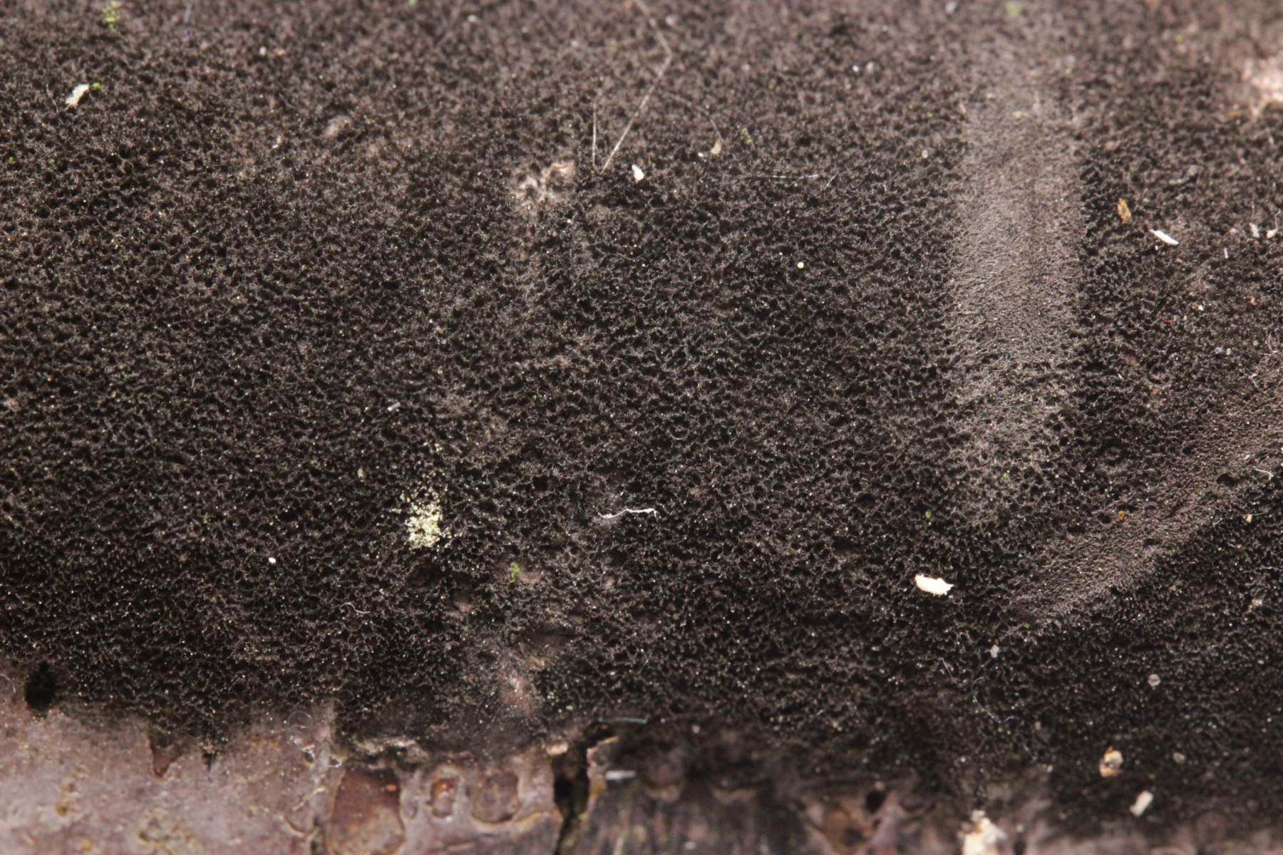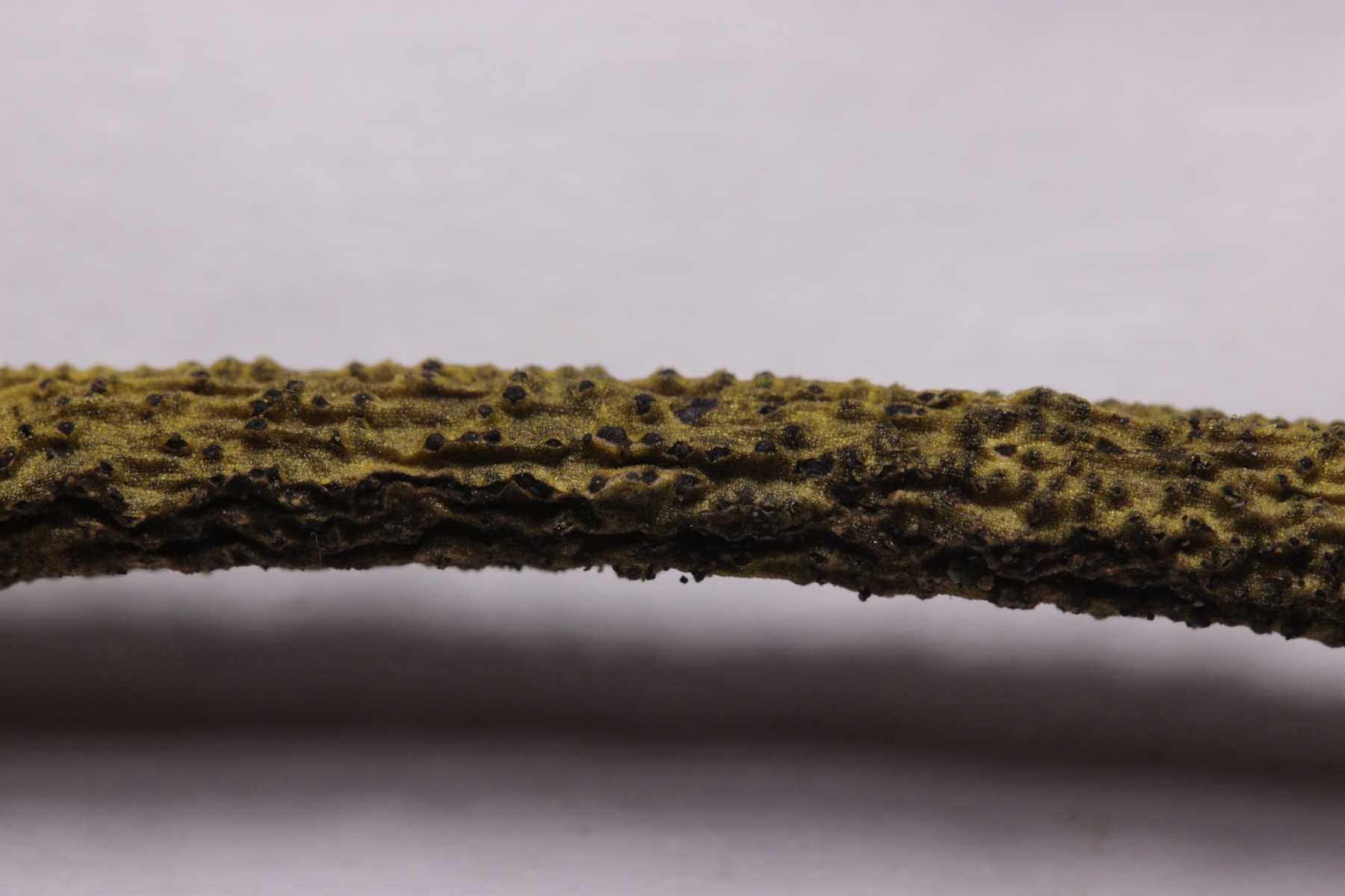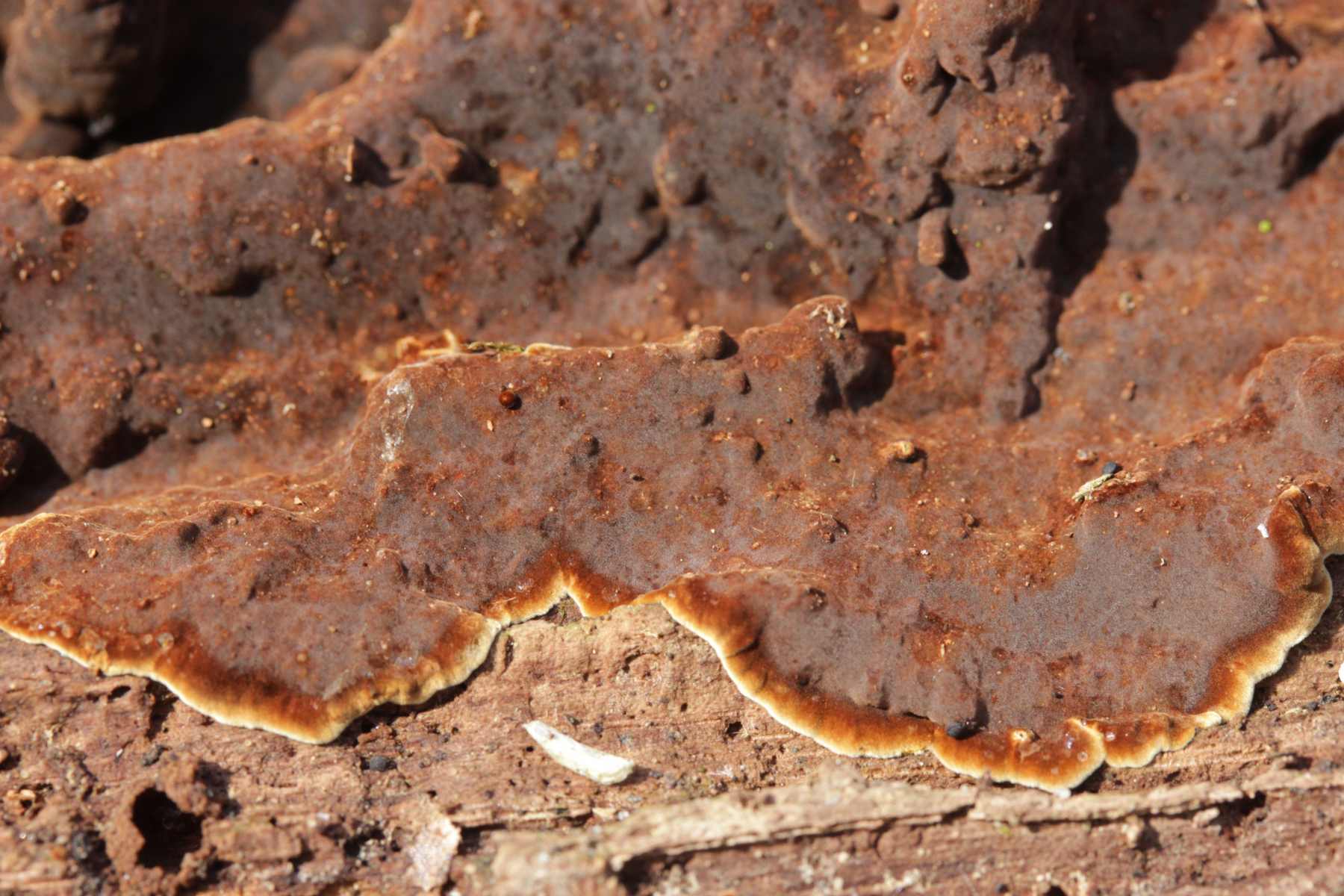 Also habe ich das Präparat noch mal rausgekramt (hat doch auch manchmal sein Gutes, wenn man nicht immer alles sofort aufräumt und sauber macht) und genauer nachgeschaut. Und in der Tat fand sich dieser Pilz, der offenbar auf Granulobasidium vellereum parasitiert und sich sonst an keinem anderen Pilz vergreift. Makroskopisch tritt der Pilz nicht wirklich in Erscheinung und verursacht allenfalls eine leichte Verfärbung seines Wirtes.