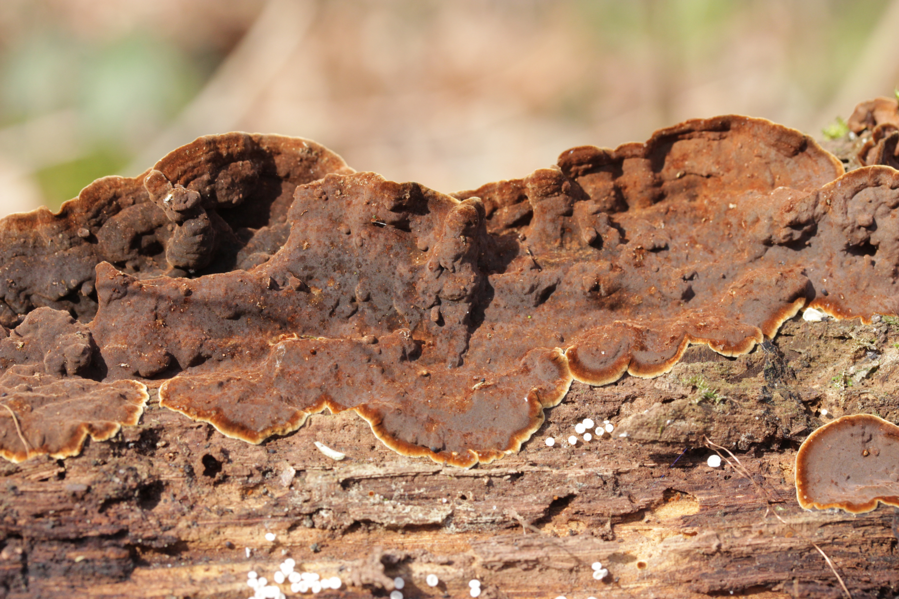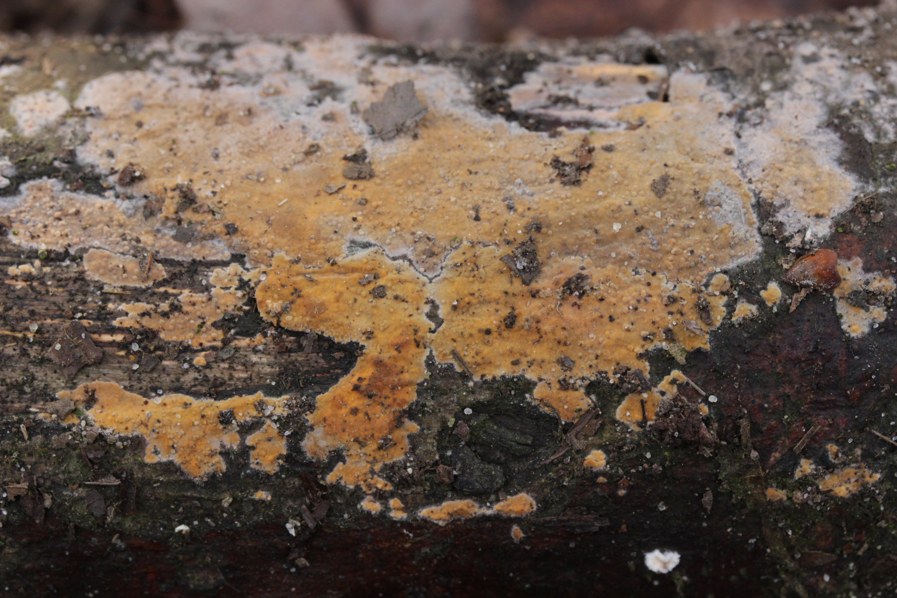 ich hatte ja hier schon meine Funde von der Exkursion in den Köllnischen Wald in Bottrop vorgestellt. Als ich gestern die Bilder von Granulobasidium vellereum auf einer Krustenpilz-Gruppe auf Facebook vorgestellt habe, machte mich H. Wassink darauf aufmerksam, daß auf einem Bild noch ein weiterer Pilz zu sehen sei: Filobasidiella lutea. Bei pilze-deutschland.de gibt es dazu noch keine Fundmeldungen, es könnte sich hier also um einen Erstfund für Deutschland handeln. Eine Beschreibung des Pilzes findet sich hier.