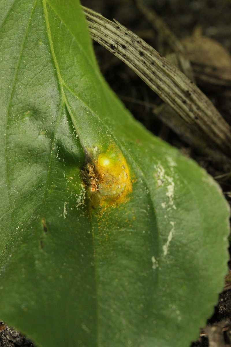 19. Uromyces sp. auf Ficaria verna. Was das seltsame Gebilde auf dem zweiten Bild ist und wo die Öltröpfchen auf dem dritten Bild herkommen, weiß ich leider nicht.