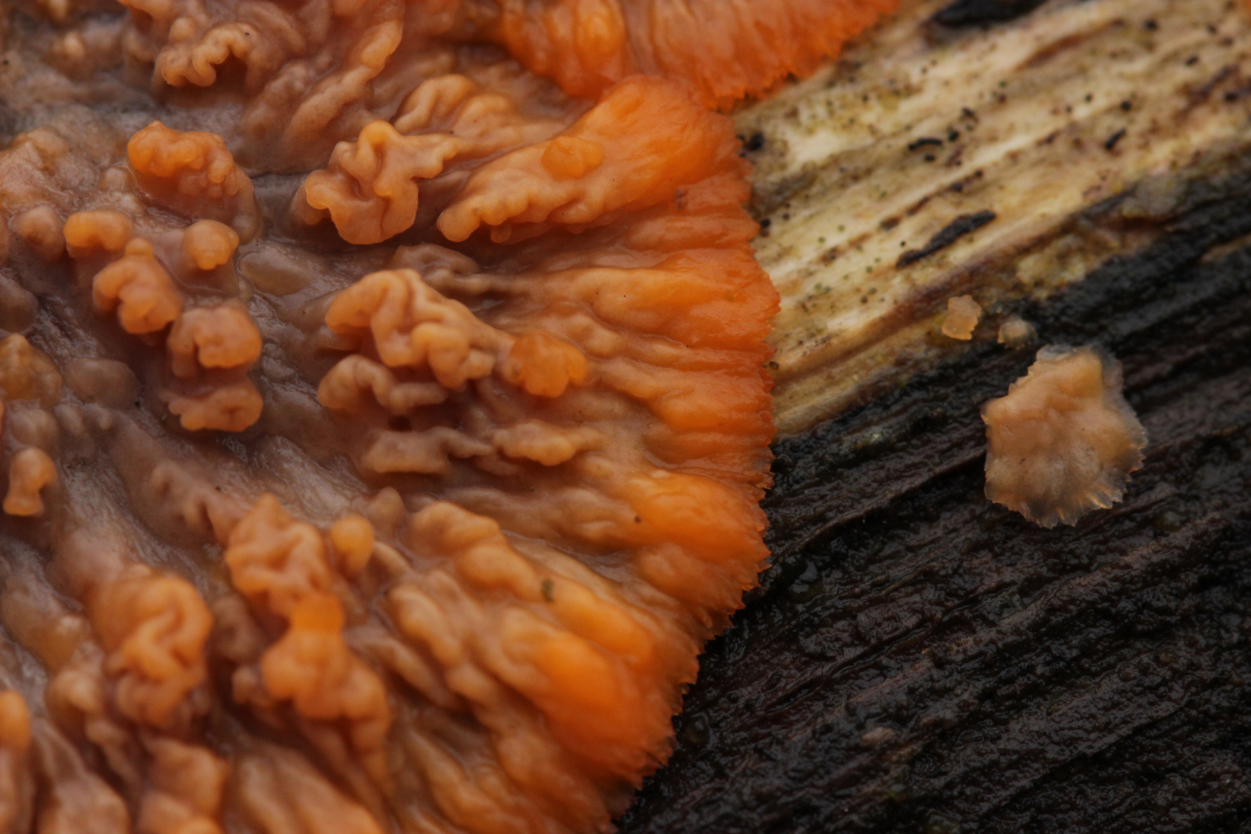 5. Von Mario als Mucronella calva bestimmt worden. Auf Facebook gab es da aber Zweifel, jetzt schaut Mario sich das noch mal an. EDIT: Im zweiten Anlauf ist Mario bei Phlebia aurea gelandet.