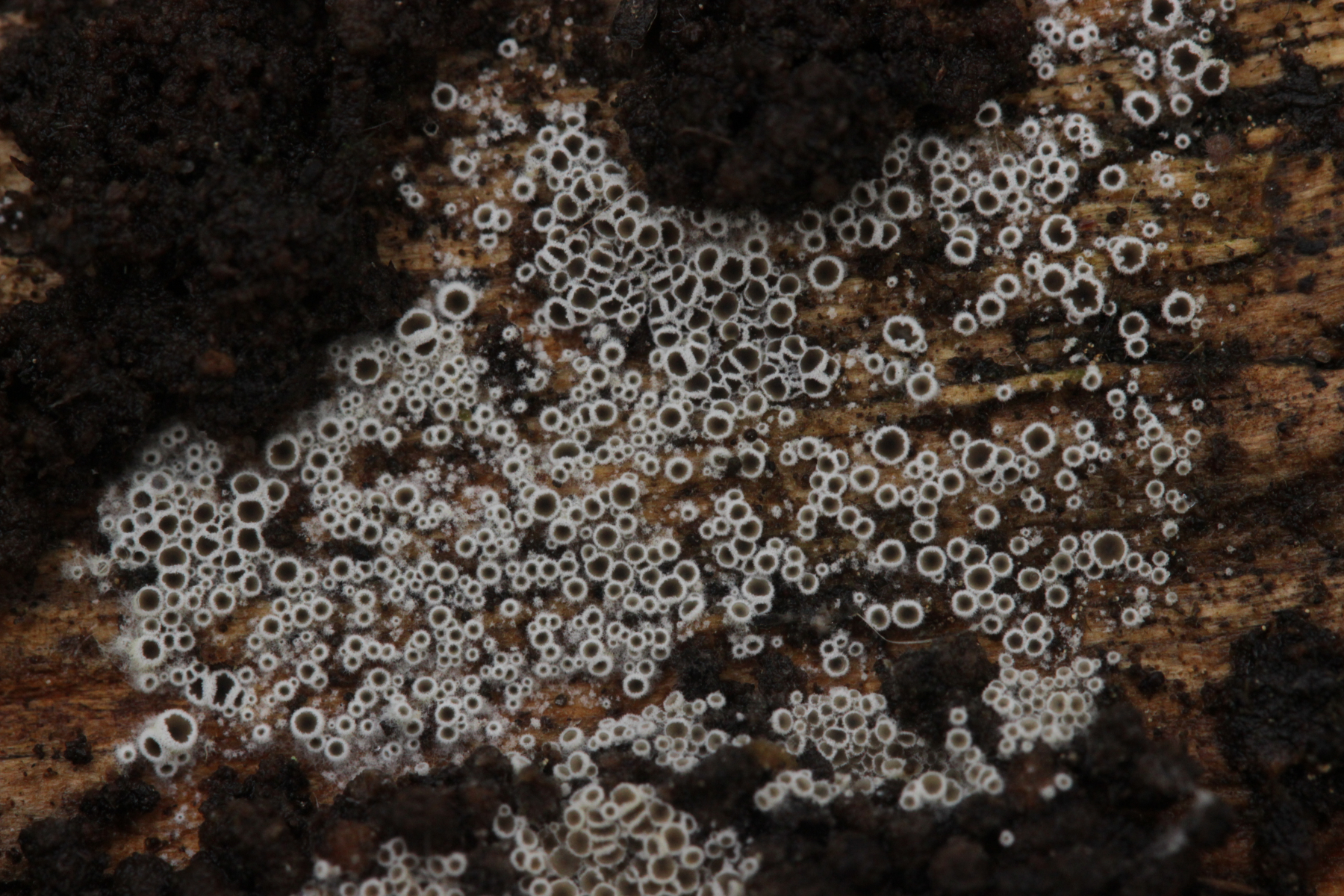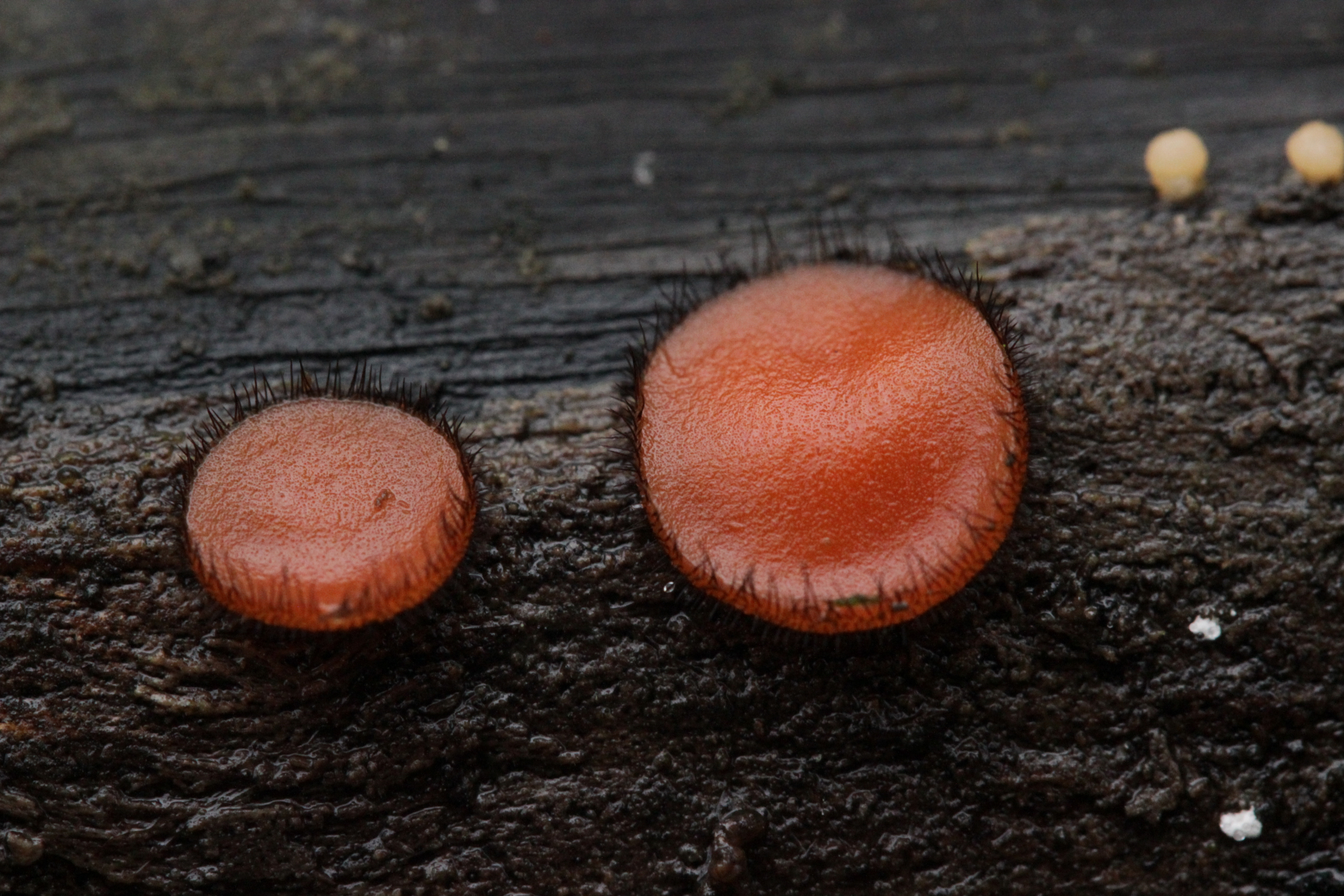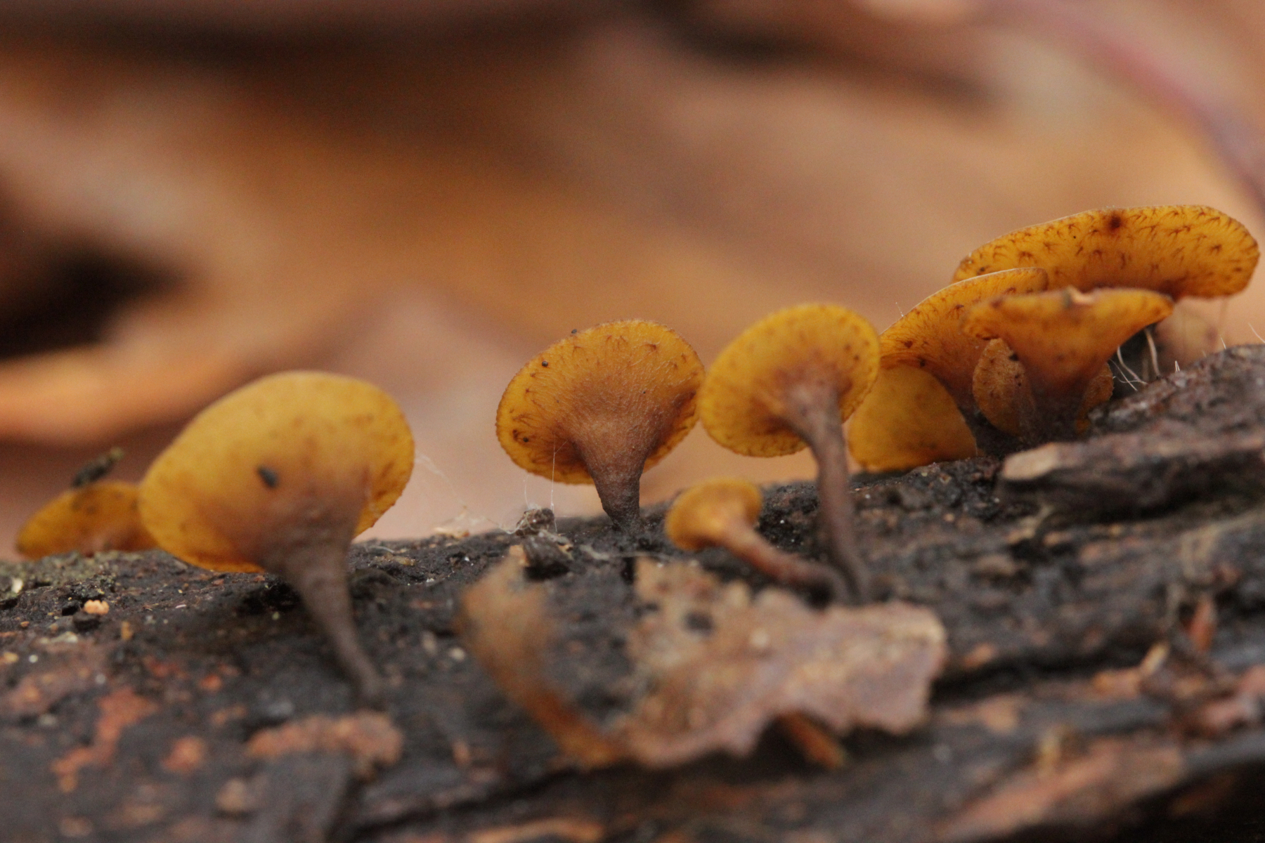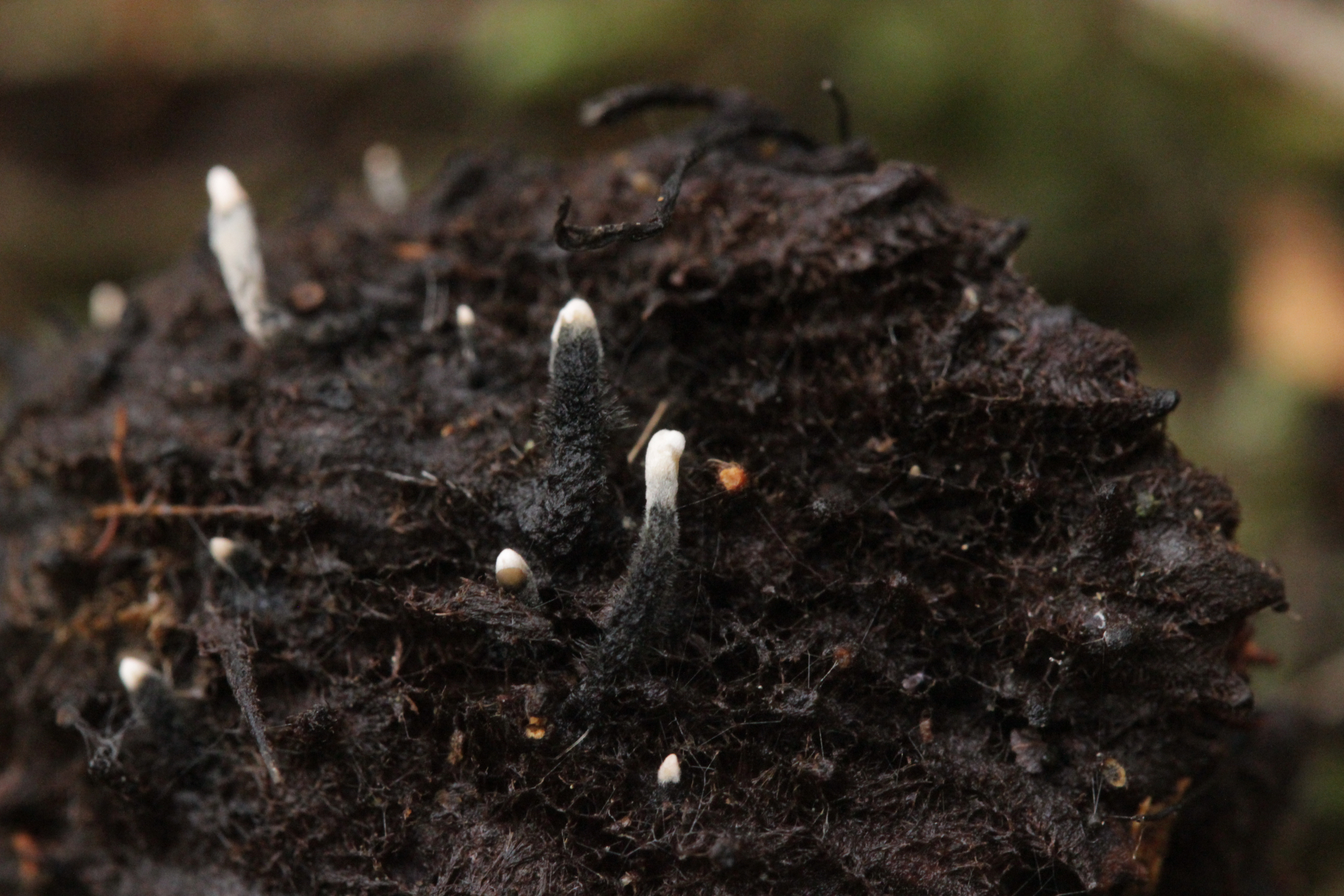 16. Kleiner schwarzer Pilz mit Härchen auf einem schilfartigem Gras