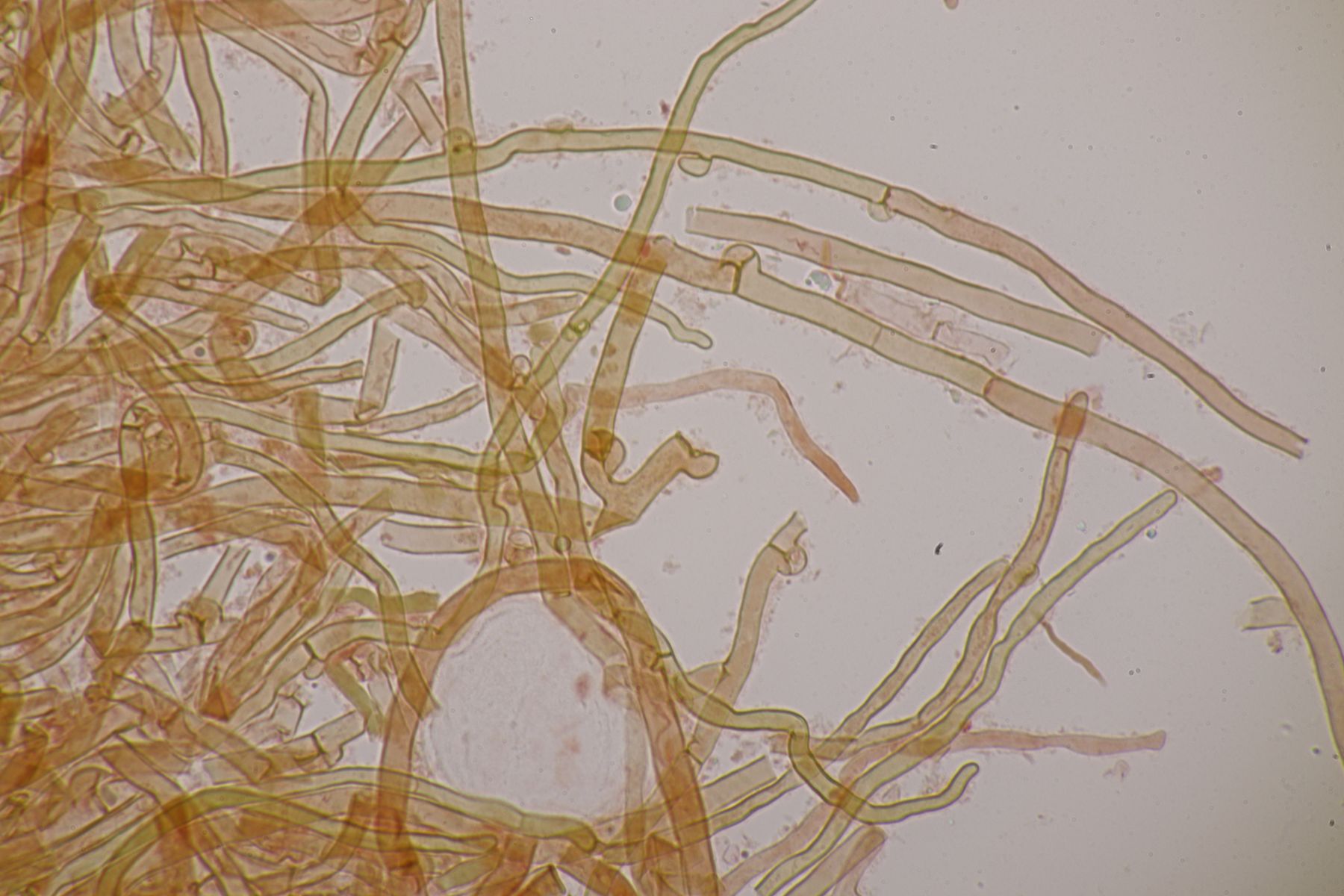 1. Den Anfang macht ein Rindenpilz auf Kiefer: Mit Schnallen und Pleurobasidien komme ich hier zu Aphanobasidium pseudotsugae
