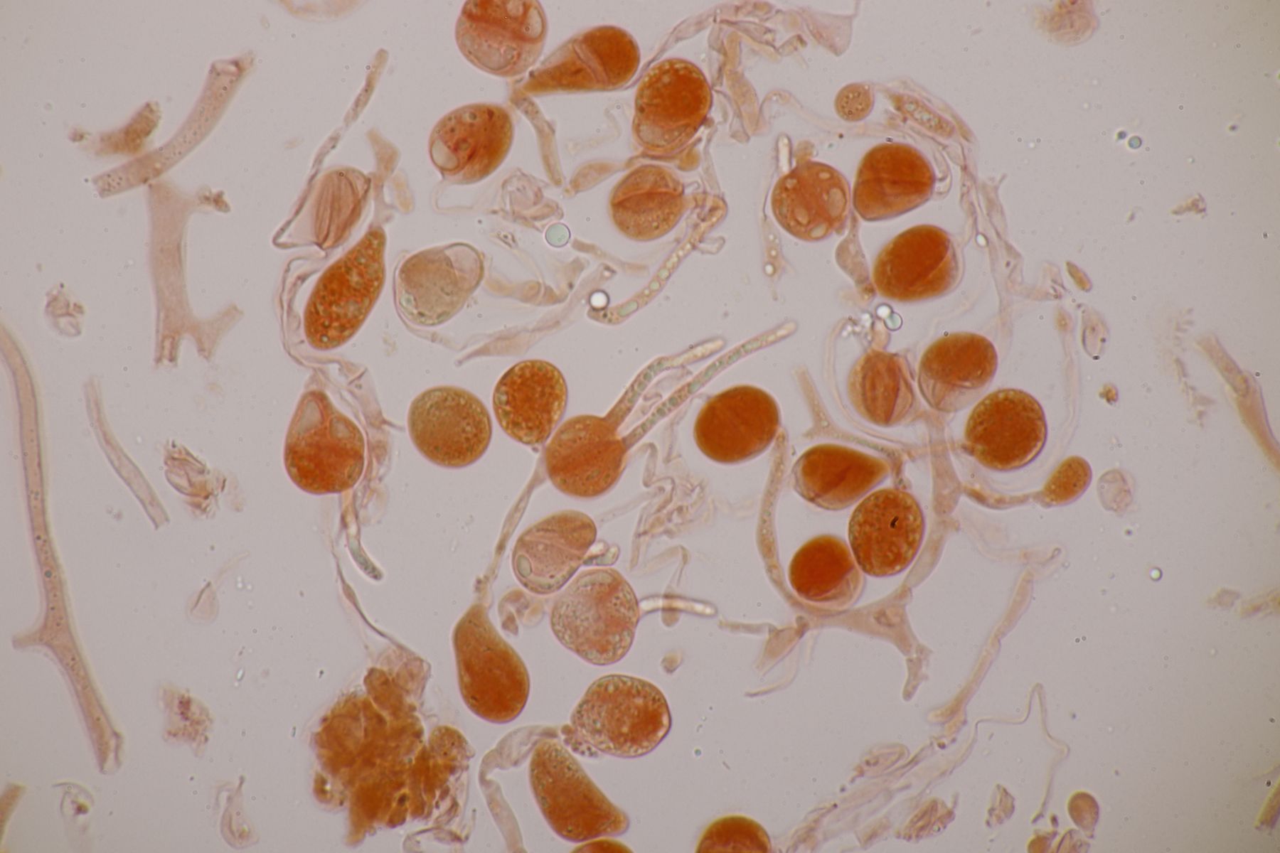 7. Ohne Makrofoto: Dacrybolus karstenii. Leider lösen sich die tollen Zystiden in KOH auf, so daß man sie nur schwerlich gut auf Foto bannen kann.