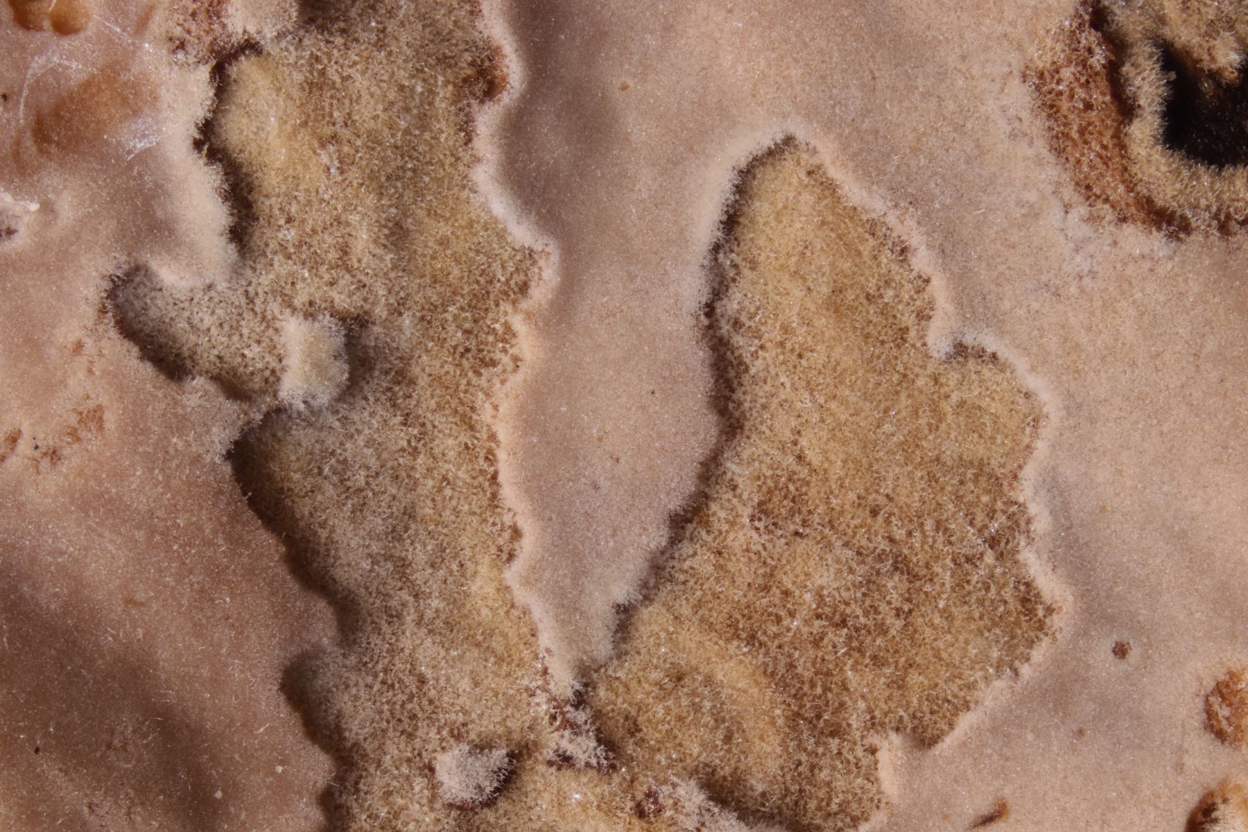 2. Ein Rindenpilz, der auch schon makroskopisch gut ansprechbar ist: Corticium roseum auf Salix sp.