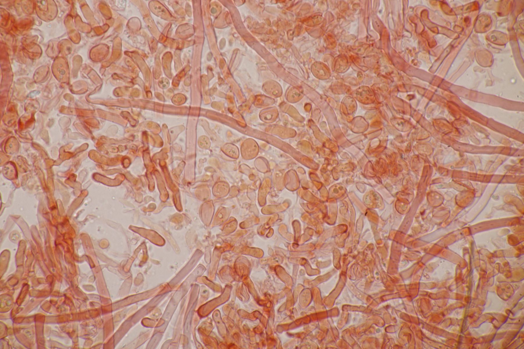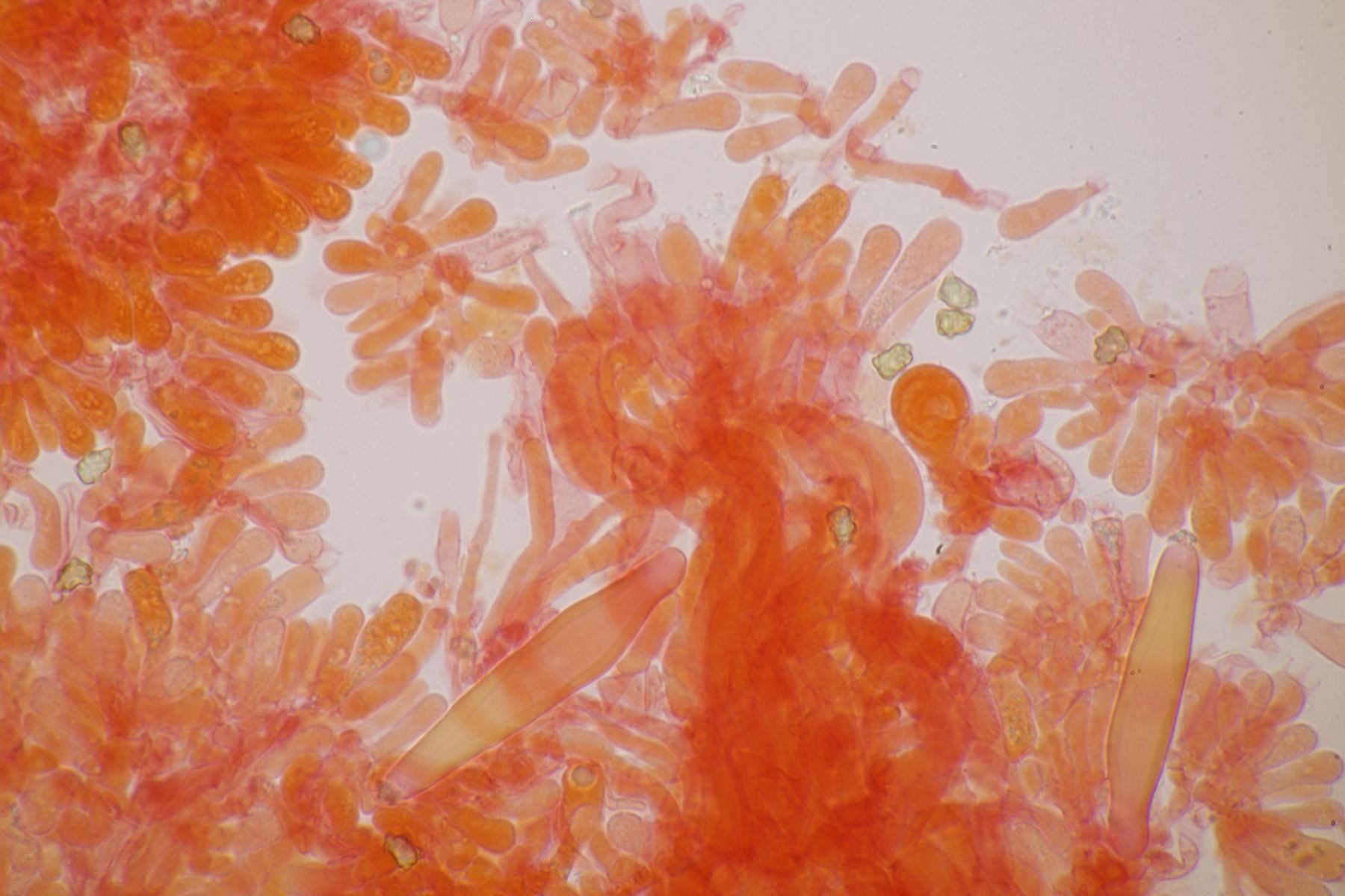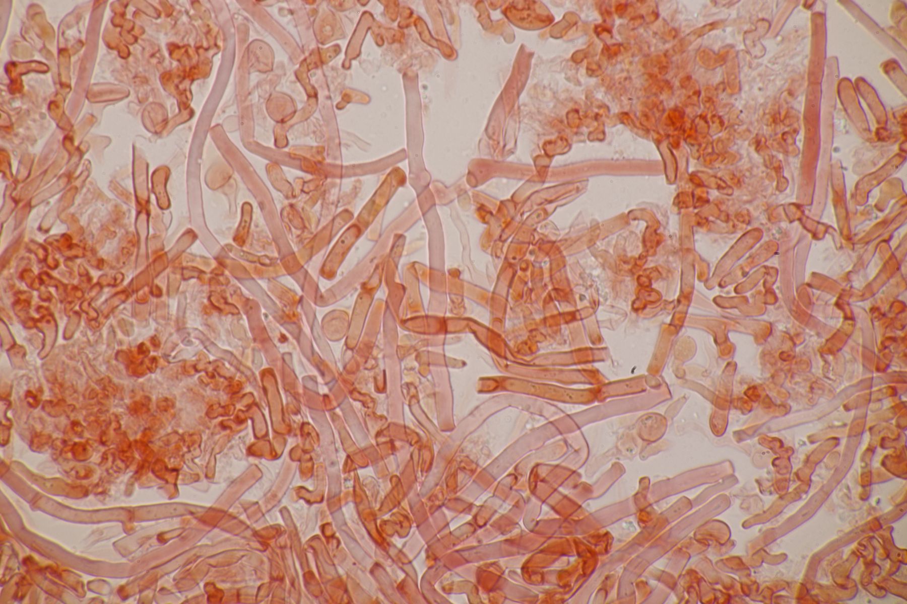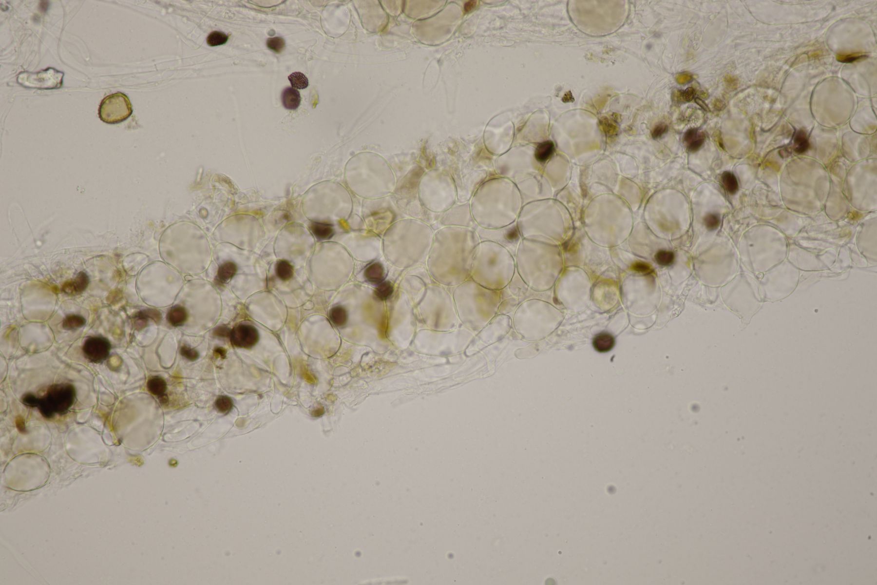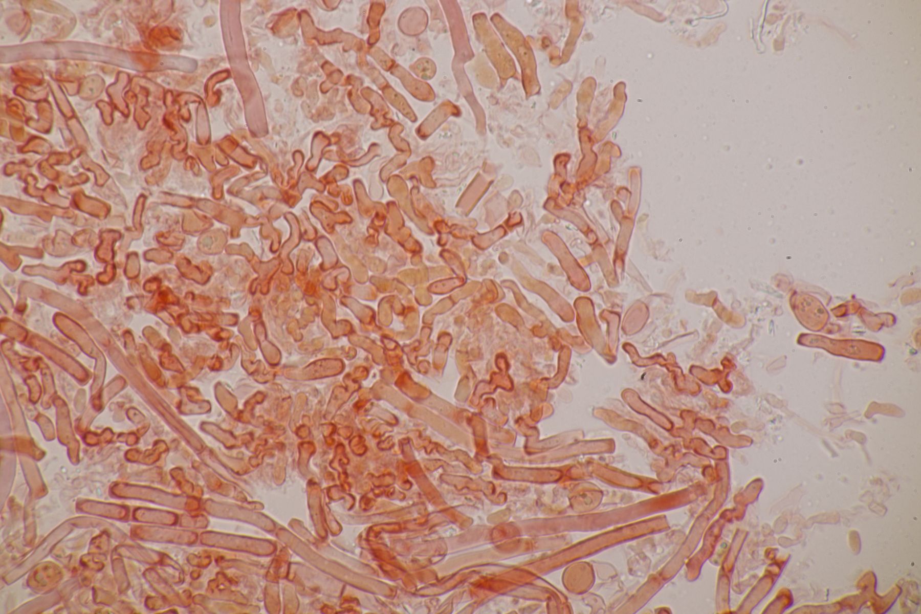 4. Botryobasidium aureum. Im Feld hatte ich wegen des üppigen Wachstums auf etwas anderes gehofft, aber das Mikro war dann eindeutig.