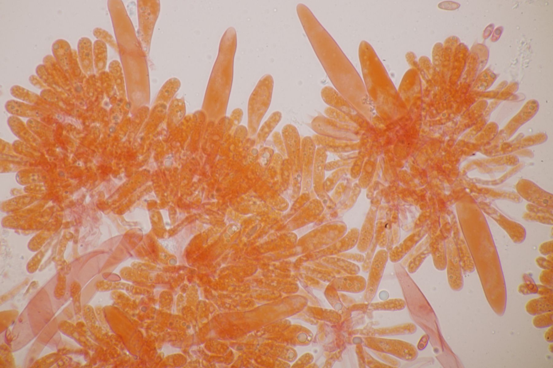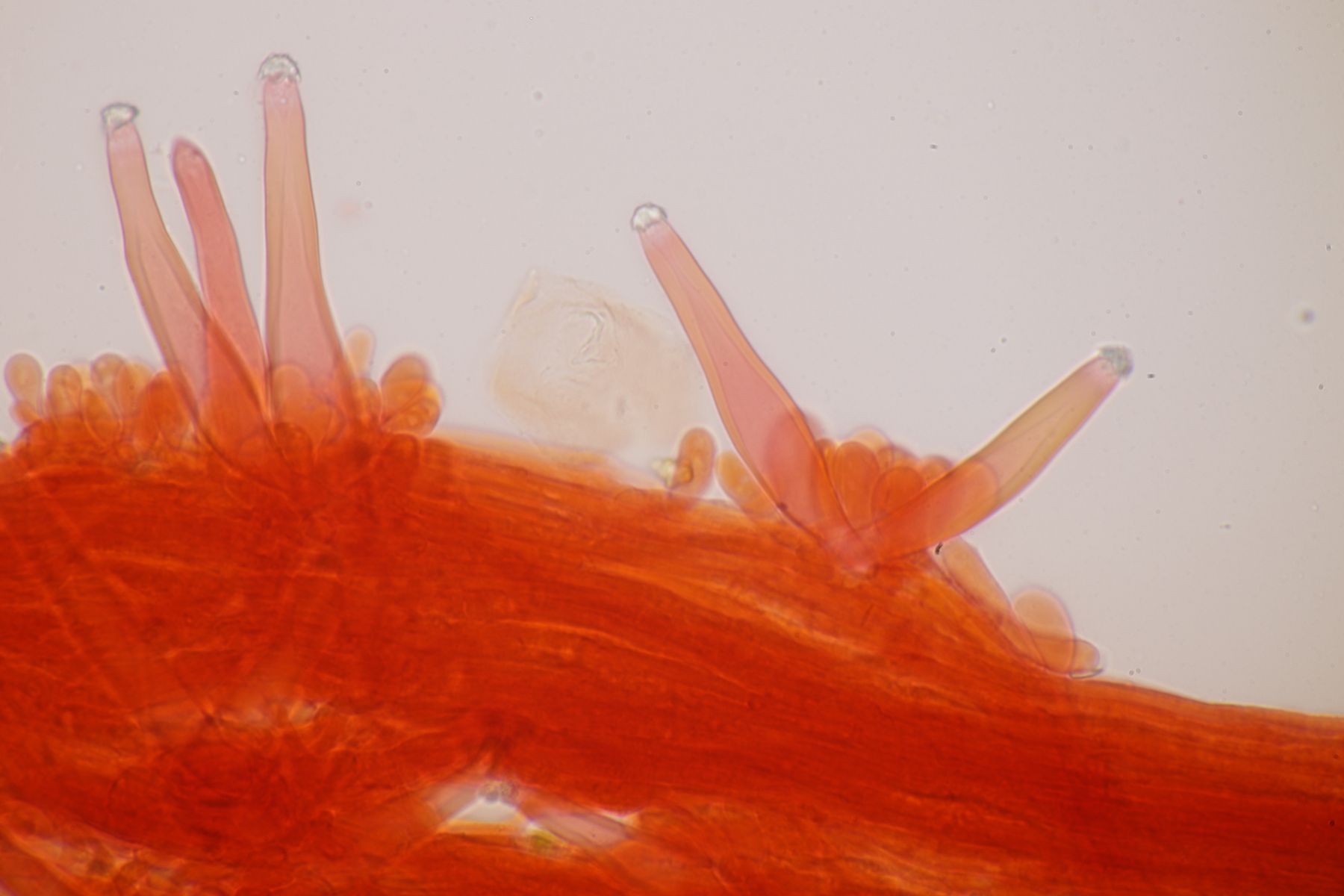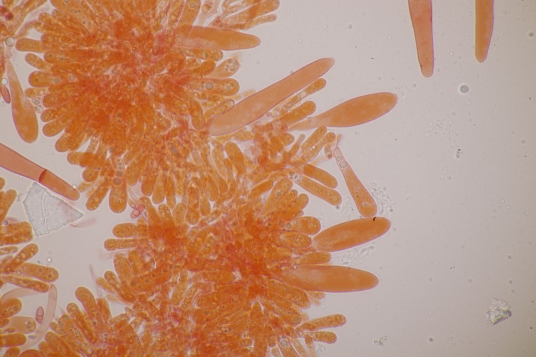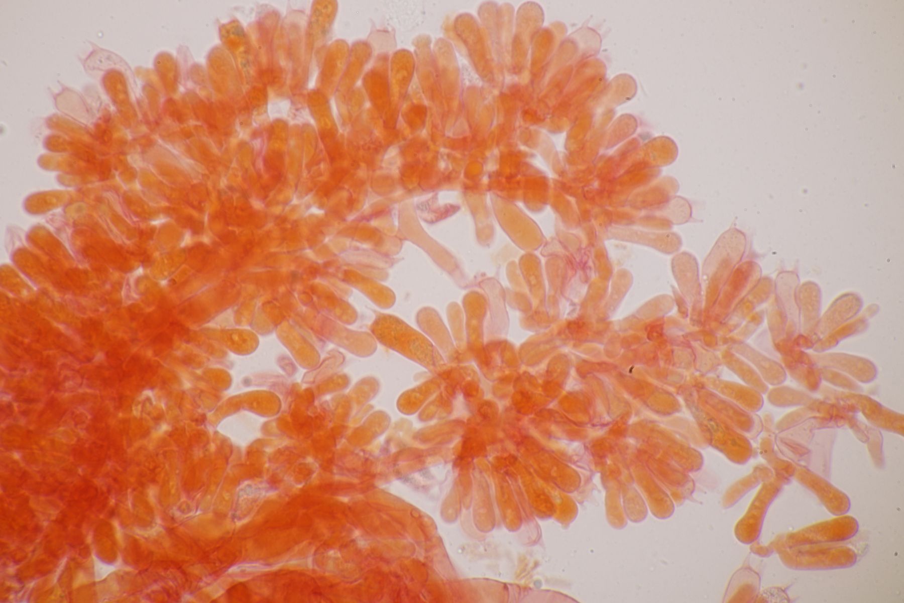 4. Botryobasidium aureum. Im Feld hatte ich wegen des üppigen Wachstums auf etwas anderes gehofft, aber das Mikro war dann eindeutig.
