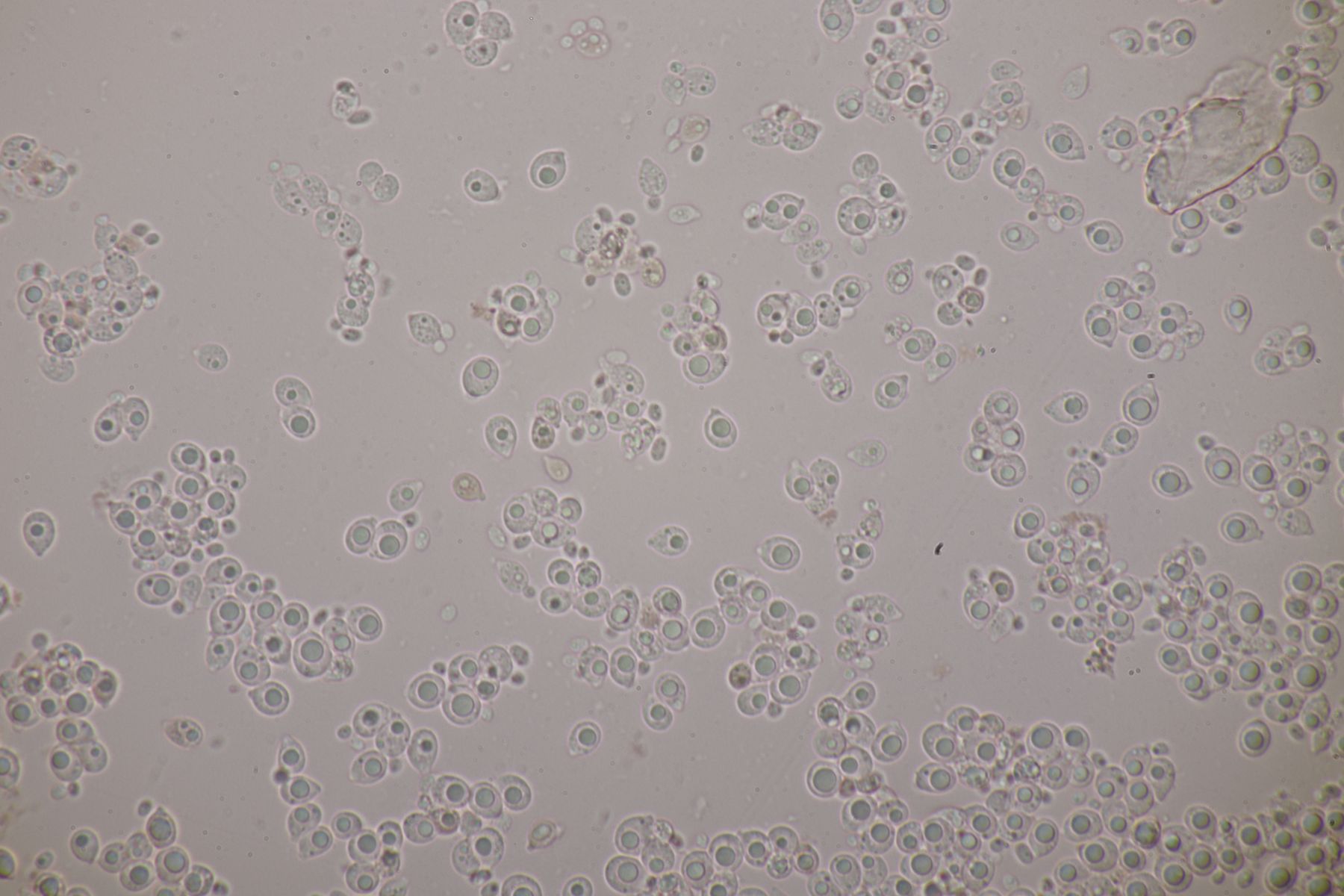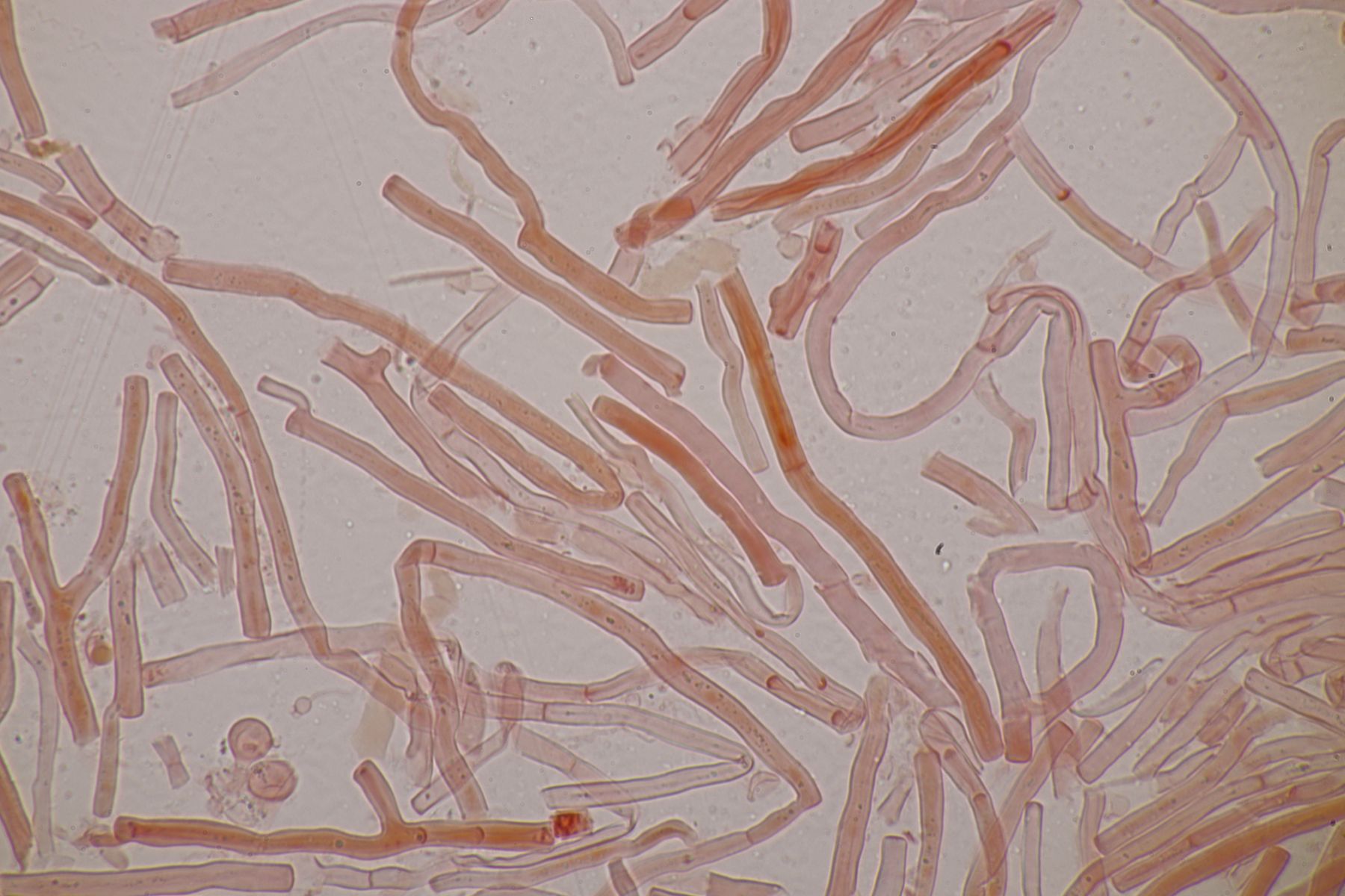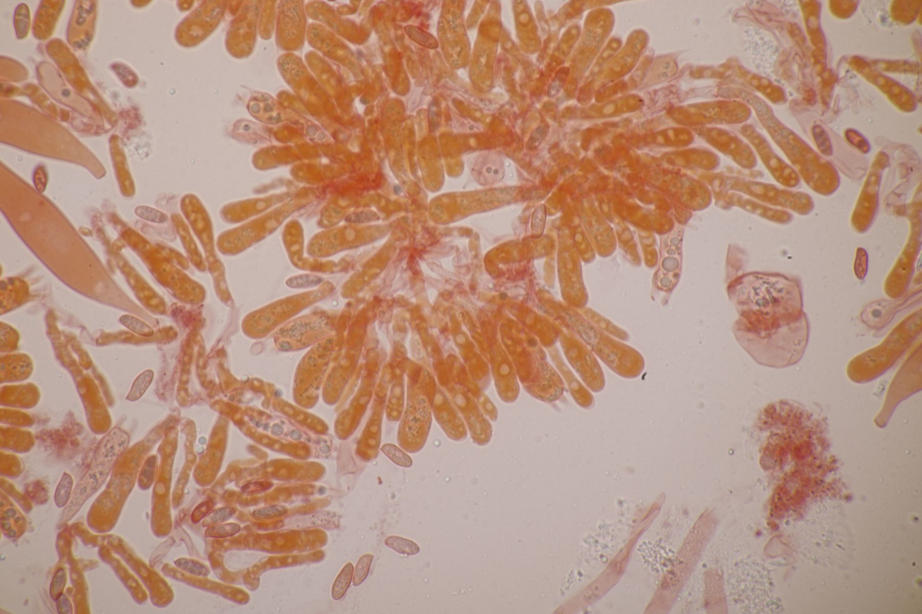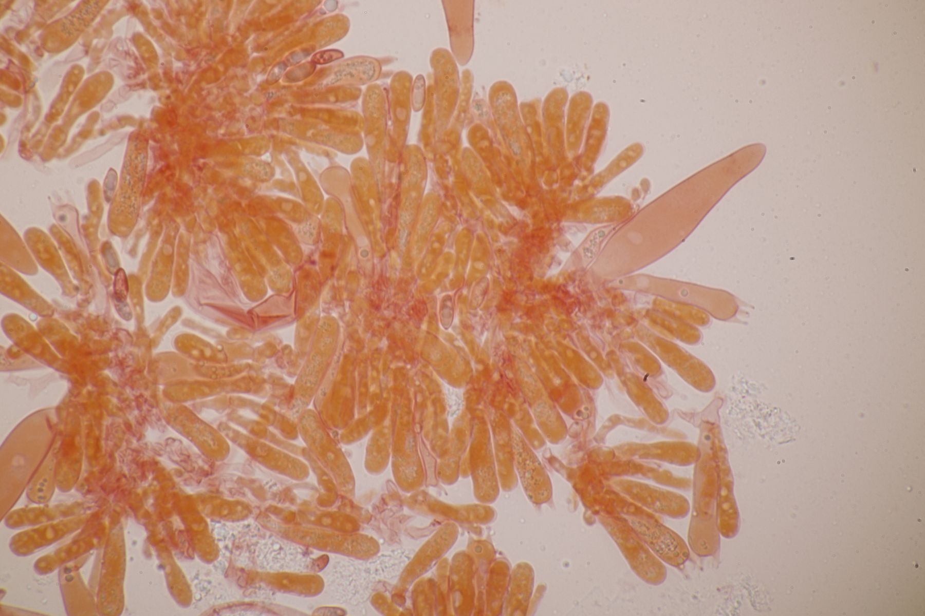 4. Botryobasidium aureum. Im Feld hatte ich wegen des üppigen Wachstums auf etwas anderes gehofft, aber das Mikro war dann eindeutig.