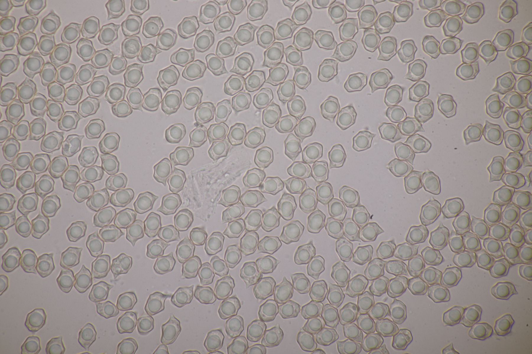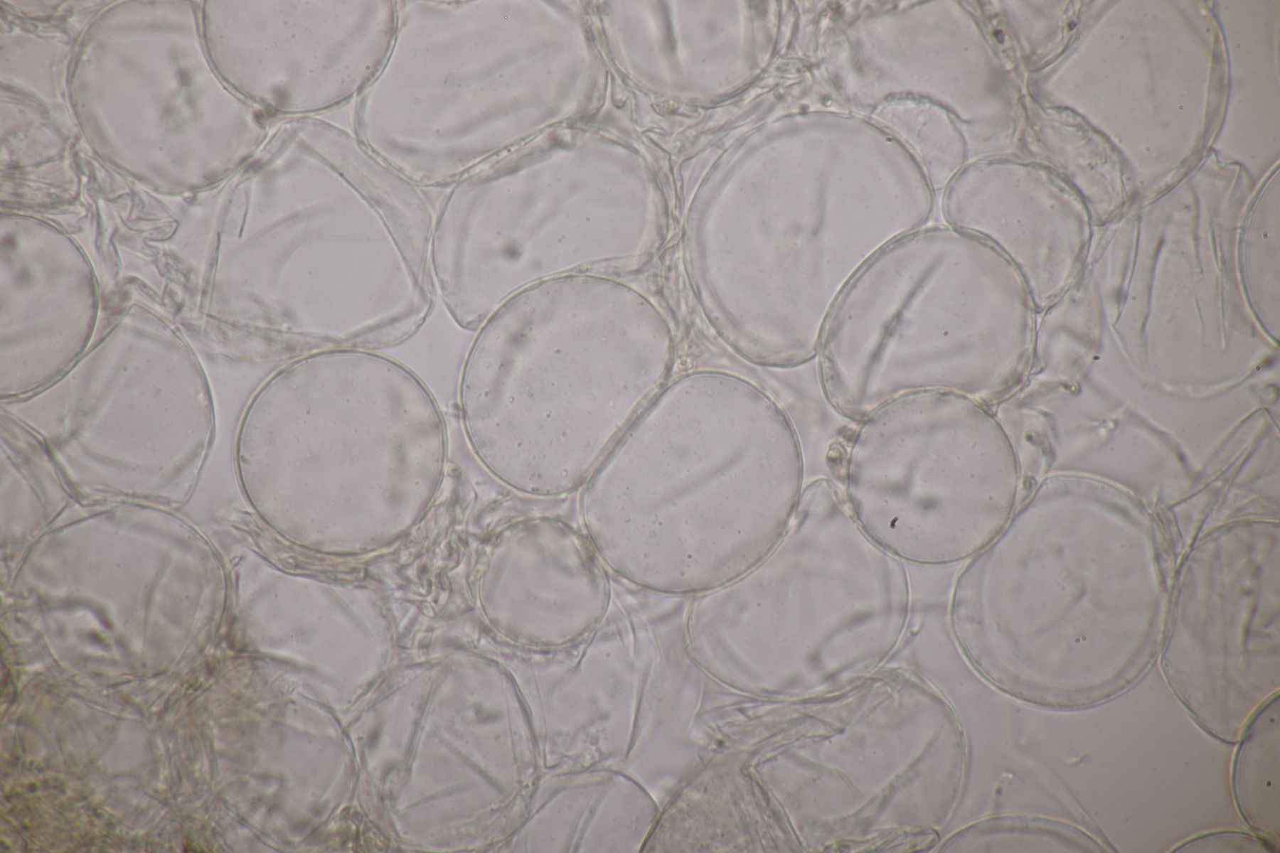 9. Hier stehe ich auf dem Schlauch: Eigentlich sieht das ja schon nach einer Lepista aus, aber die Sporen sind im Abwurf rein weiß, weder amyloid noch dextrinoid und mikroskopisch auch in BWB glatt.