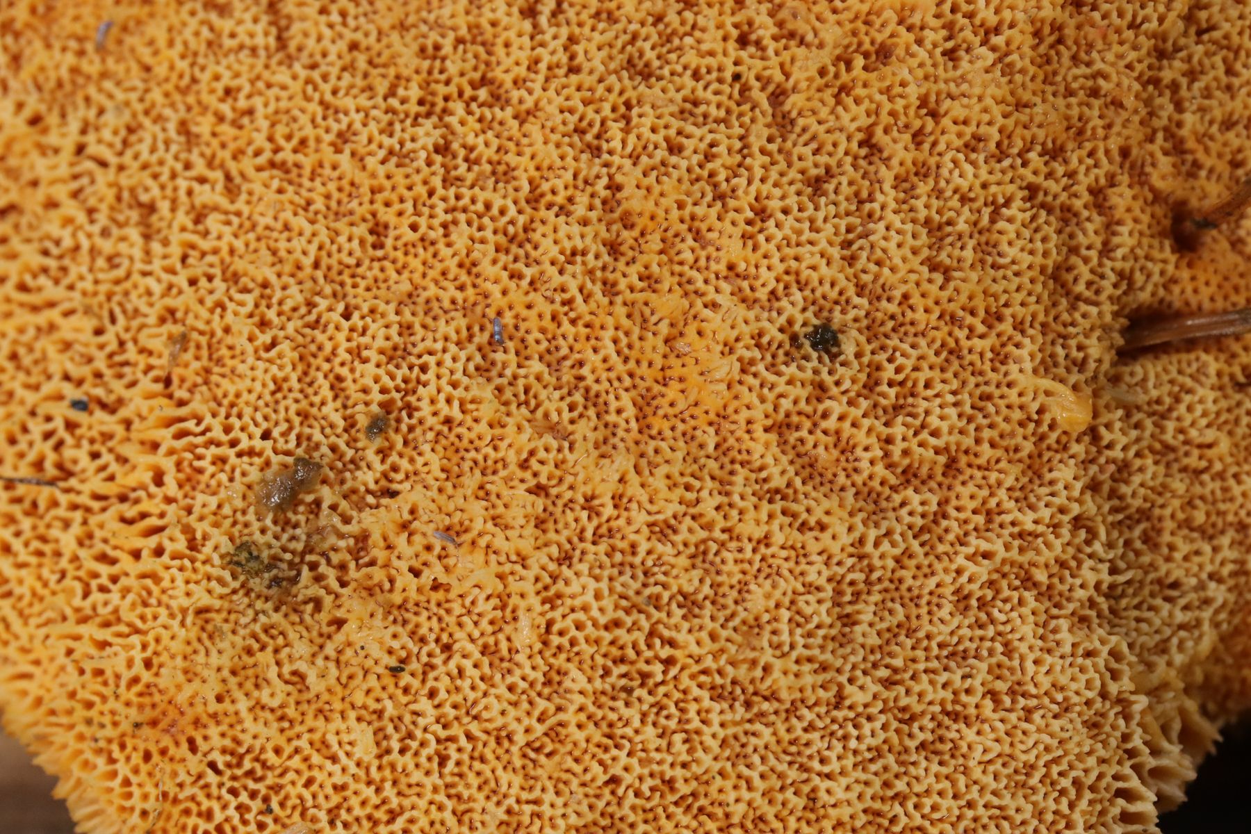 auf einem Taschentuch hat die Milch nur ein wenig gegilbt. L. aurantiacus kenne ich nicht aus eigener Anschauung, den würde nach Literaturdarstellung aber für orangener gefärbt halten, außerdem ist die Huthaut dort ein Trichoderm, das paßt also nicht. Was die Huthäute von L. lacunarum und L. tabidus angeht, tue ich mich schwer, die zu unterscheiden Oedotrichoderm vs. Hyphoepithelium, von den Zeichnungen in den FoNE sieht das für mich beides recht ähnlich aus.