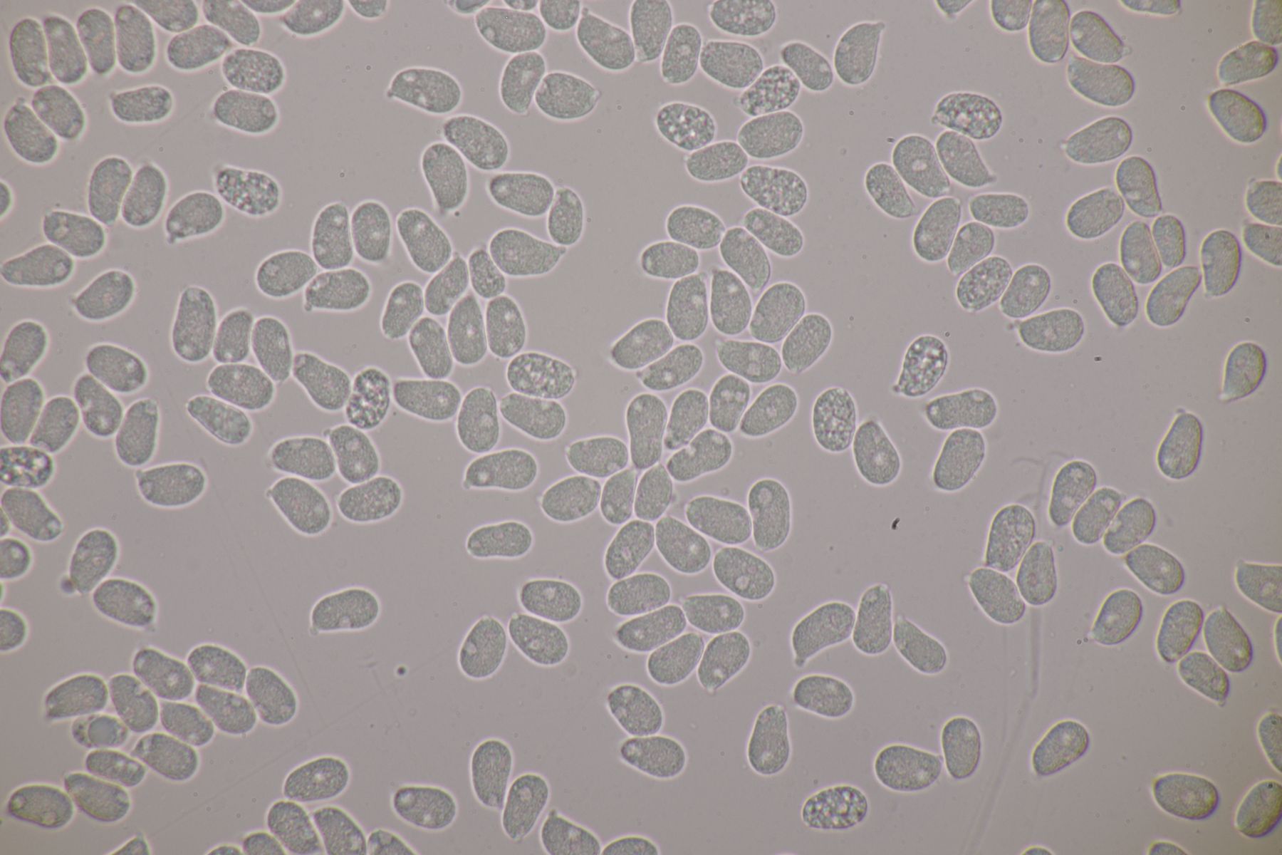 die Sporen messen 7.9+-0.5 µm x 4.8+-0.3 µm, Q=1.6+-0.1 bzw. 7.1-8.8 µm x 4.2-5.3 µm, Q=1.5-1.8. Einen besonderen Geruch habe ich nicht wahrgenommen.