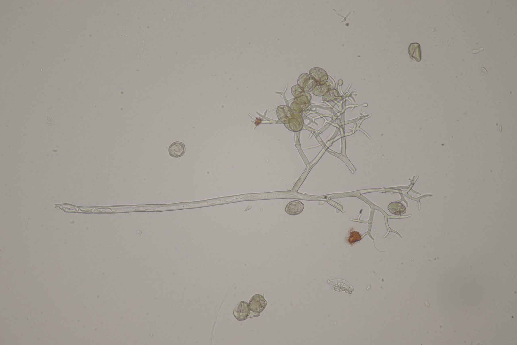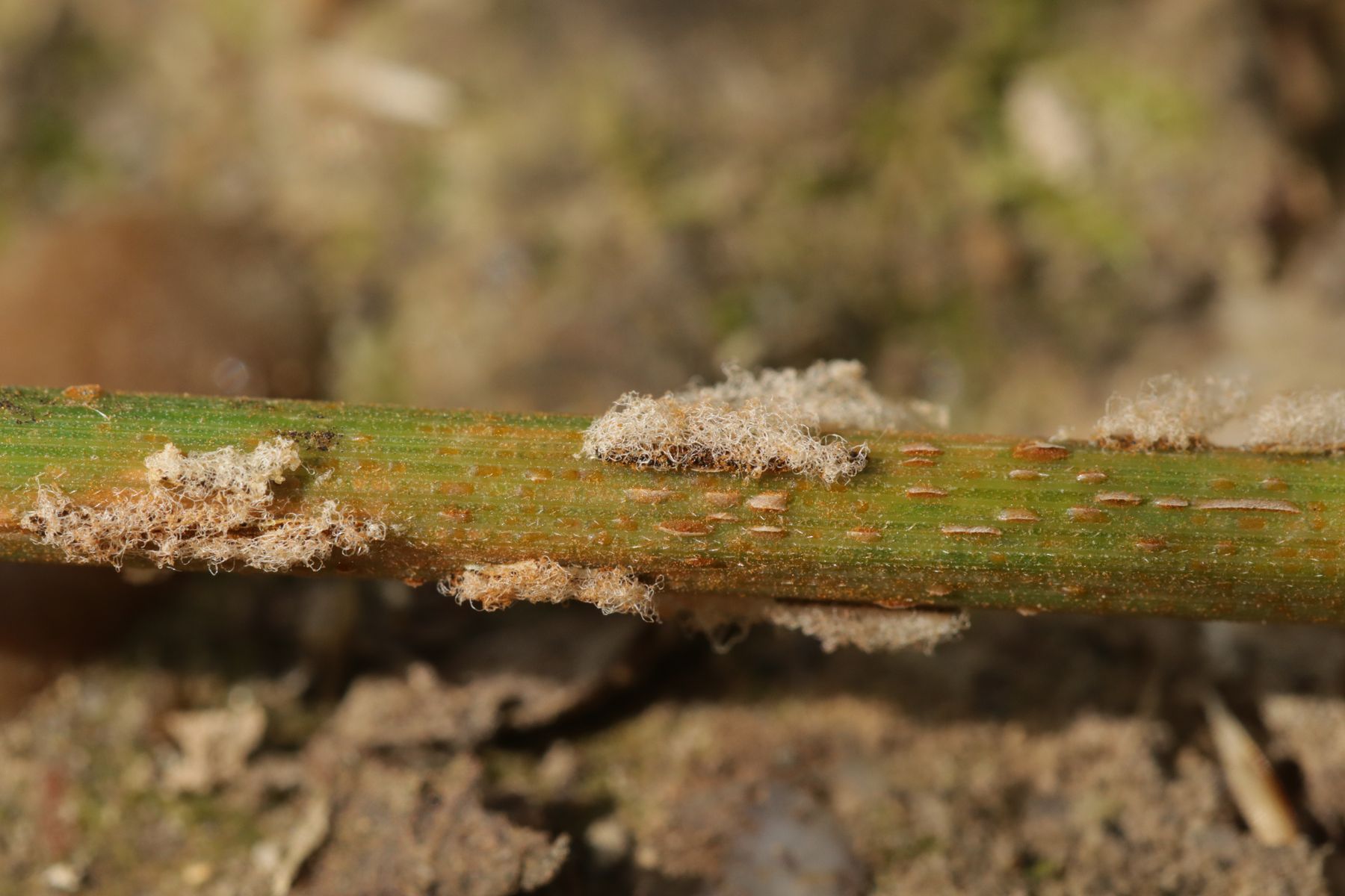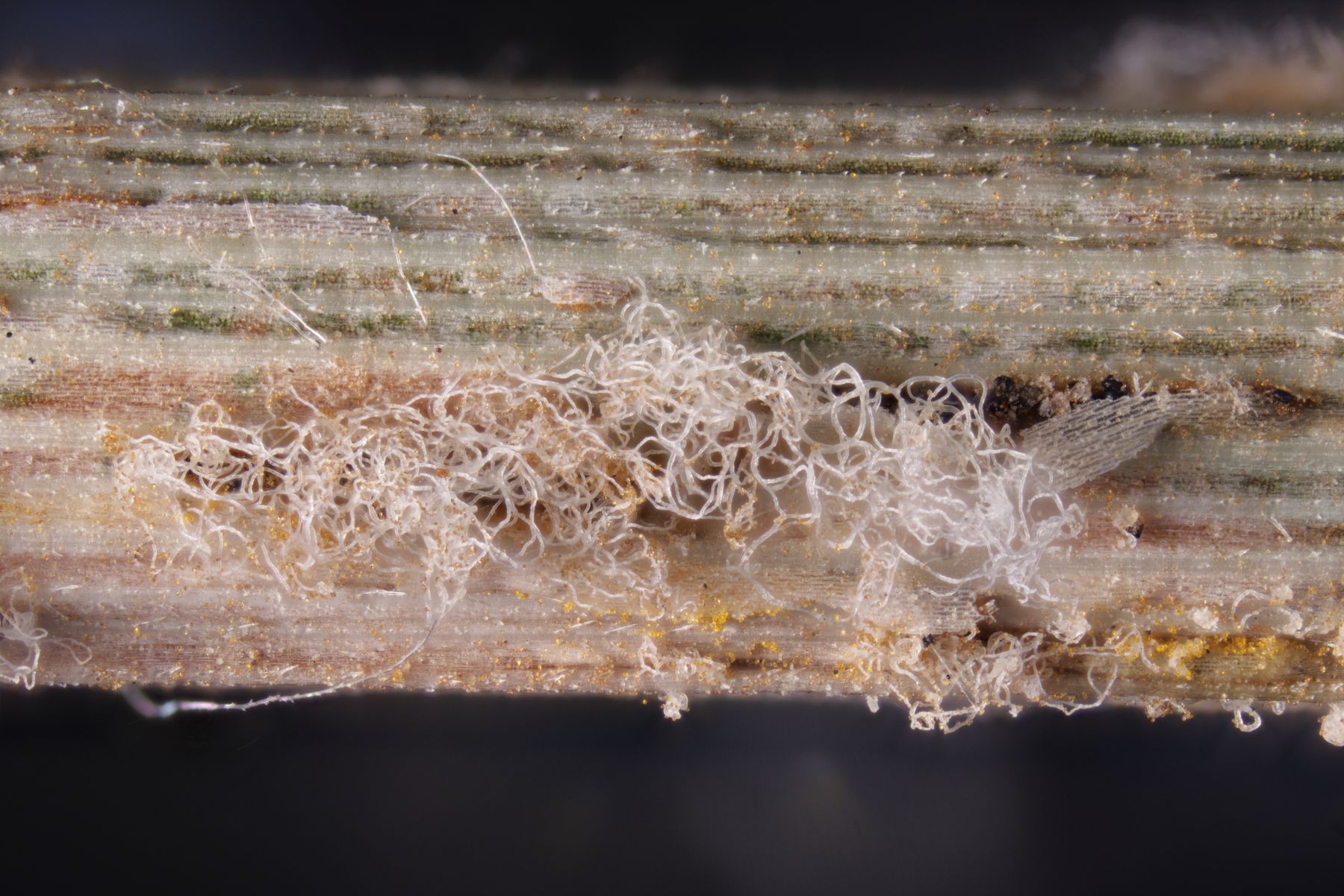 9. Peronospora ervi ex Vicia ervi. Hier gibt es keine Makrofotos, weil ich den Befall erst zu Hause am Beleg von Uromyces ervi bemerkt habe.