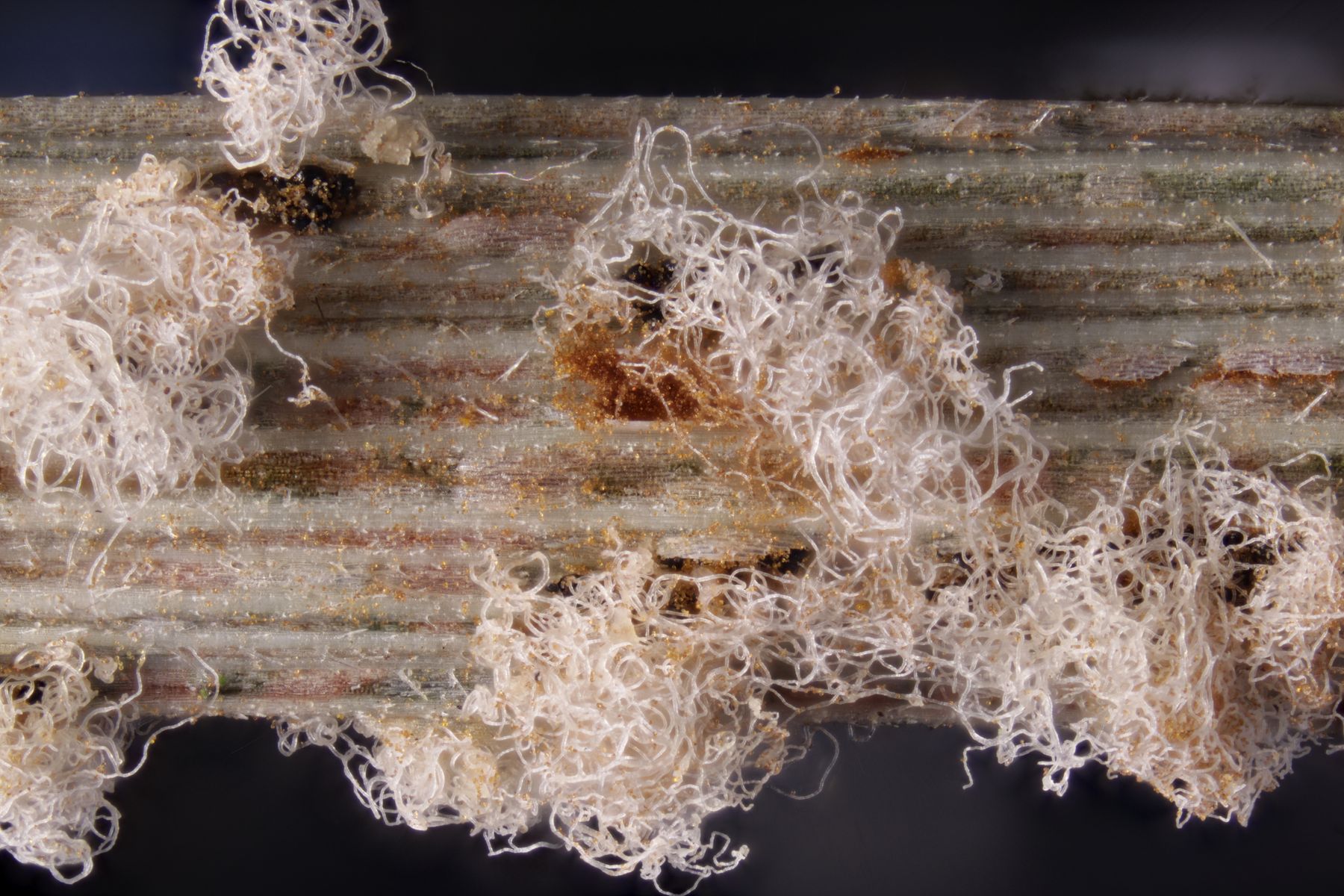 1. Vielleicht ein neuer Lieblingspilz für Wutzi? Eudarluca caricis, ein Hyperparasit auf Puccinia graminis auf Dactylis glomerata. Frei nach dem Motto: Der Feind meines Feindes ist mein Freund.