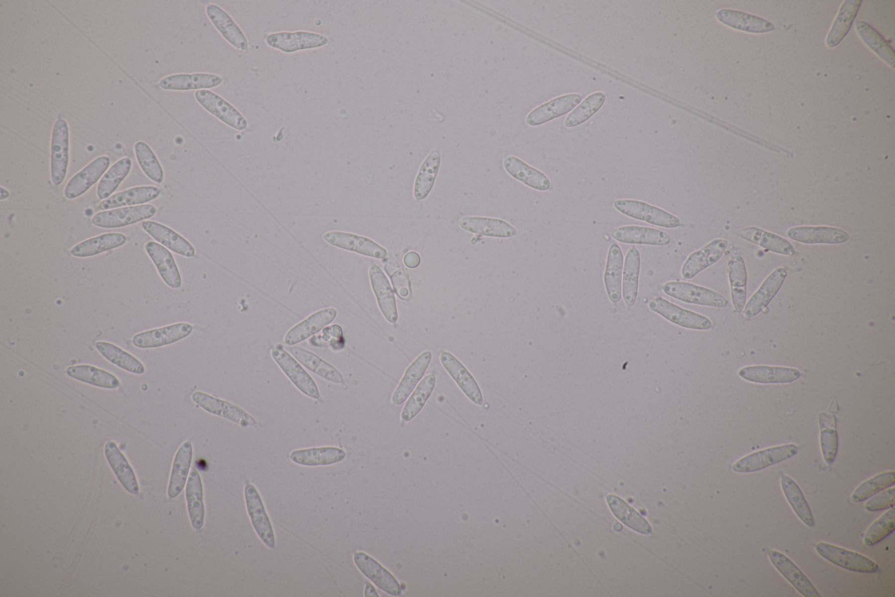 Sind Schnallen (insbesondere an der Basis junger Basidien/Basidiolen) vorhanden? Hierfür empfiehlt sich übrigens ein Präparat in Kongorot zu erstellen. Am besten etwas Lamelle in Kongorot geben, das Färbemittel komplett eintrocknen lassen und dann mit KOH ausspülen und darin mikroskopieren.