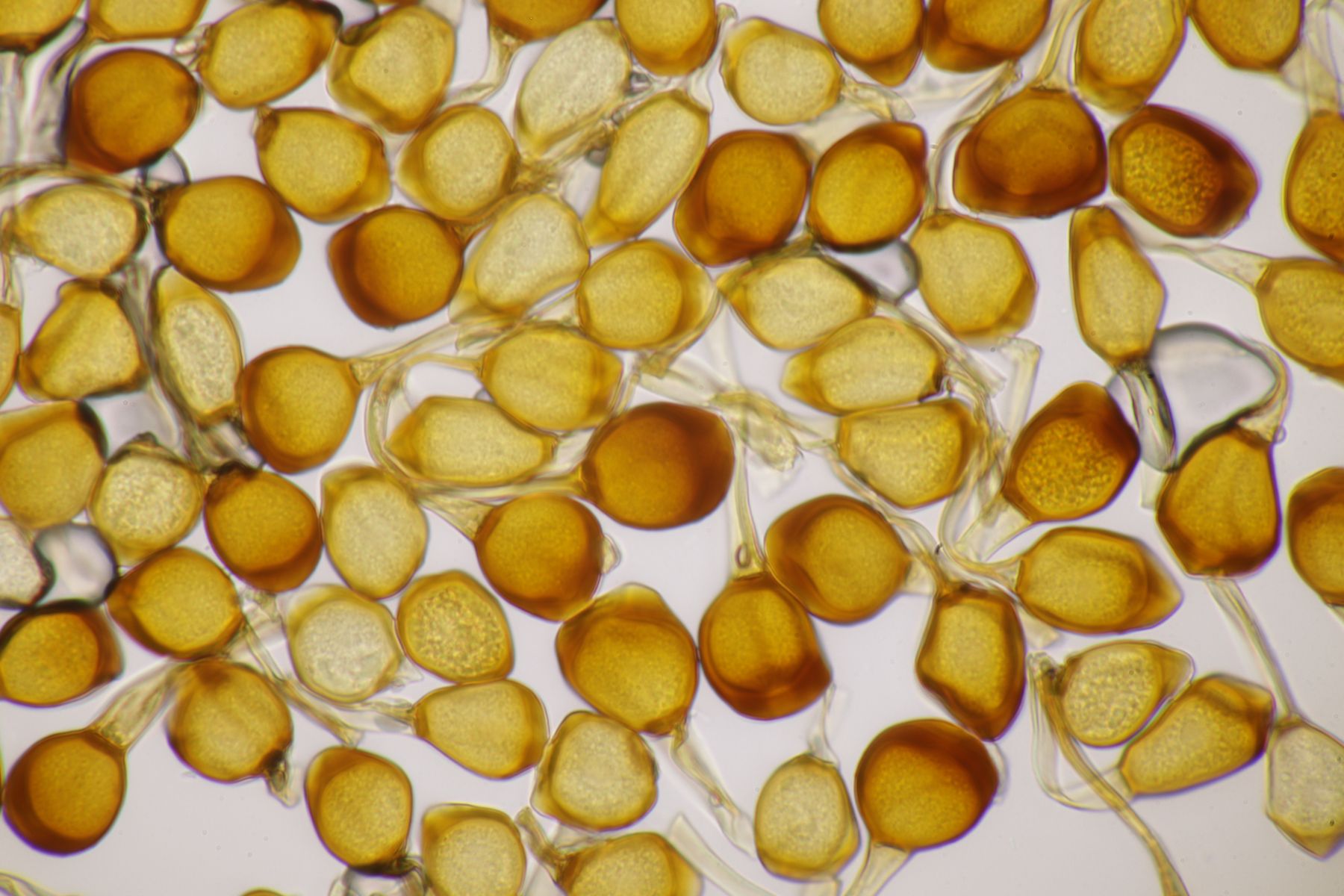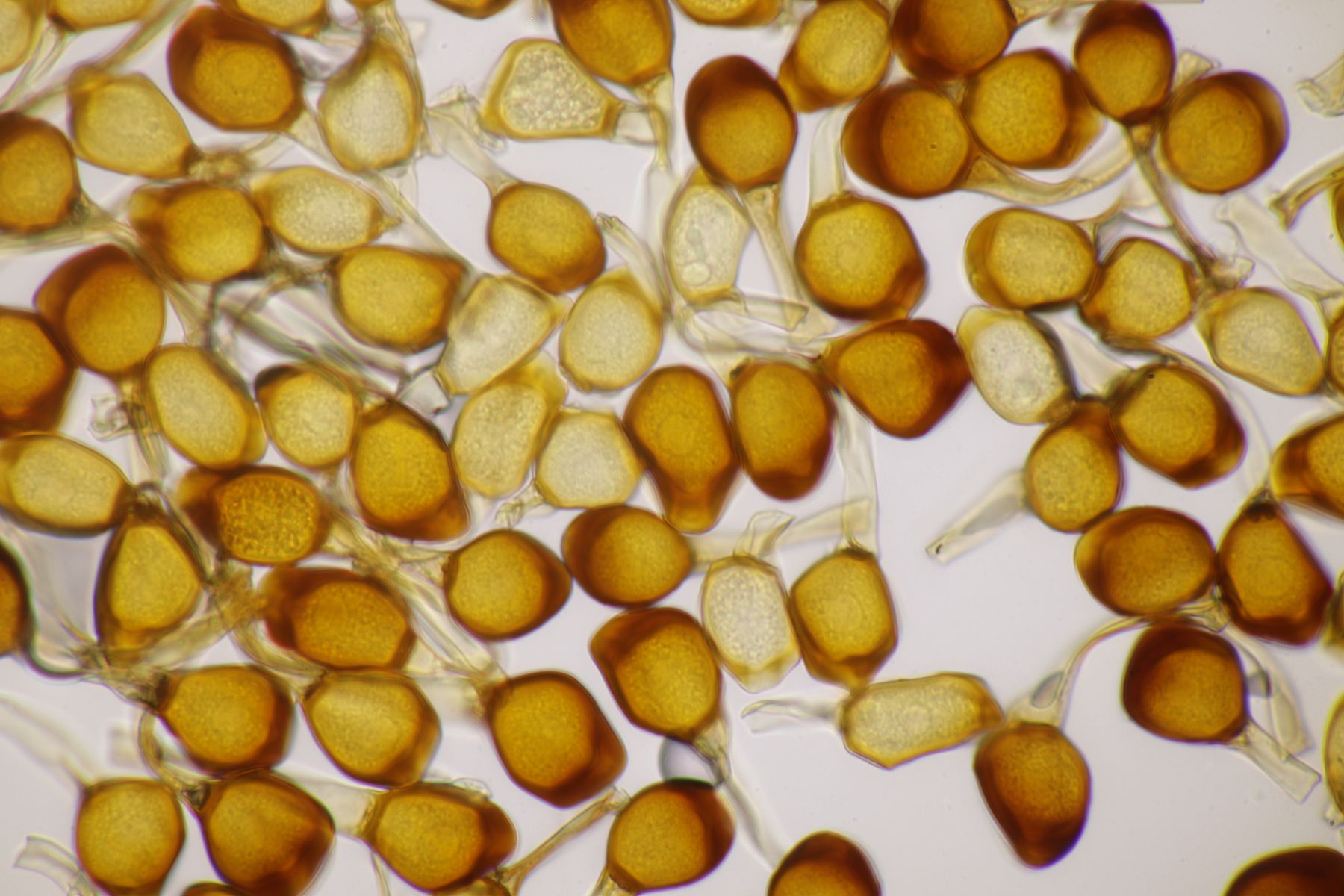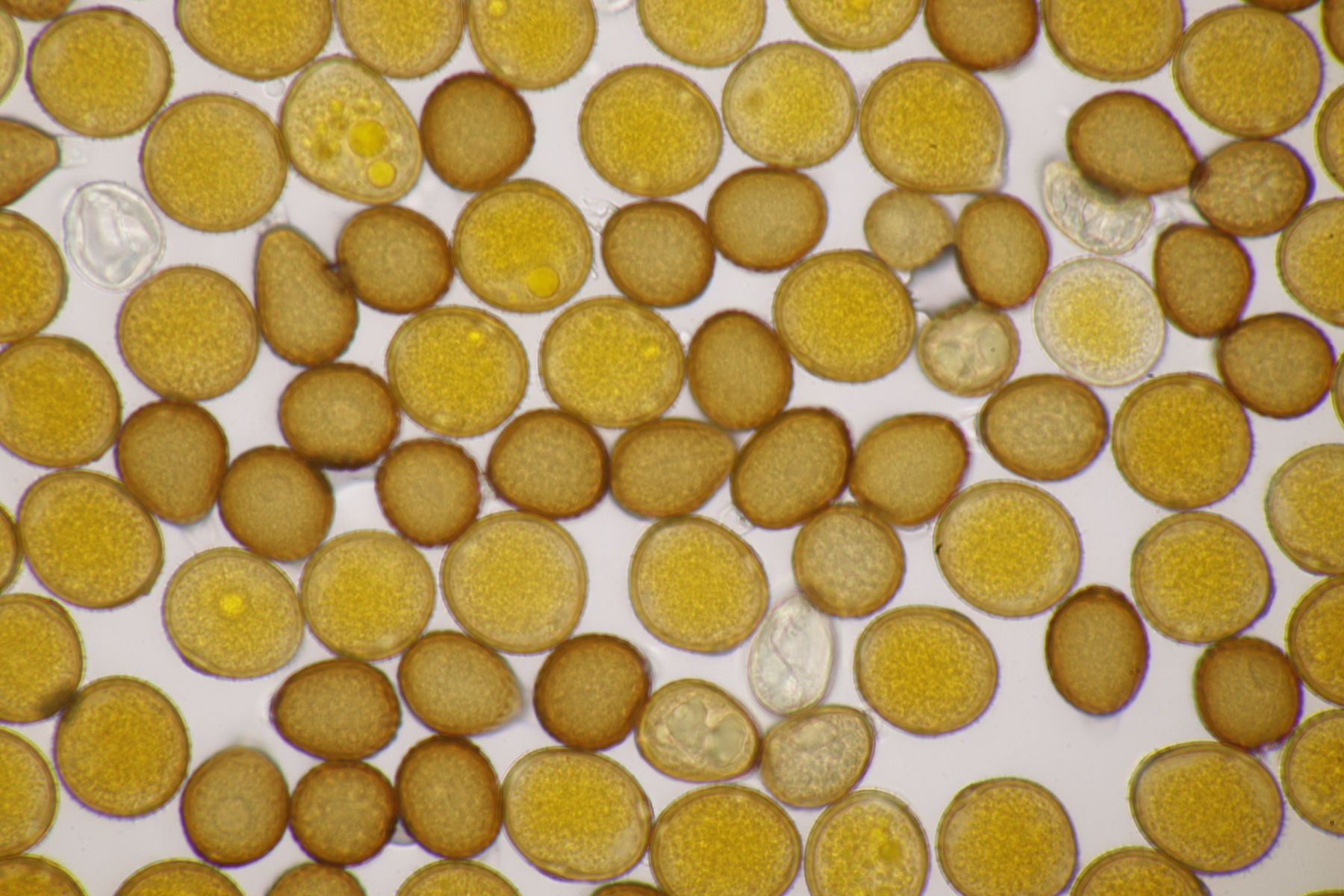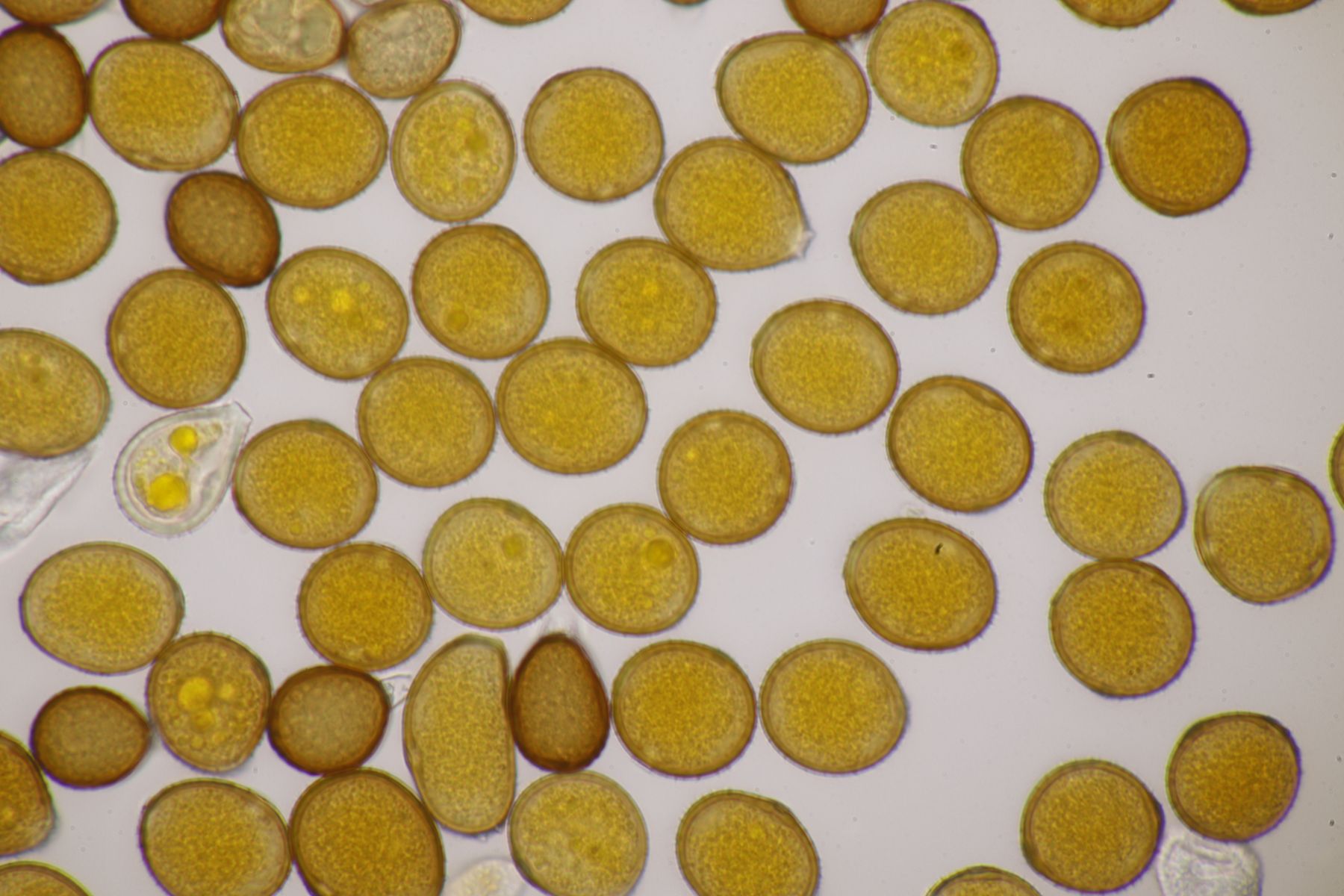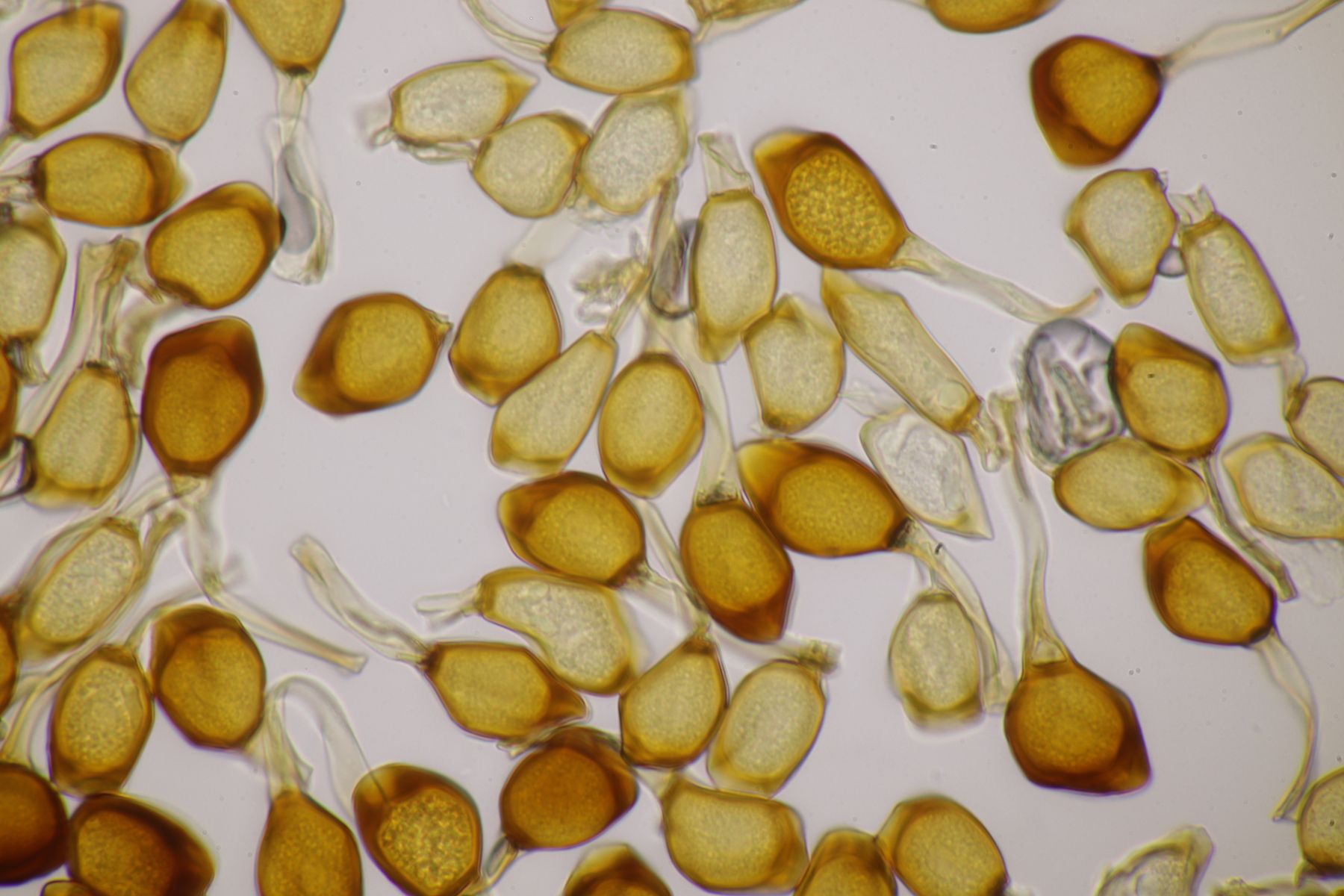 ich würde beim Huthautpräparat nicht zu sehr quetschen, man möchte ja auch noch grob wissen, wo bei der Huthaut oben und unten ist. Idealerweise hat man mit der oben beschriebenen Rasierklingentechnik aber auch nur ein hauchdünnes Stück Huthaut, das man gar nicht groß quetschen muß. Beim intrazellulären Pigment ist das Pigment im "Saft" im Inneren der Zelle gelöst. Das ist mitunter nicht so gut zu erkennen, gerade bei helleren Fruchtkörpern. In den FE wird deshalb auch empfohlen, Präparate in Zucker- oder Salzlösung zu machen, wo die Osmose dann dazu führt, daß das Zellinnere Wasser verliert und die Färbung besser erkennbar wird.