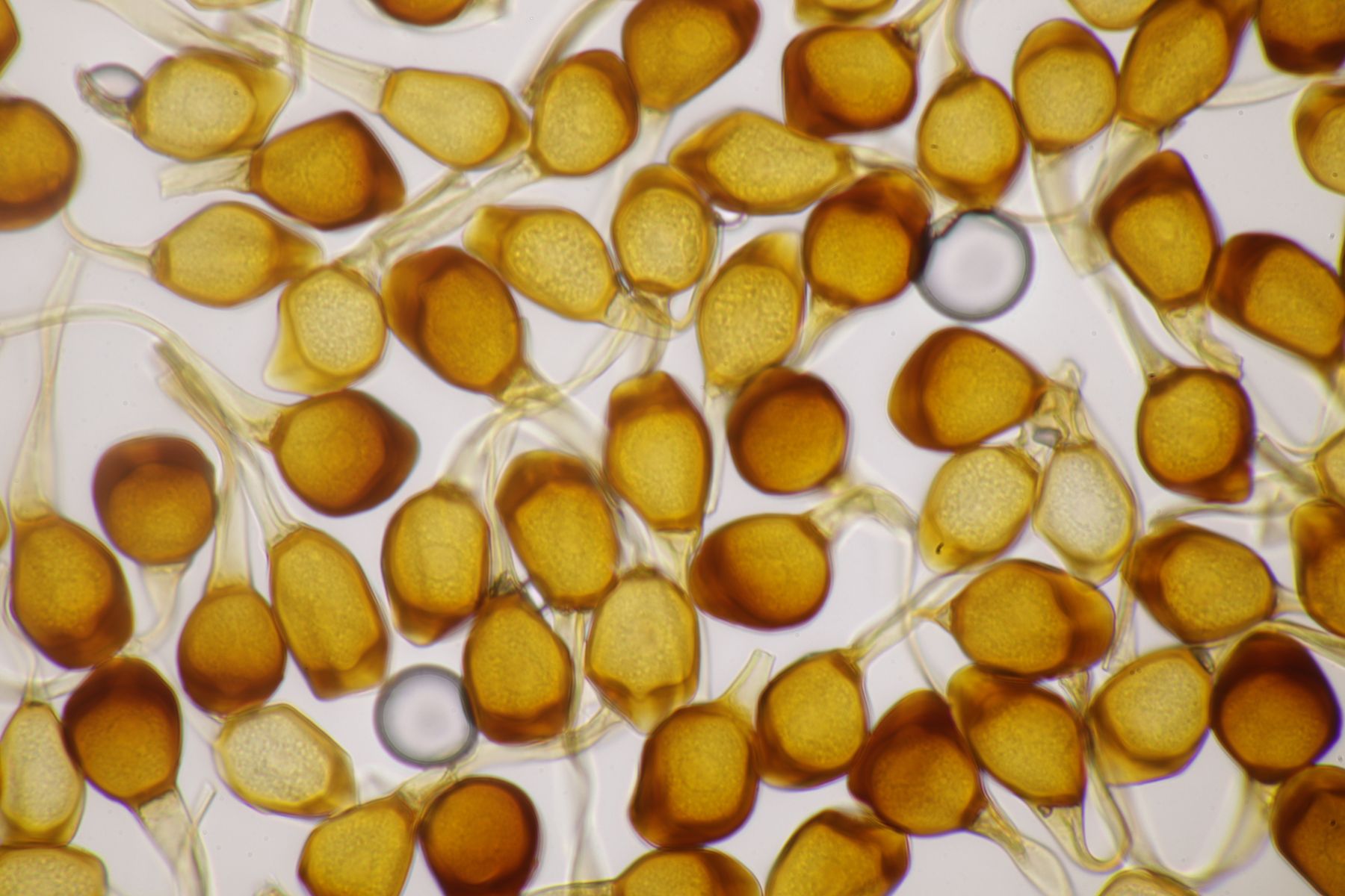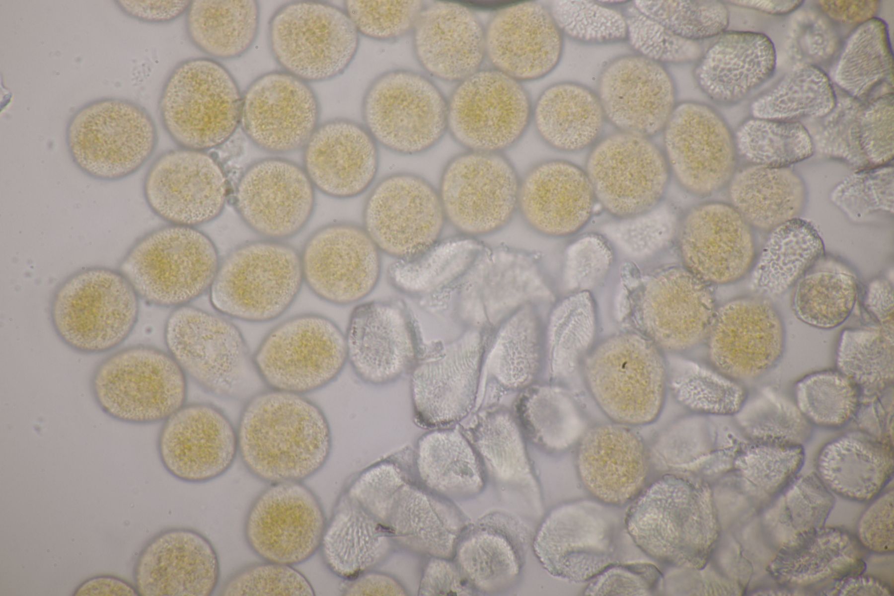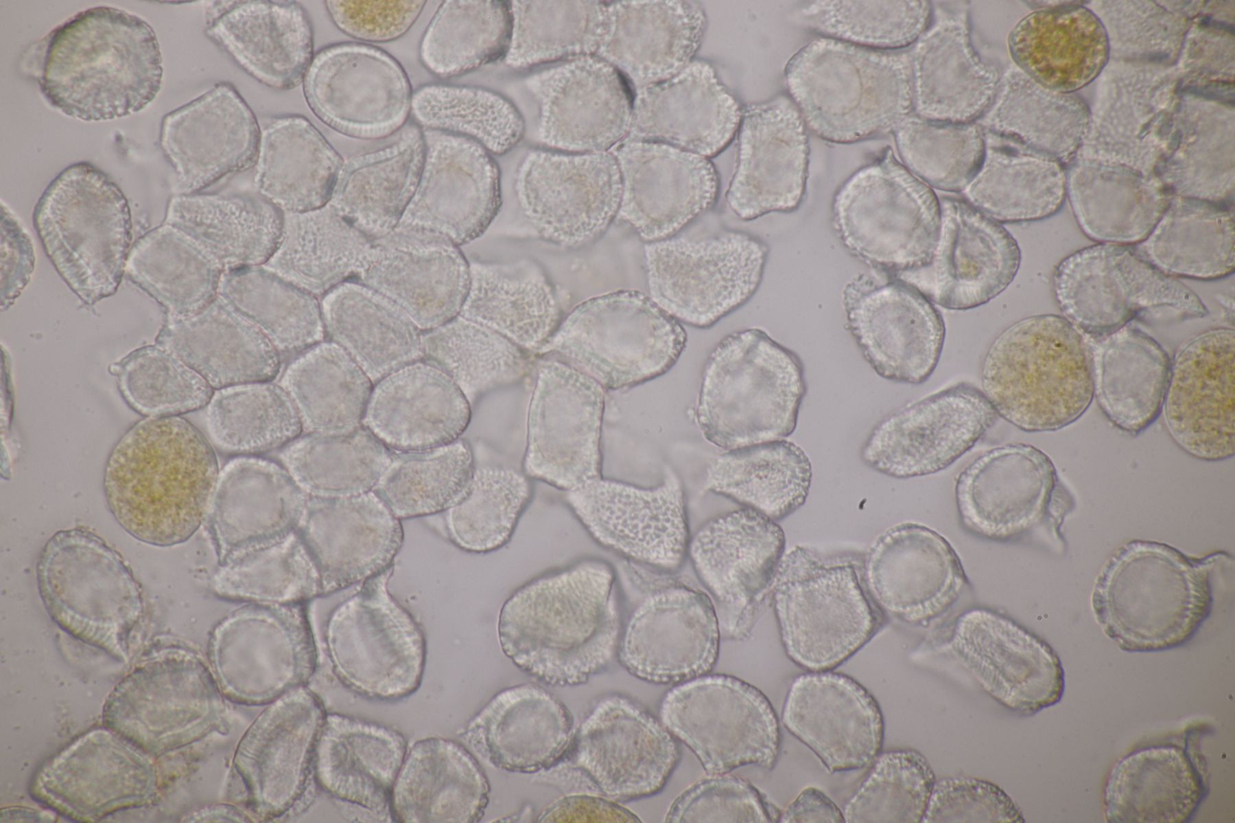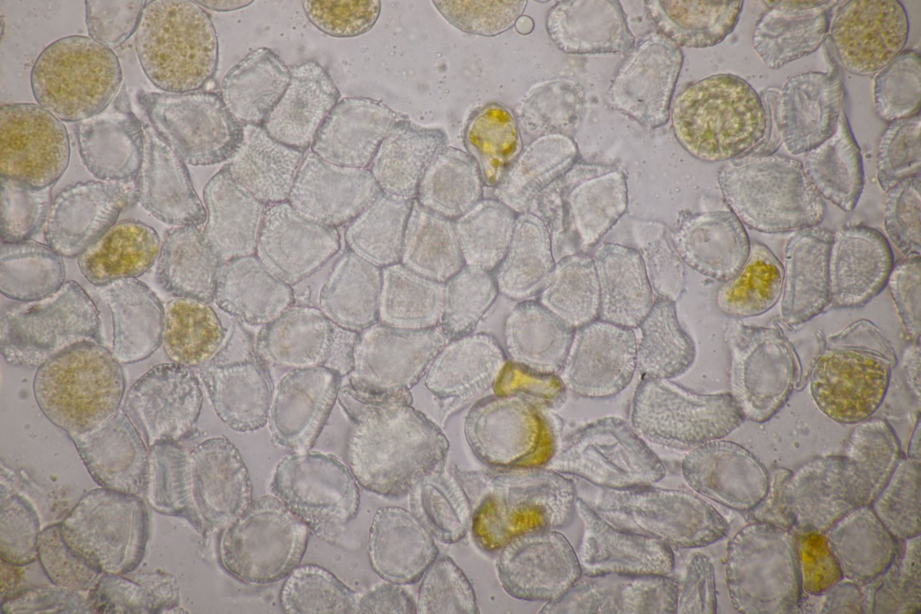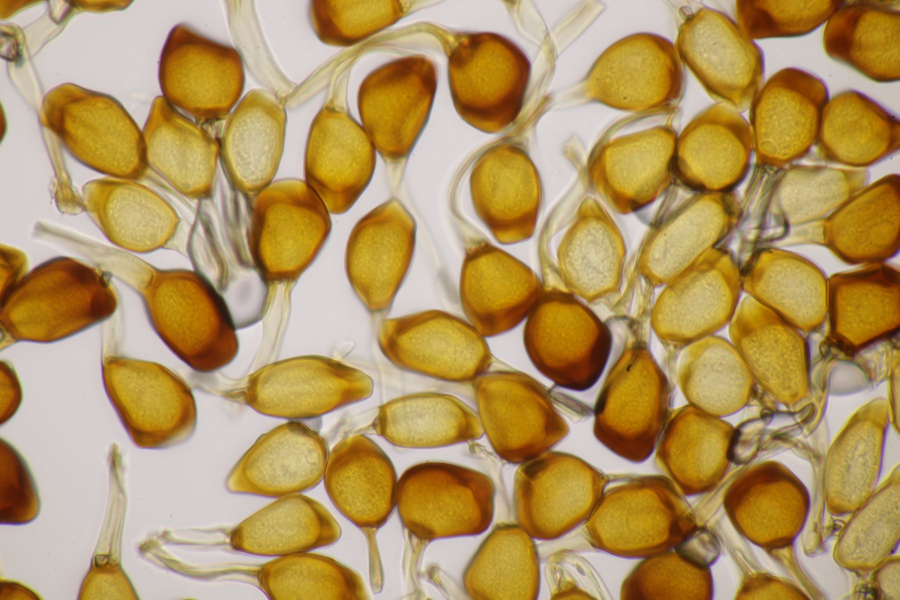 ich würde beim Huthautpräparat nicht zu sehr quetschen, man möchte ja auch noch grob wissen, wo bei der Huthaut oben und unten ist. Idealerweise hat man mit der oben beschriebenen Rasierklingentechnik aber auch nur ein hauchdünnes Stück Huthaut, das man gar nicht groß quetschen muß. Beim intrazellulären Pigment ist das Pigment im "Saft" im Inneren der Zelle gelöst. Das ist mitunter nicht so gut zu erkennen, gerade bei helleren Fruchtkörpern. In den FE wird deshalb auch empfohlen, Präparate in Zucker- oder Salzlösung zu machen, wo die Osmose dann dazu führt, daß das Zellinnere Wasser verliert und die Färbung besser erkennbar wird.