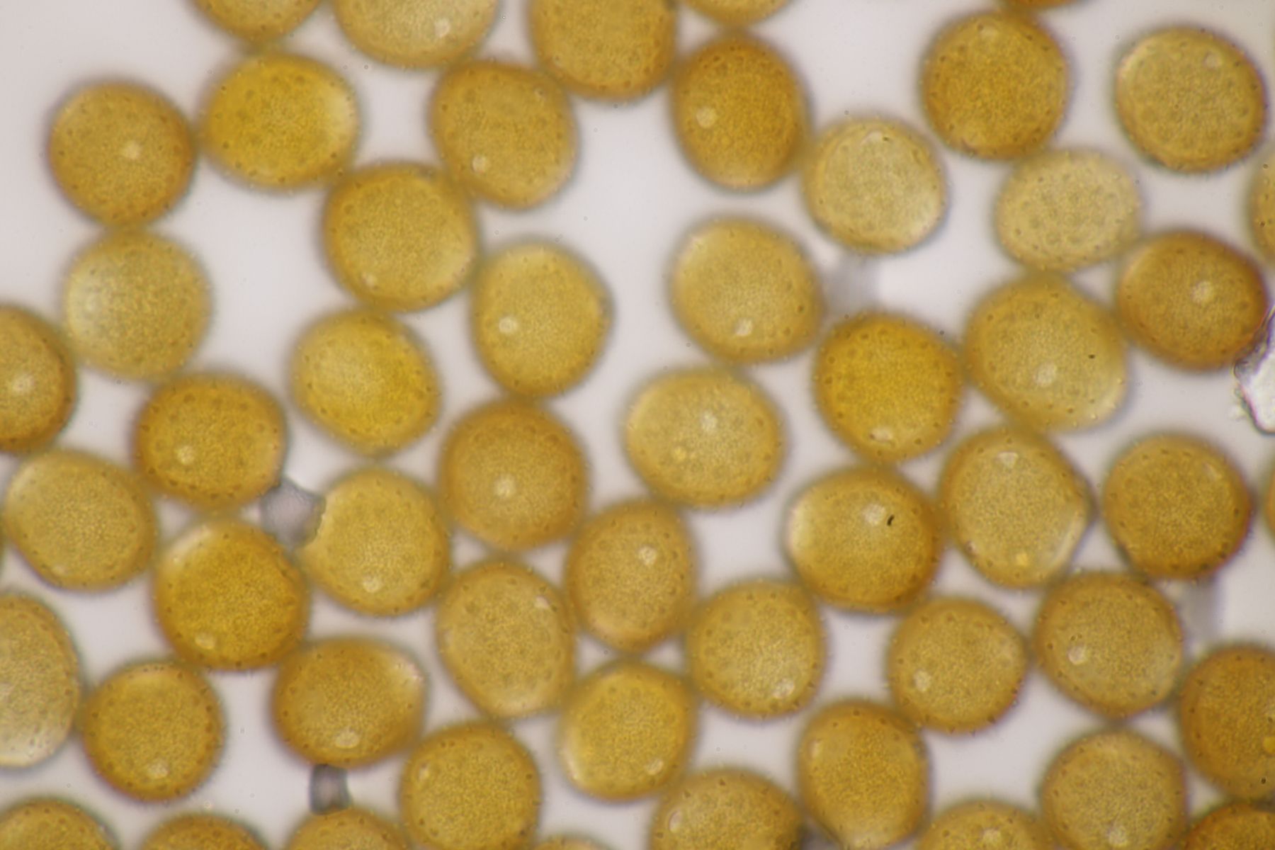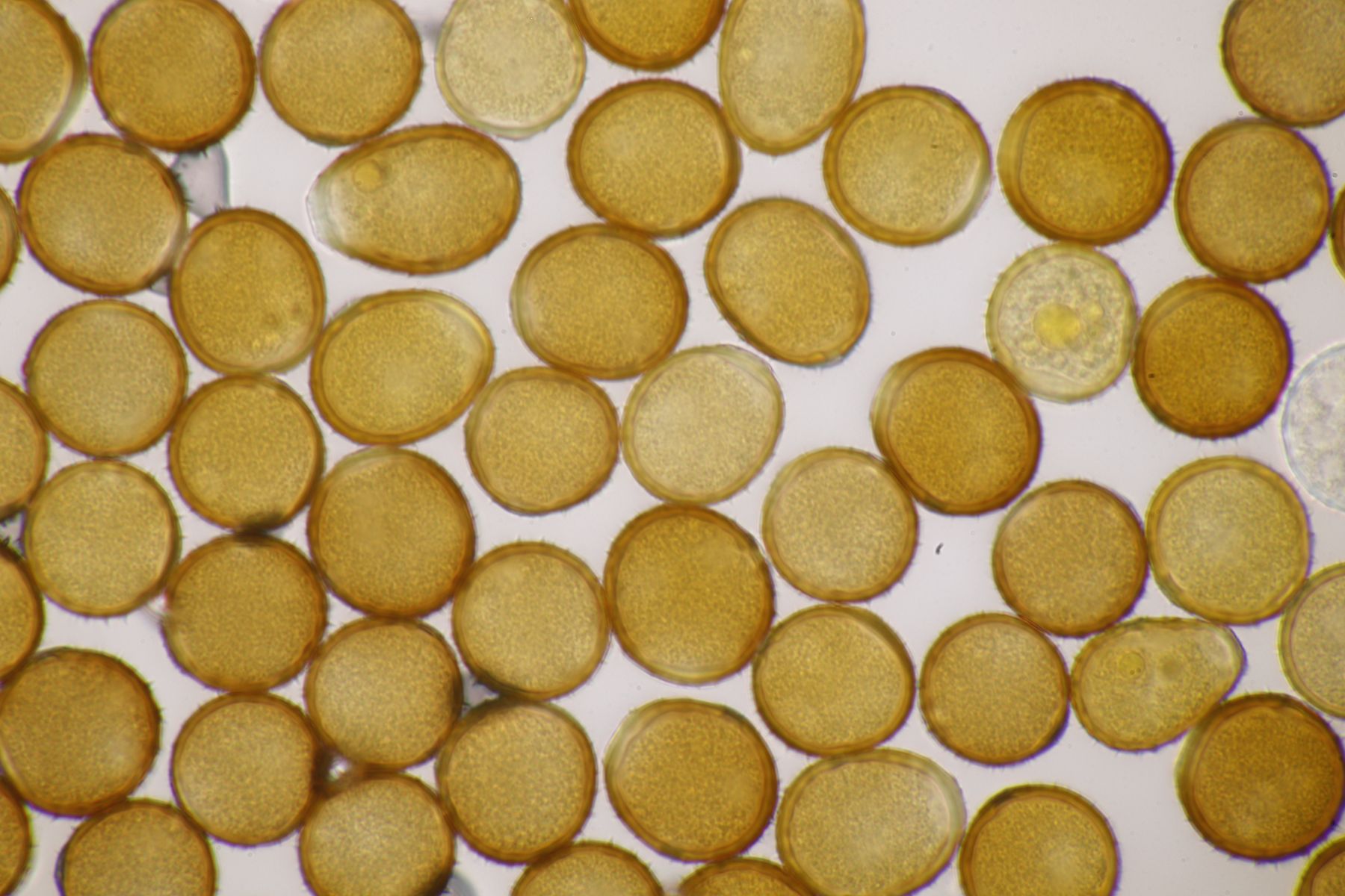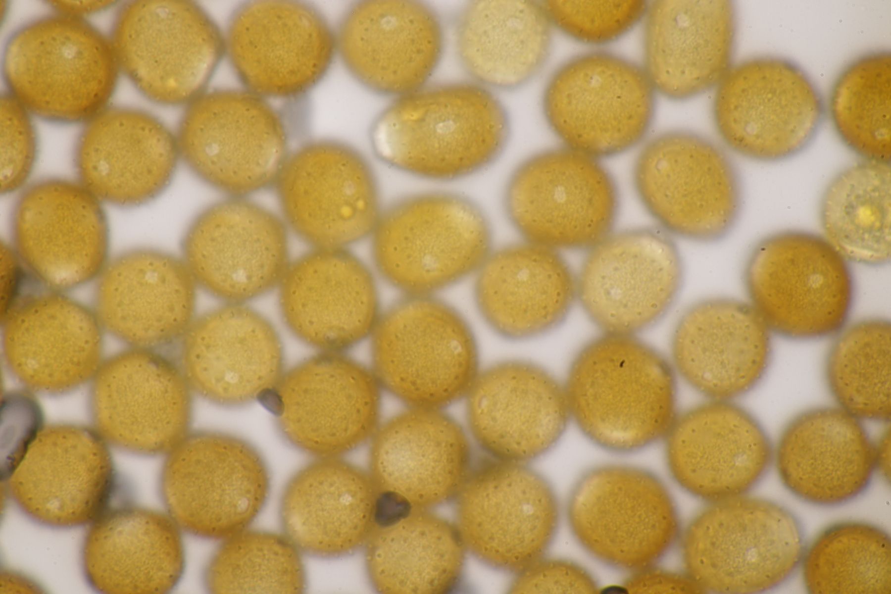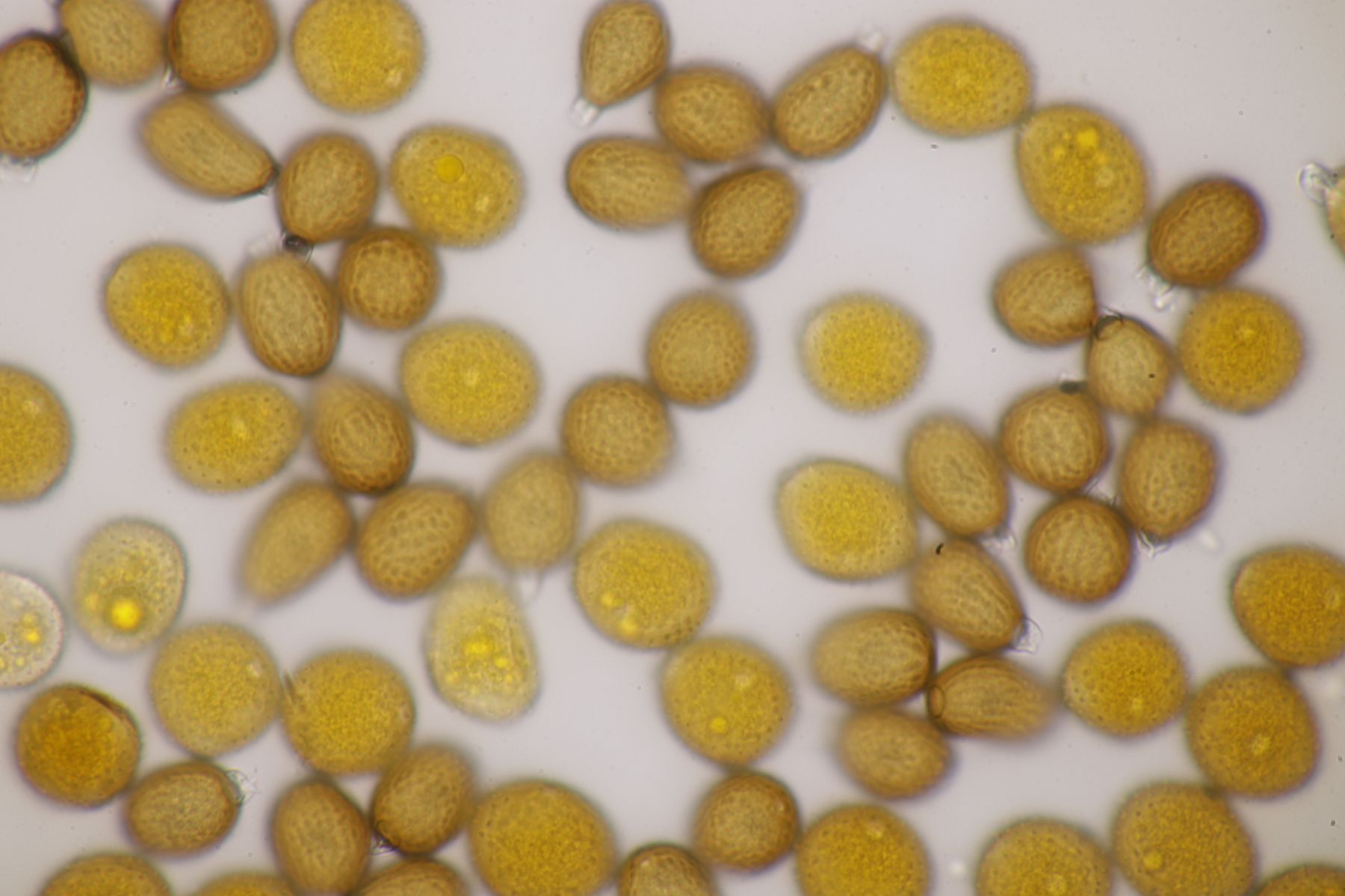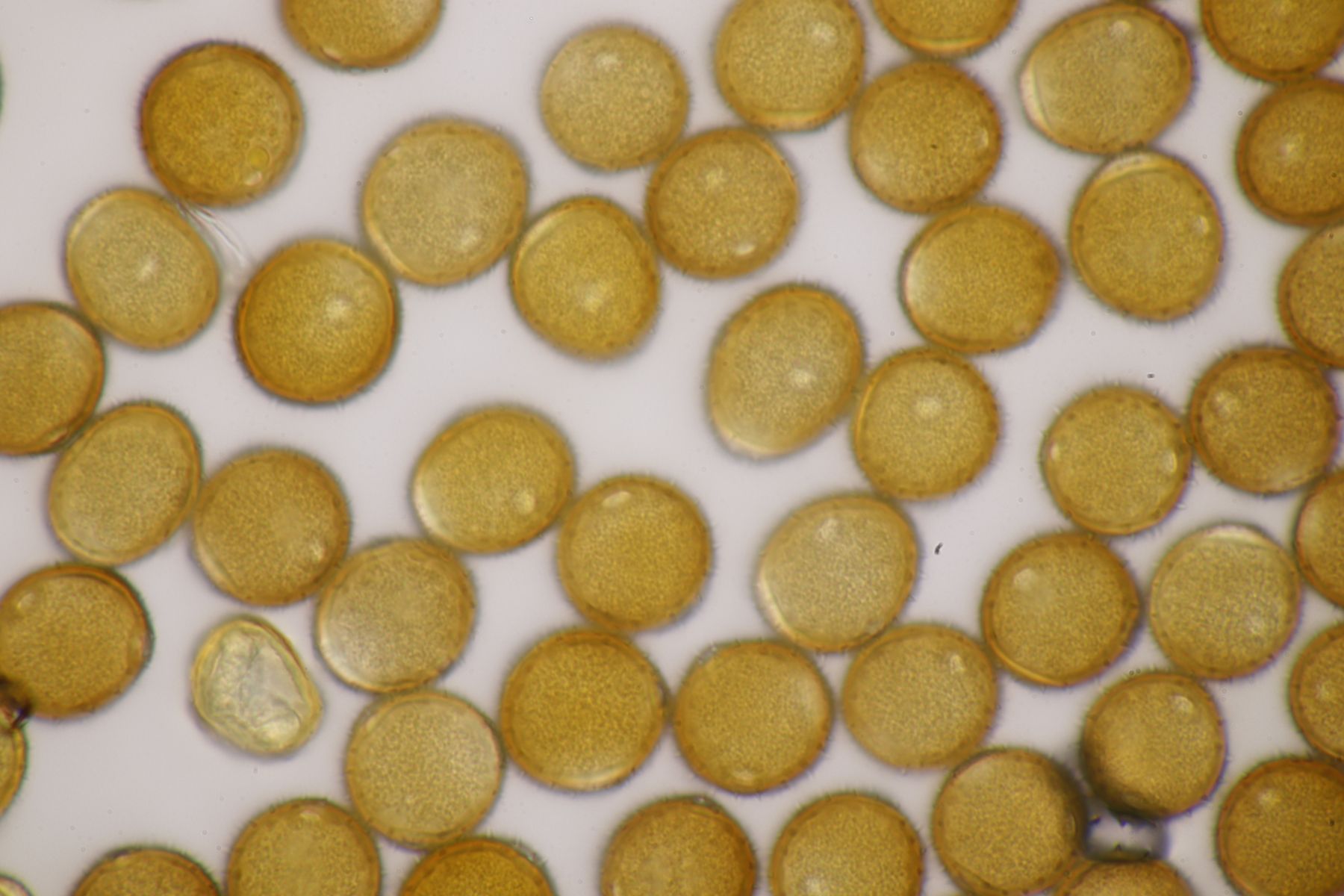 ich stimme dir zu, daß die makroskopische Erscheinung hier nicht so gut paßt. Allerdings waren die Fruchtkörper gestern Abend, als noch keine reifen Sporen gebildet waren, durchaus schön gelb. Das erkennt man zumindest in den Mikrobildern auch noch ganz gut, denn da ist ja eine intensive gelbe Schleimschicht um die Paraphysen erkennbar. Soweit ich das überblicke, hat A. sacchariferus das nicht, da sind die Paraphysen in eine hyaline Masse eingebettet.