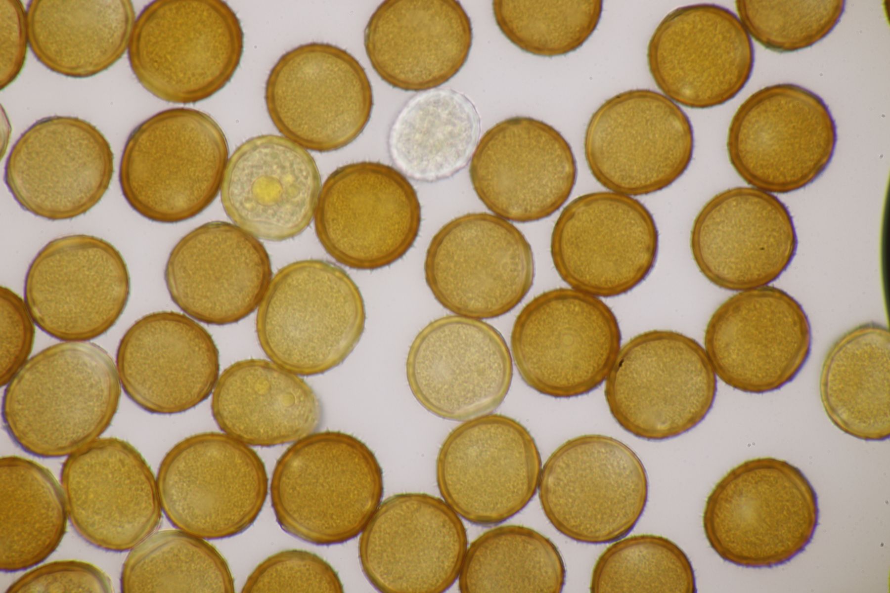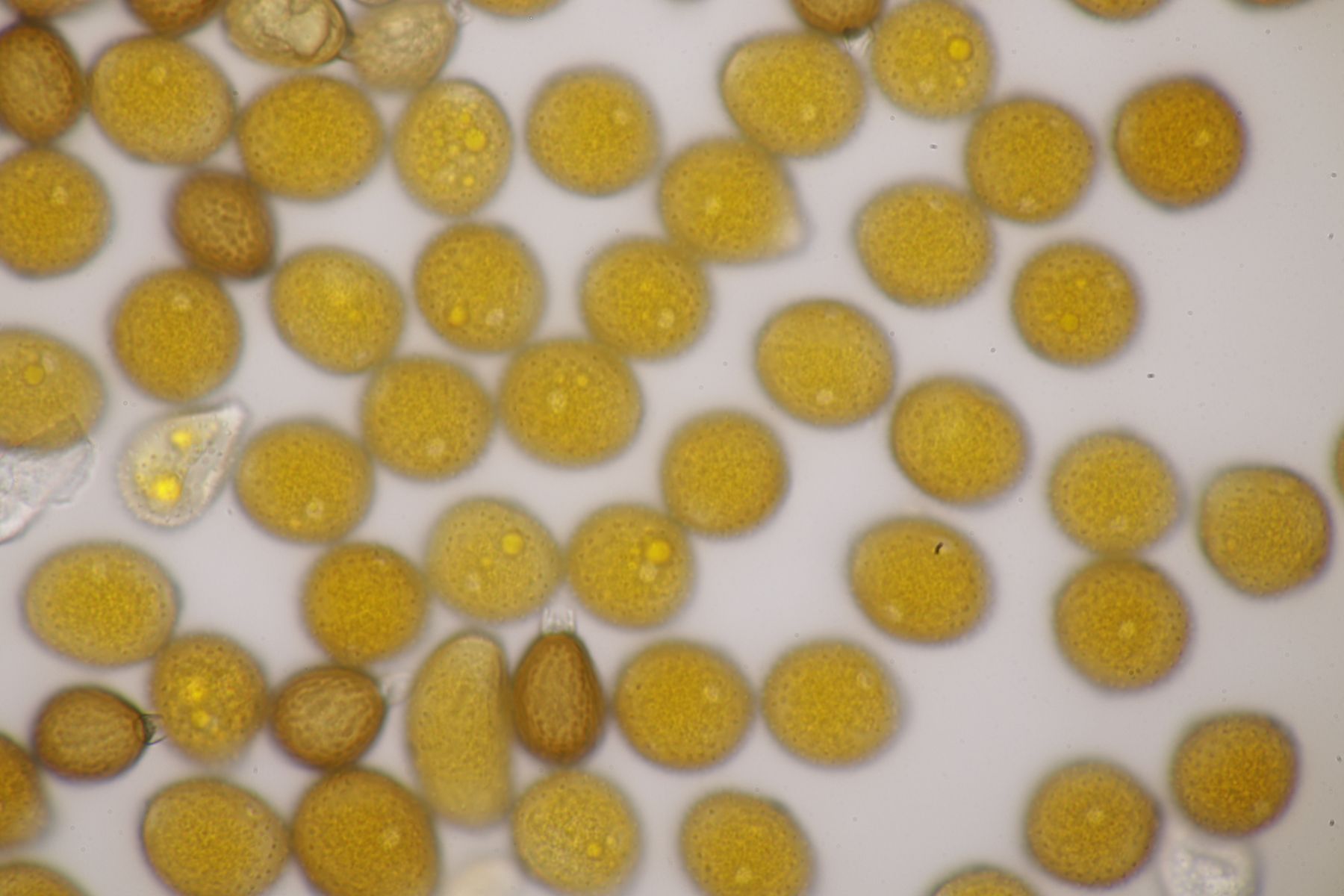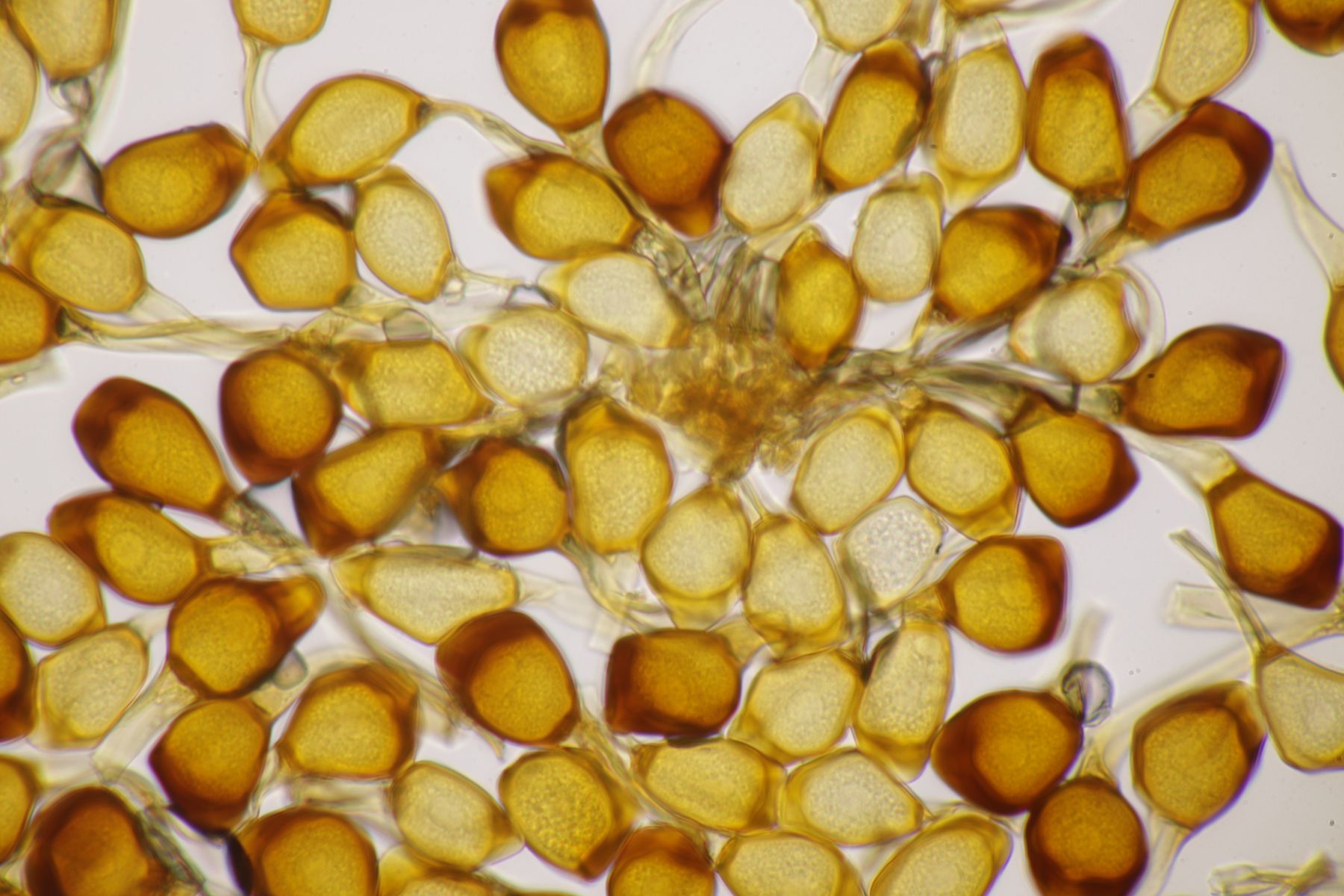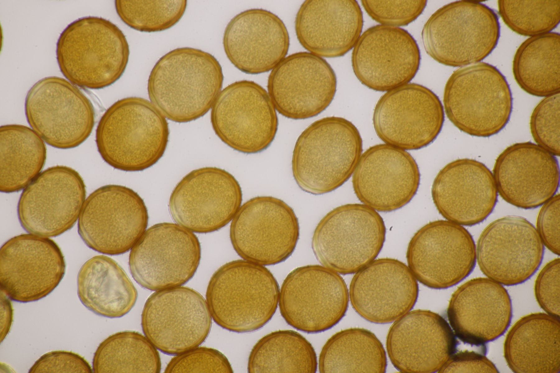 ich stimme dir zu, daß die makroskopische Erscheinung hier nicht so gut paßt. Allerdings waren die Fruchtkörper gestern Abend, als noch keine reifen Sporen gebildet waren, durchaus schön gelb. Das erkennt man zumindest in den Mikrobildern auch noch ganz gut, denn da ist ja eine intensive gelbe Schleimschicht um die Paraphysen erkennbar. Soweit ich das überblicke, hat A. sacchariferus das nicht, da sind die Paraphysen in eine hyaline Masse eingebettet.