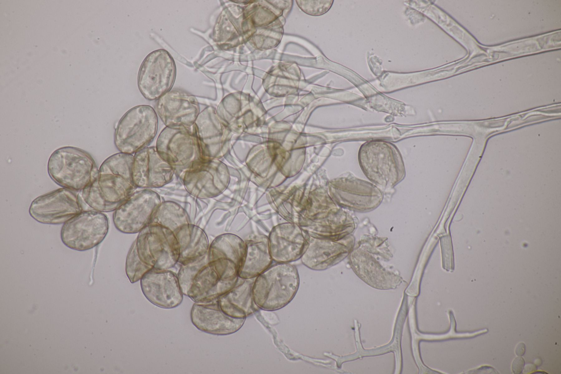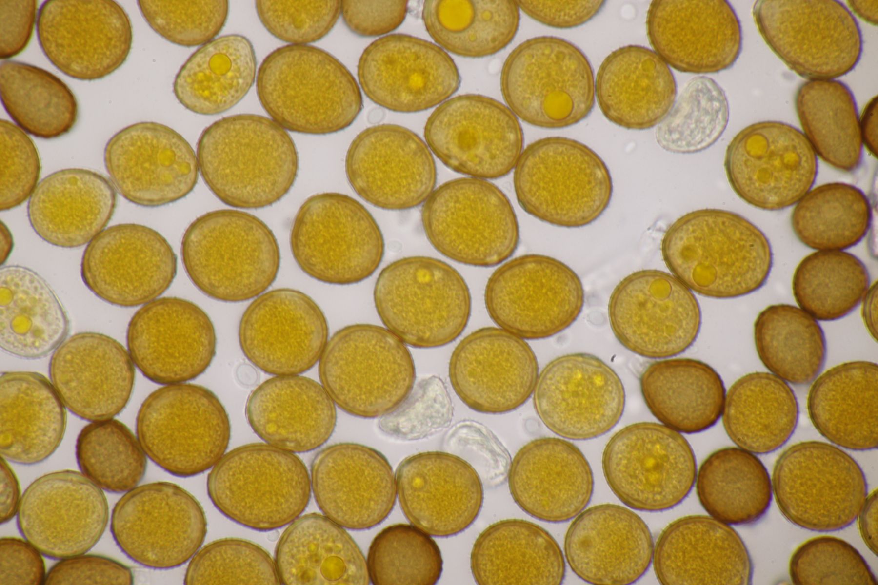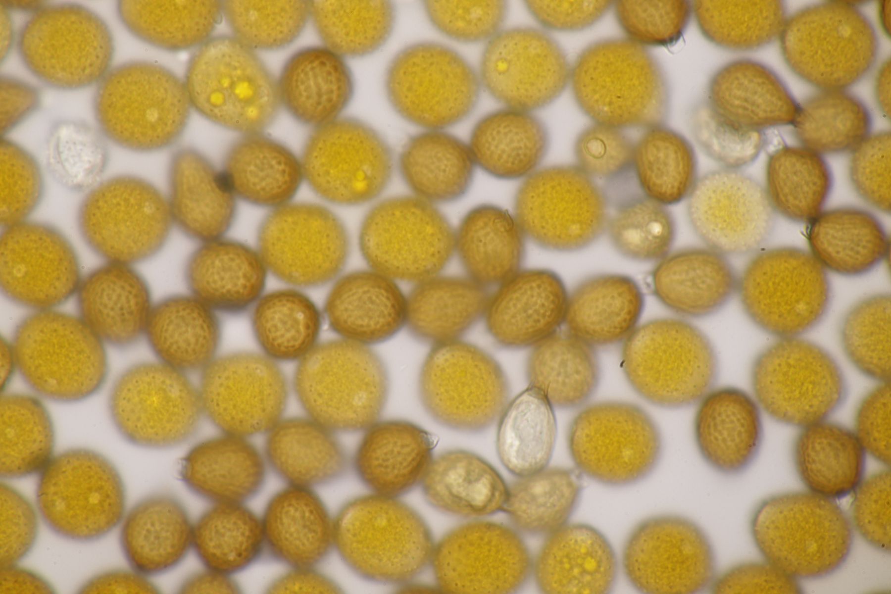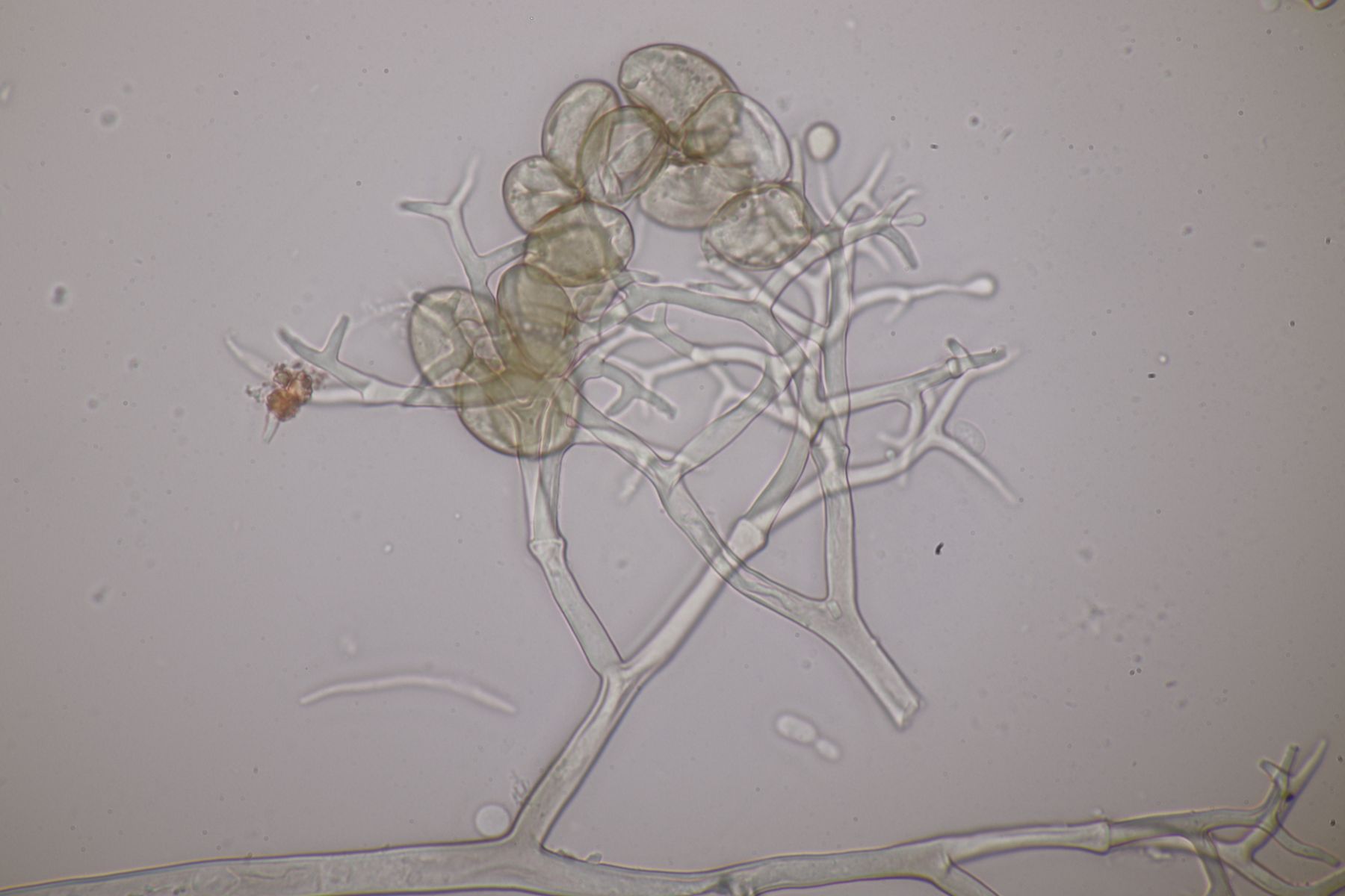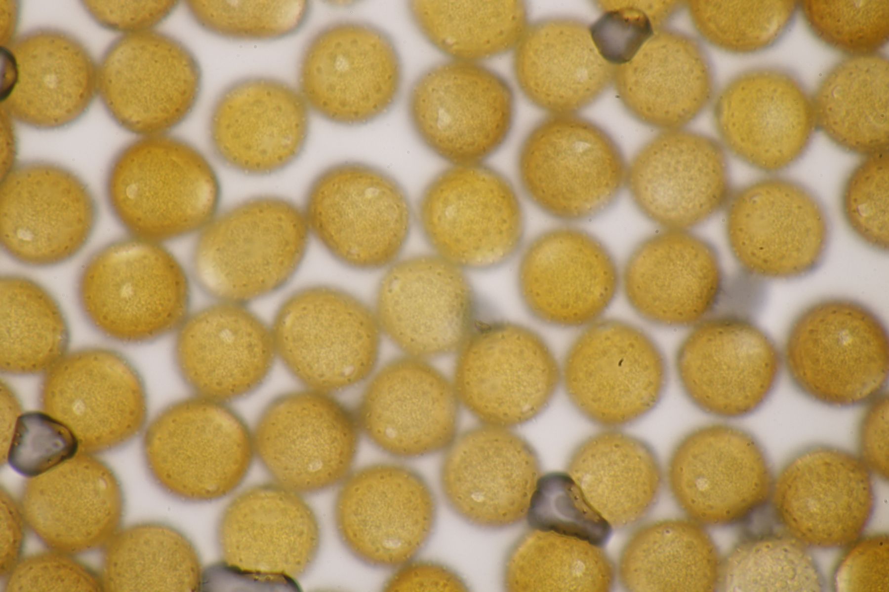 ich stimme dir zu, daß die makroskopische Erscheinung hier nicht so gut paßt. Allerdings waren die Fruchtkörper gestern Abend, als noch keine reifen Sporen gebildet waren, durchaus schön gelb. Das erkennt man zumindest in den Mikrobildern auch noch ganz gut, denn da ist ja eine intensive gelbe Schleimschicht um die Paraphysen erkennbar. Soweit ich das überblicke, hat A. sacchariferus das nicht, da sind die Paraphysen in eine hyaline Masse eingebettet.