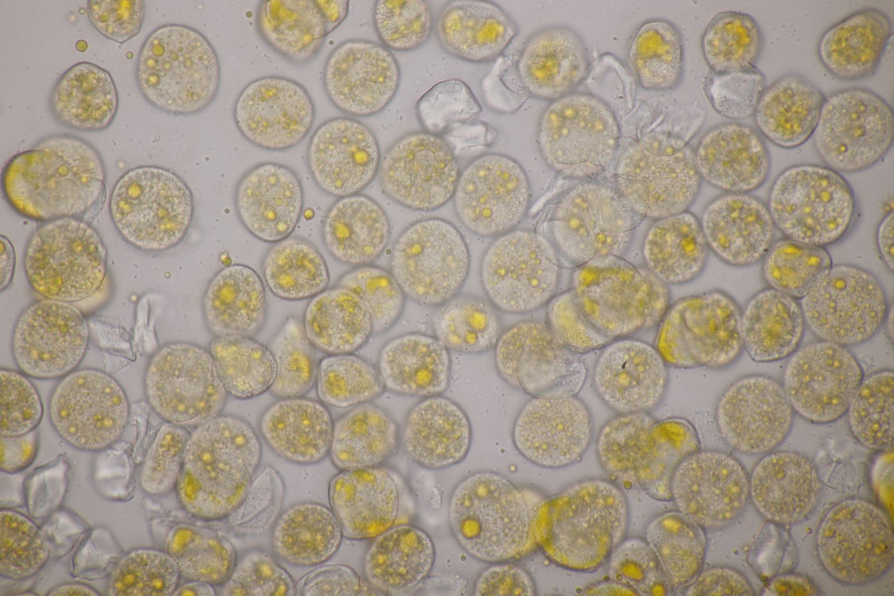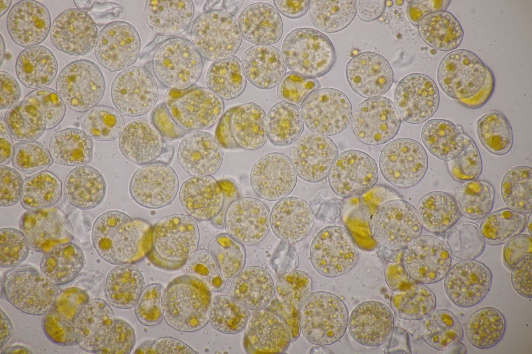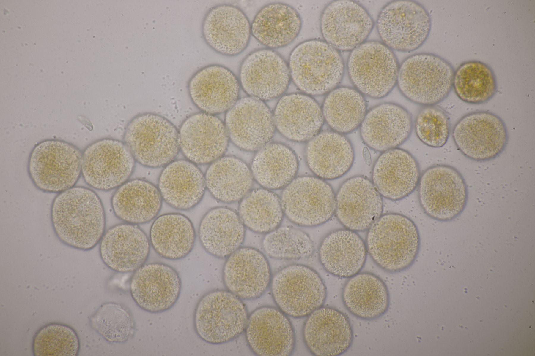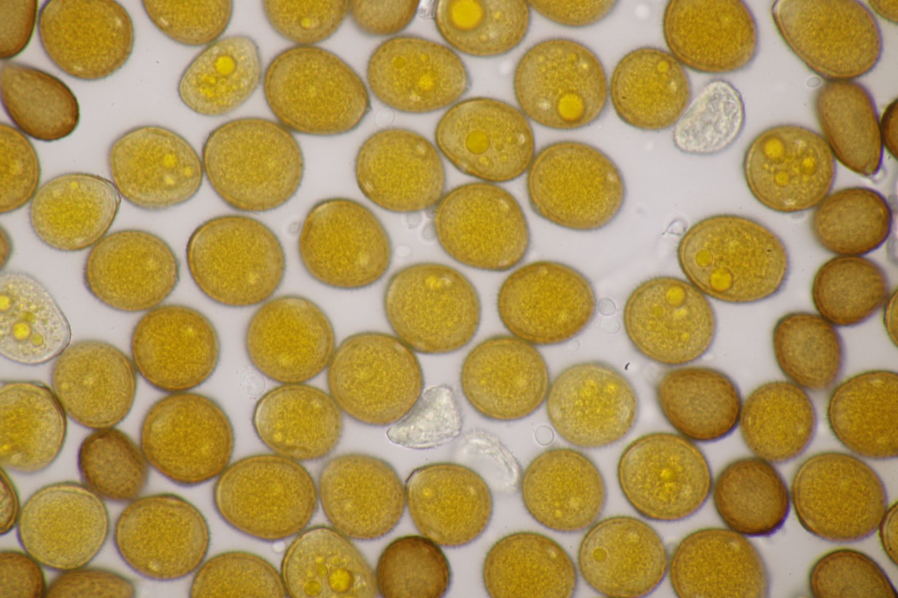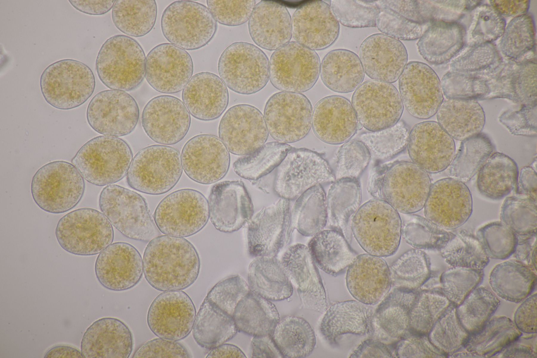 ich stimme dir zu, daß die makroskopische Erscheinung hier nicht so gut paßt. Allerdings waren die Fruchtkörper gestern Abend, als noch keine reifen Sporen gebildet waren, durchaus schön gelb. Das erkennt man zumindest in den Mikrobildern auch noch ganz gut, denn da ist ja eine intensive gelbe Schleimschicht um die Paraphysen erkennbar. Soweit ich das überblicke, hat A. sacchariferus das nicht, da sind die Paraphysen in eine hyaline Masse eingebettet.