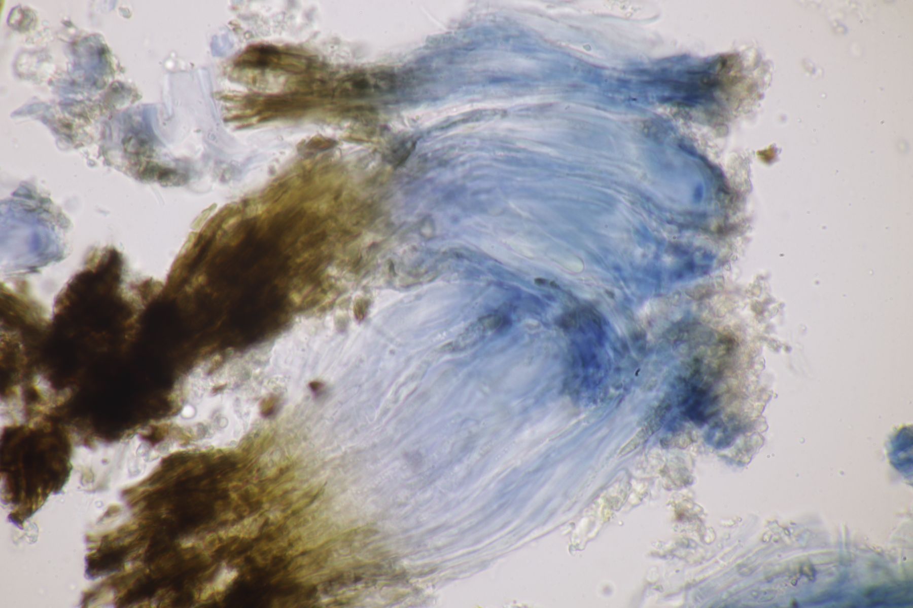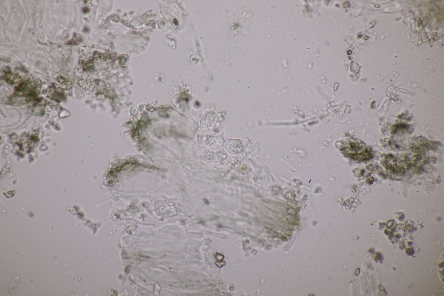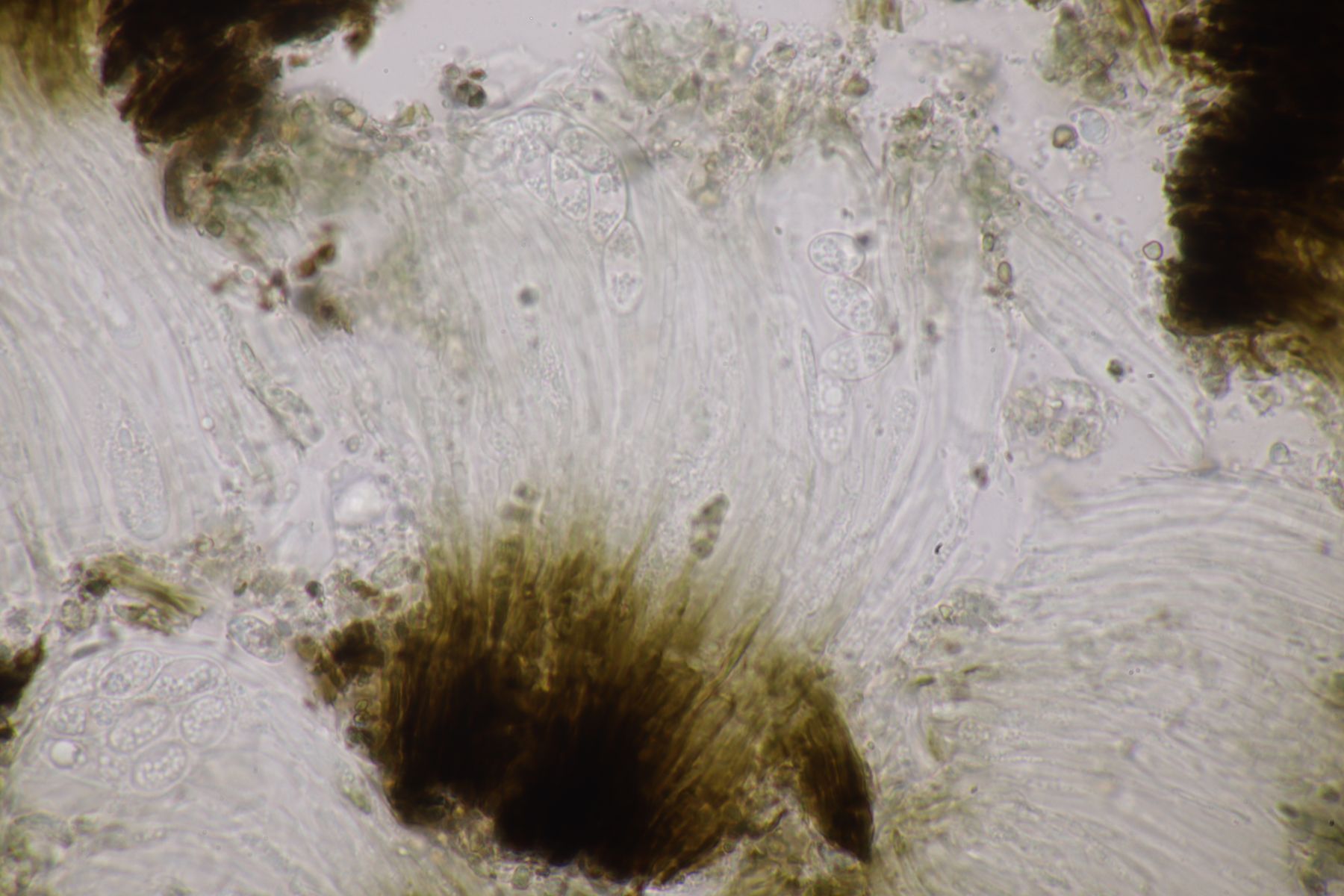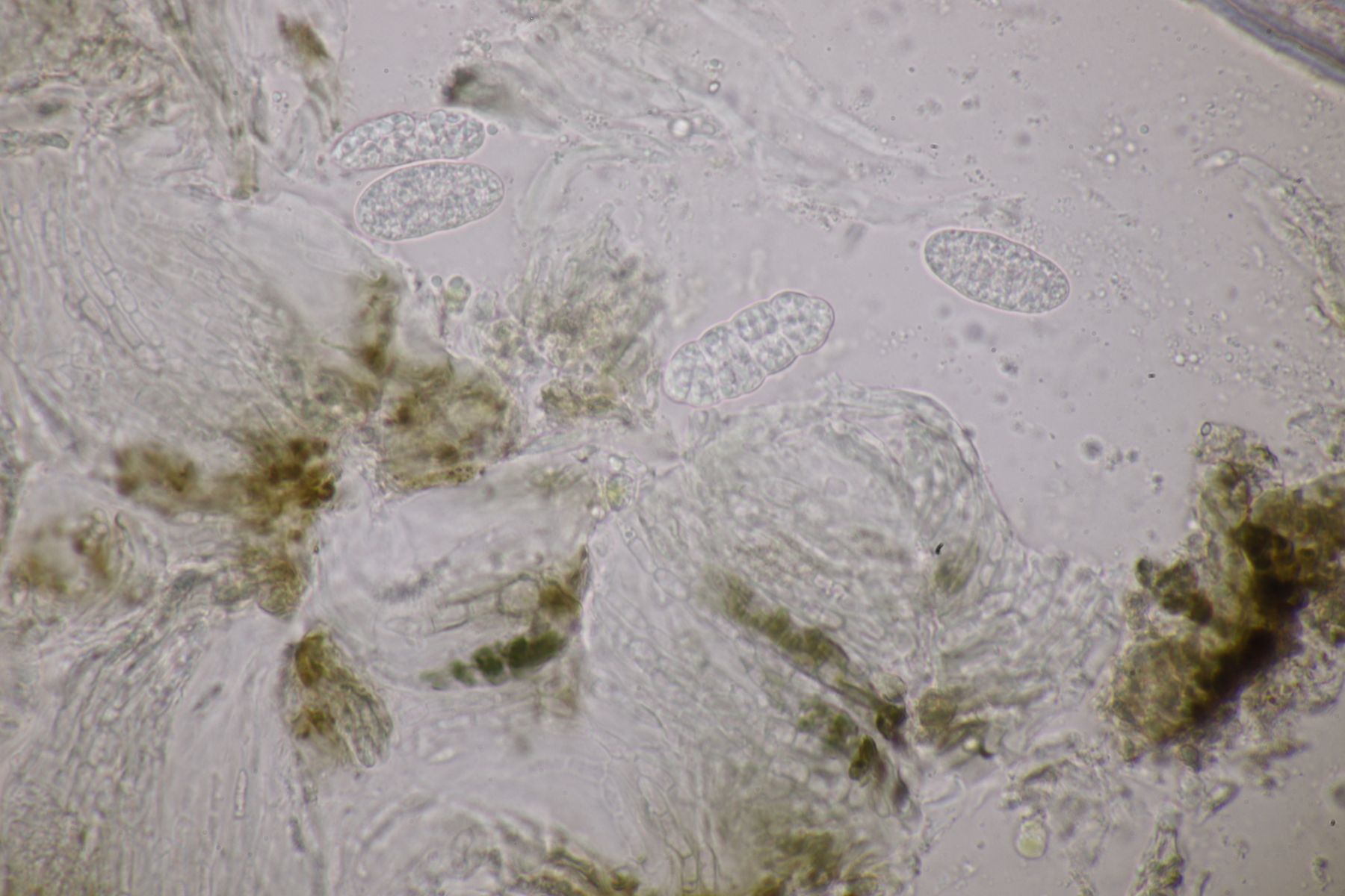 bei Scutellinias ist das Sporenornament für die Bestimmung sehr wichtig. Hierfür benötigt man reife Sporen (idealerweise aus einem Abwurf) und betrachtet das Ornament am besten in Baumwollblau.