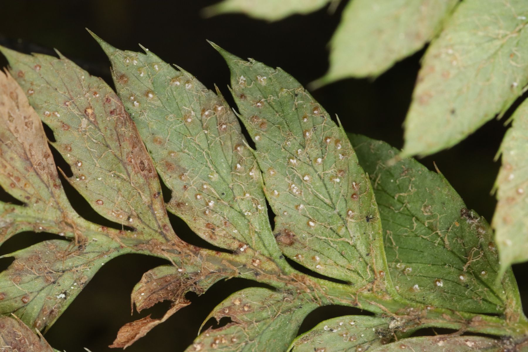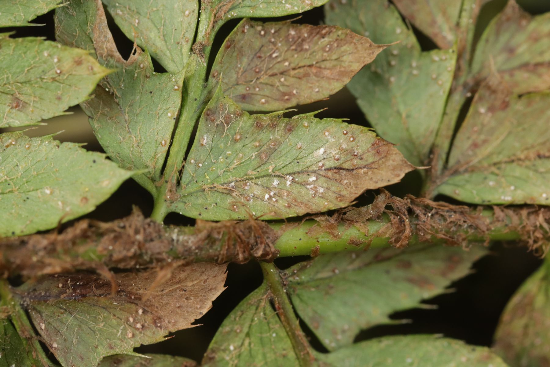 10. Ochropsora ariae ex Anemone nemorosa, dazu im Doppelbefall Urocystis anemones