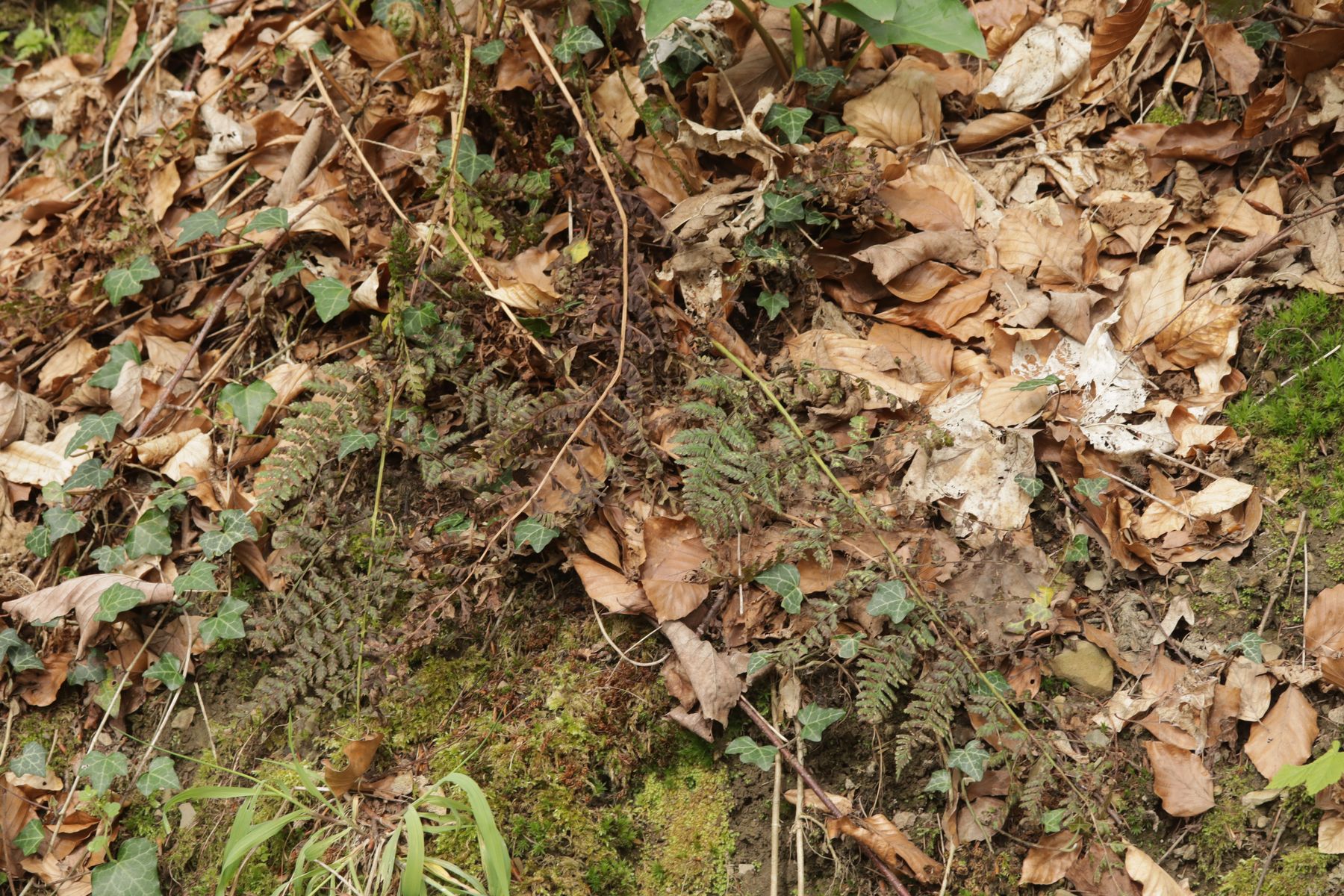 2. Beim Bücken nach Helvella acetabulum fielen mir dann kleine schwarze Punkte auf alten Crataegus-Blättern auf: Lophiodermium foliicola. Die Art hatte ich bis jetzt noch nicht.