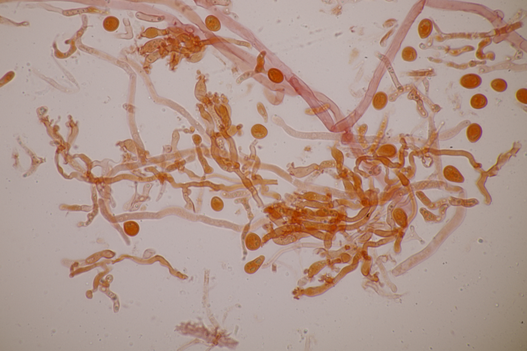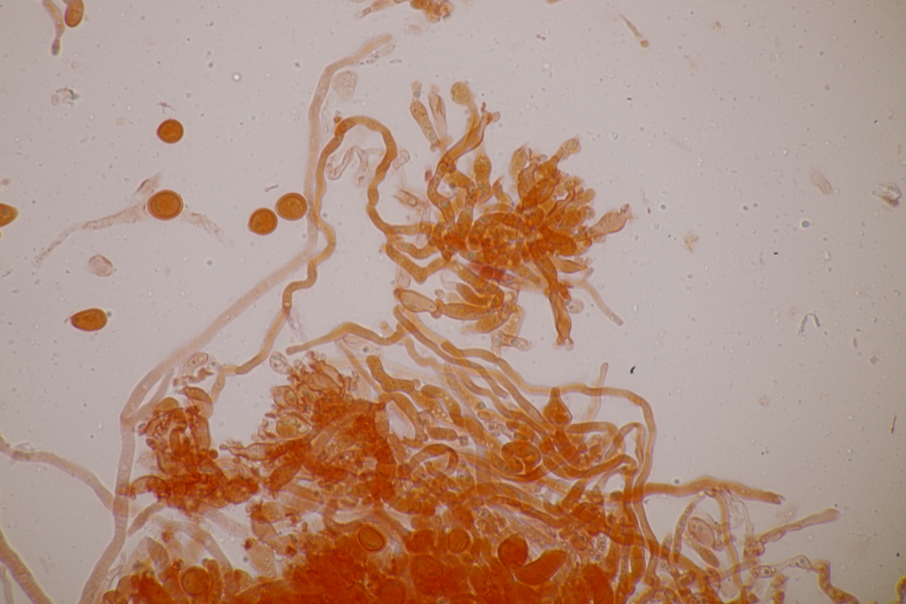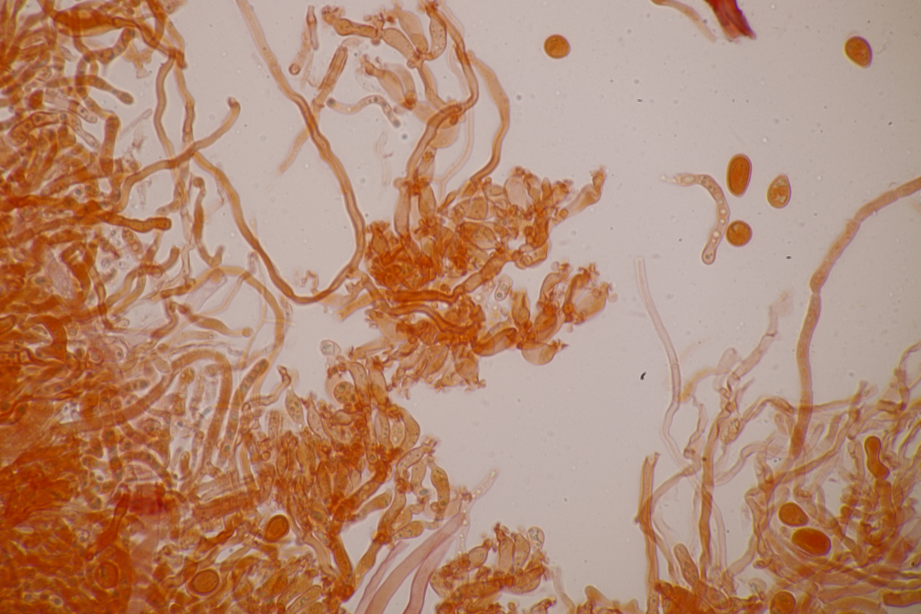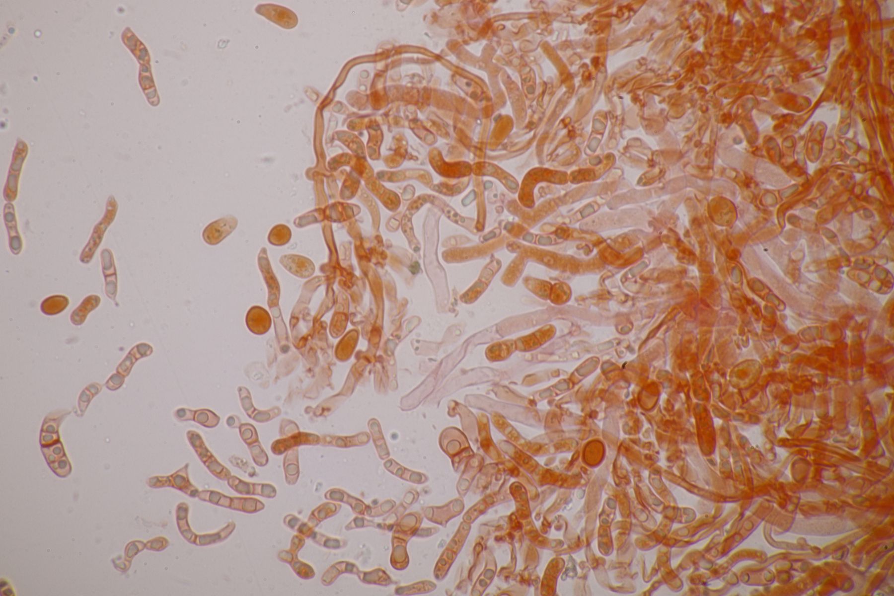 Ein weiterer Tipp fürs Färben (was ja viele Dinge deutlicher erkennbar macht): Material in einen Tropfen Kongorot geben, den Tropfen ganz eintrocknen lassen, anschließend mit einem Tropfen Wasser/KOH das überschüssige Kongorot entfernen und danach in KOH mikroskopieren. Das sorgt für eine sehr intensive Rotfärbung.
