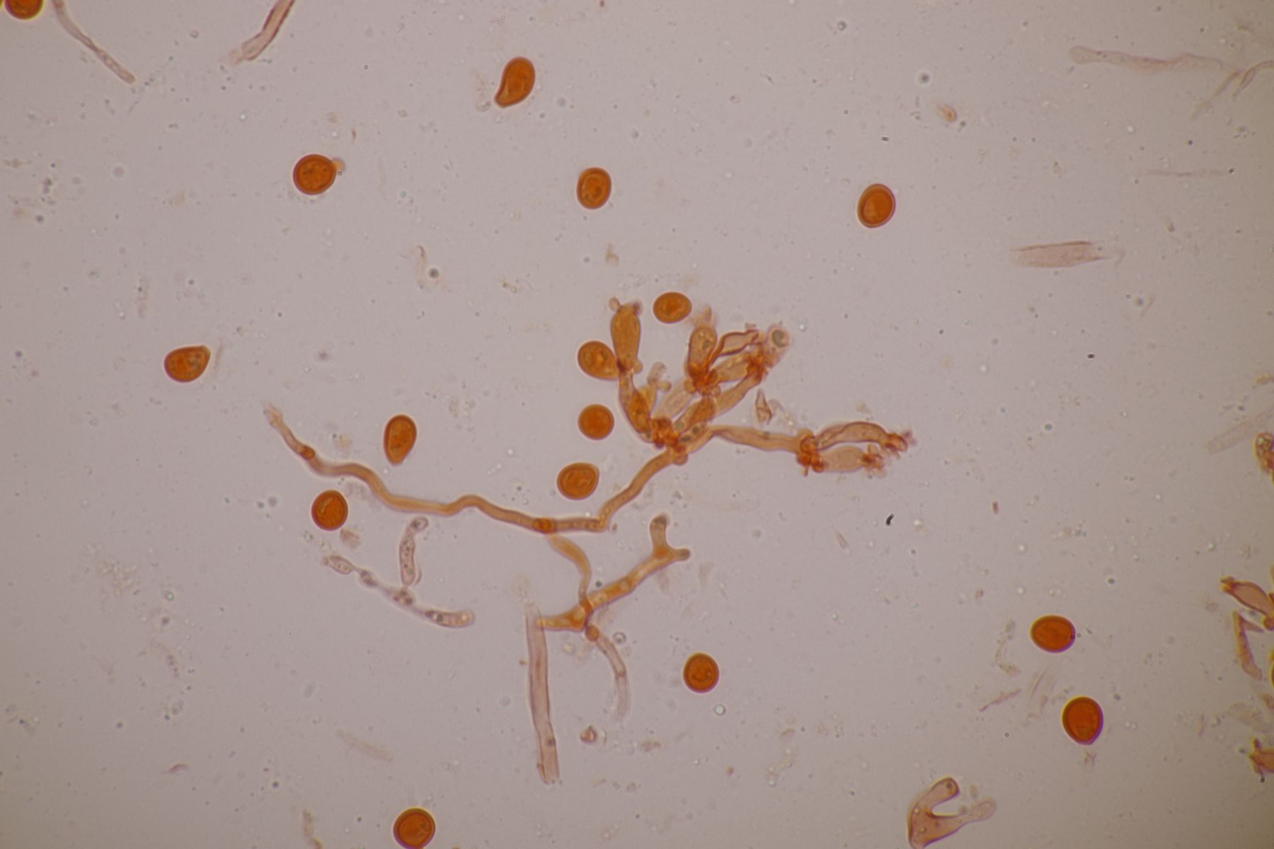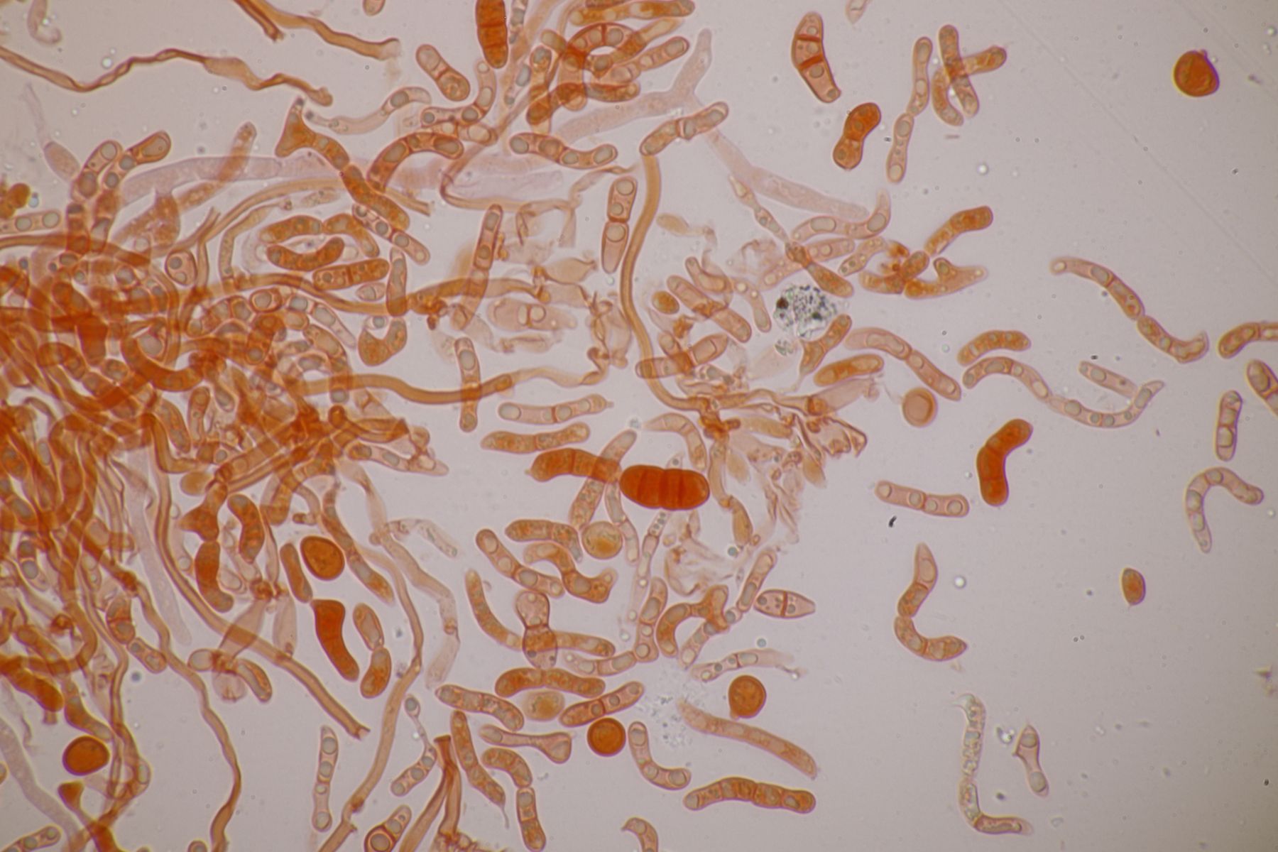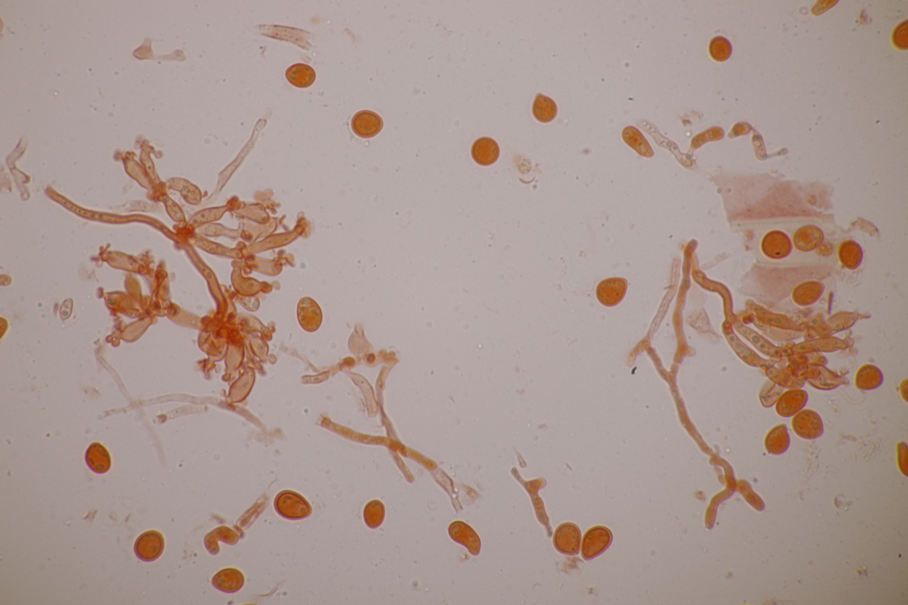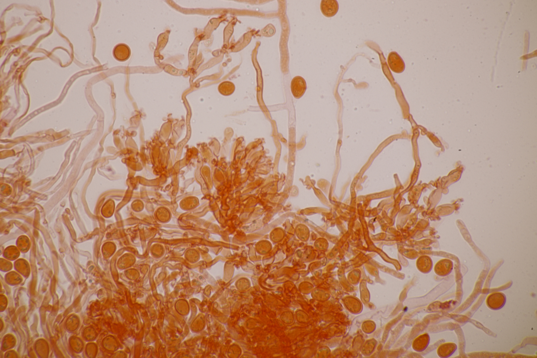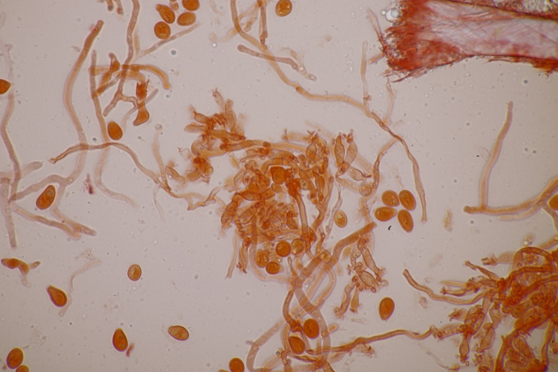 Ein weiterer Tipp fürs Färben (was ja viele Dinge deutlicher erkennbar macht): Material in einen Tropfen Kongorot geben, den Tropfen ganz eintrocknen lassen, anschließend mit einem Tropfen Wasser/KOH das überschüssige Kongorot entfernen und danach in KOH mikroskopieren. Das sorgt für eine sehr intensive Rotfärbung.