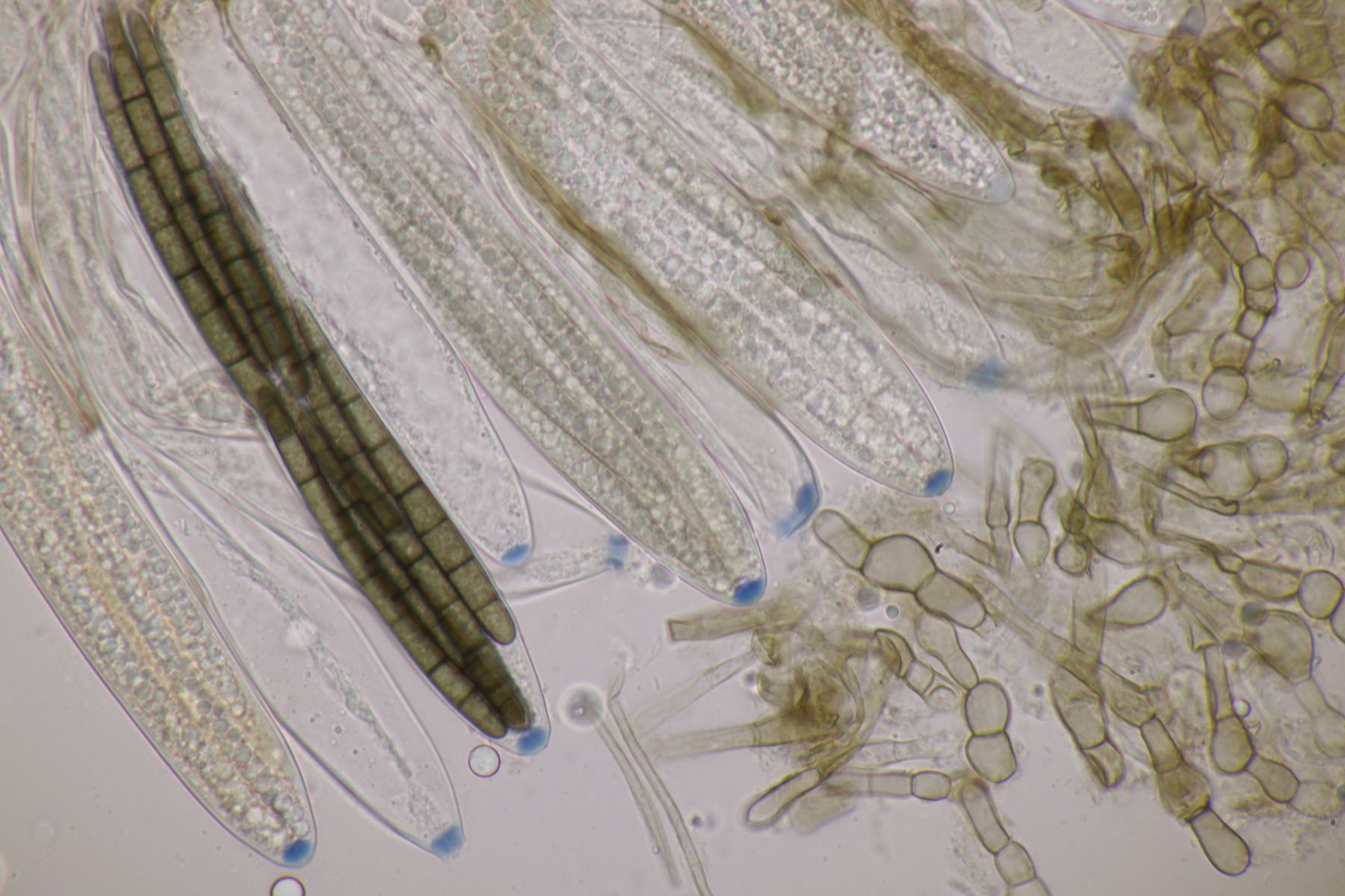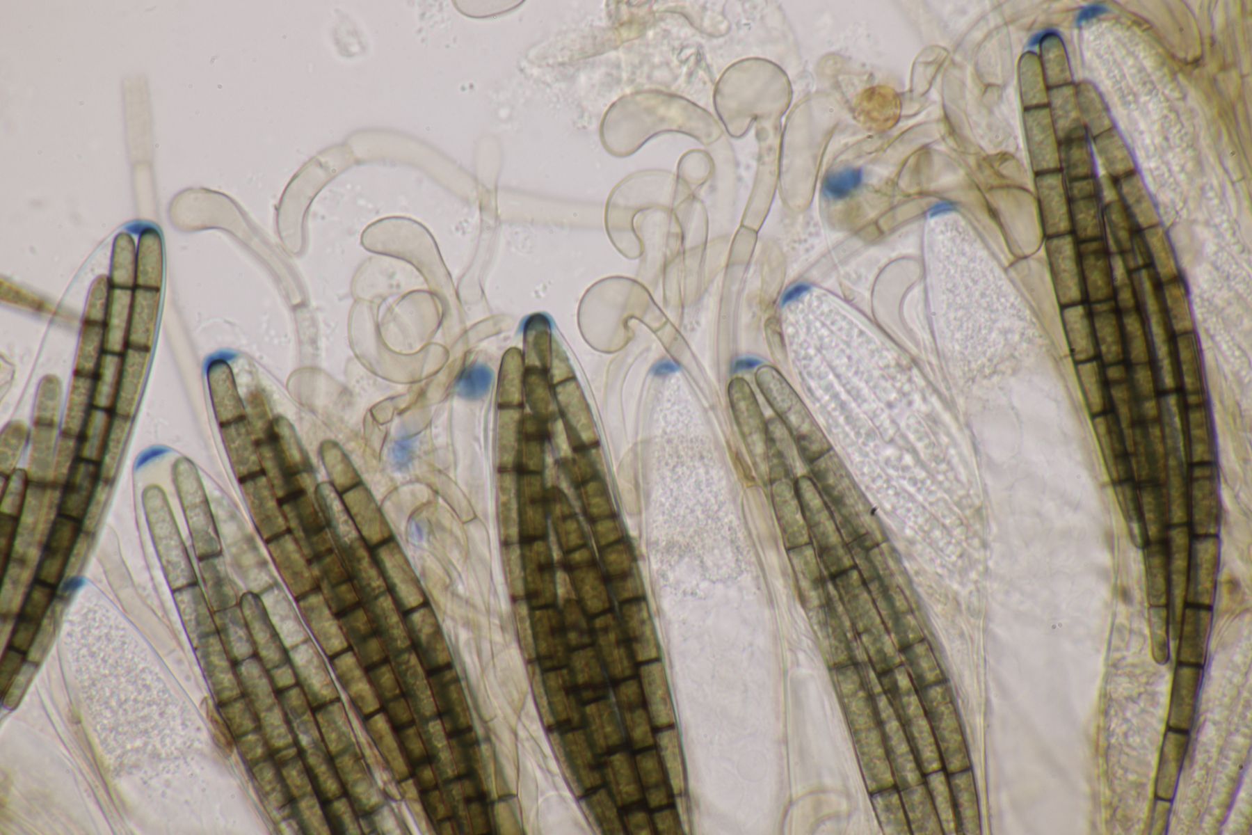 1. Eine Delitschia mit Sporen von 51-55 µm x 19-23 µm, die weder besonders tief noch schräg septiert sind. Die Sporen sind uniseriat in den Asci angeordnet, womit ich dann zu Delitschia patagonica komme, die ja hier im Forum auch schon aus der Lüneburger Heide vorgestellt wurde.