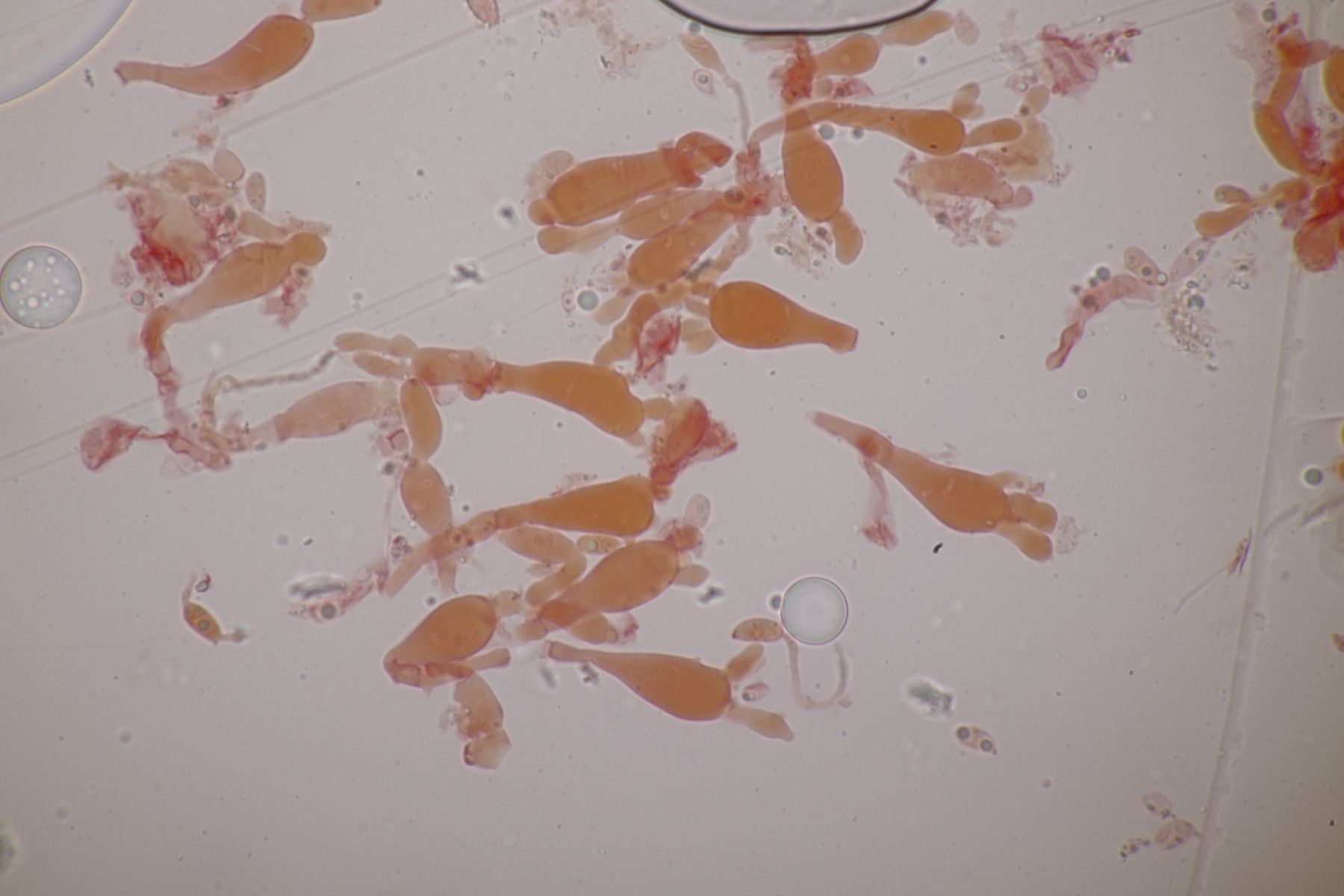 tolle Funde! Bei der befallenen Calvaria mußte ich von den Sporen her sofort an eine Tremella denken. Da müßten dann aber natürlich auch septierte Basidien im Präparat zu finden sein (davon ab hat der niederländische Phragmo-Schlüssel keine Tremella an Clavaria gelistet). Entoloma incanum hast du mikroskopiert um E. verae auzuschließen?