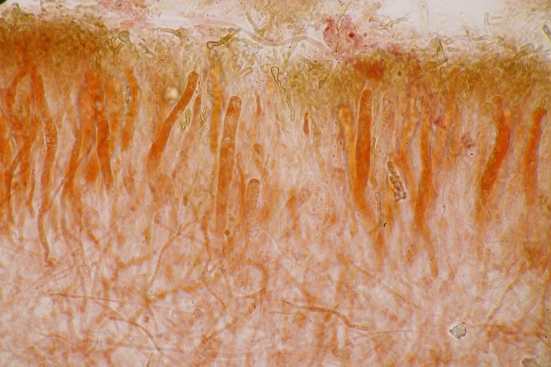Die Huthaut von Hygrocybe coccinea kannst du dir einmal auf meiner Homepage anschauen, wobei der Ixo-Charakter dort nicht so gut zur Geltung kommt. Deshalb hier noch mal im direkten Vergleich: