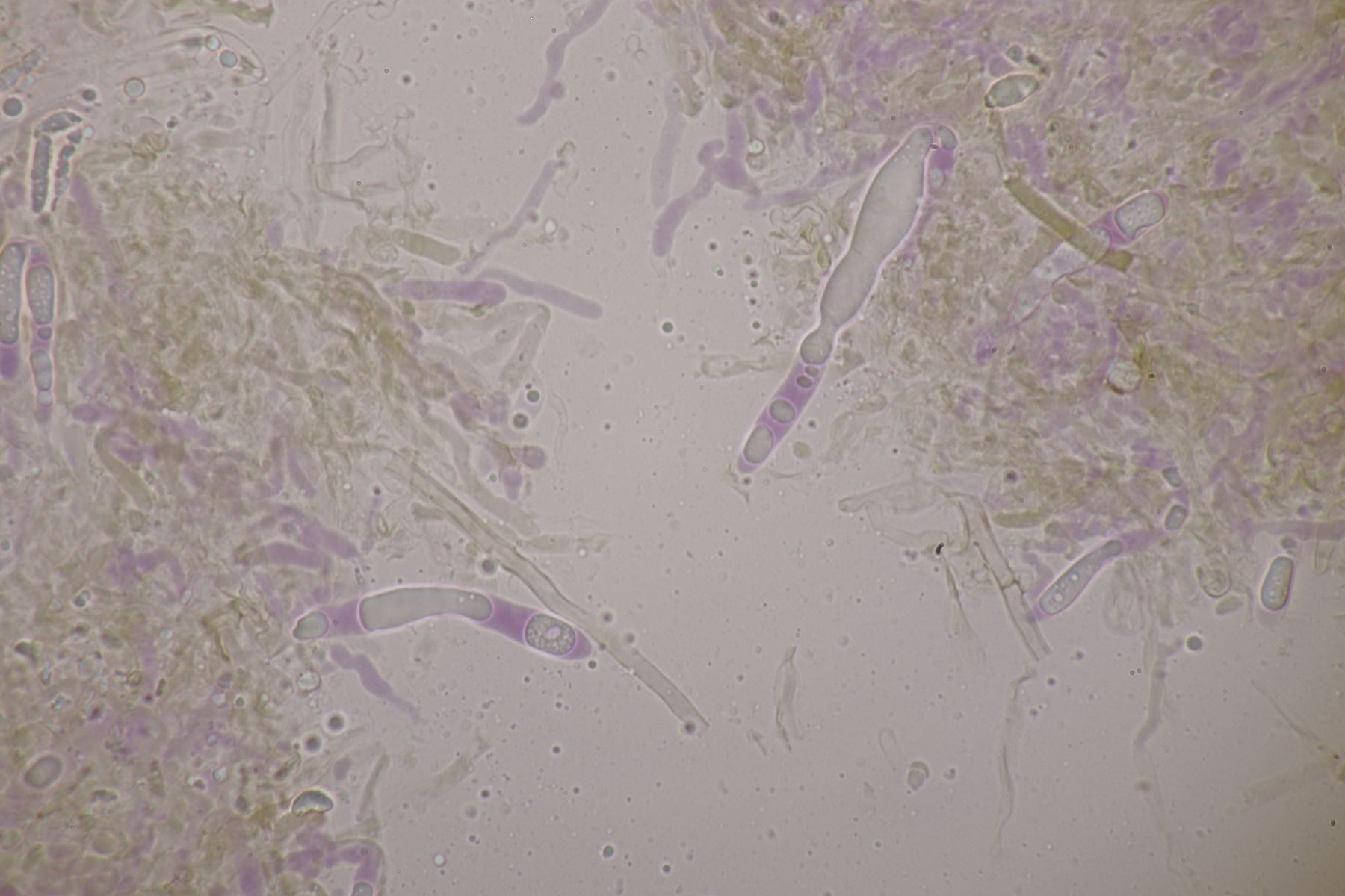 Kongorot in Ammoniak: Färbemittel für Basidiomyceten aller Art. Färbt die Zellwand.