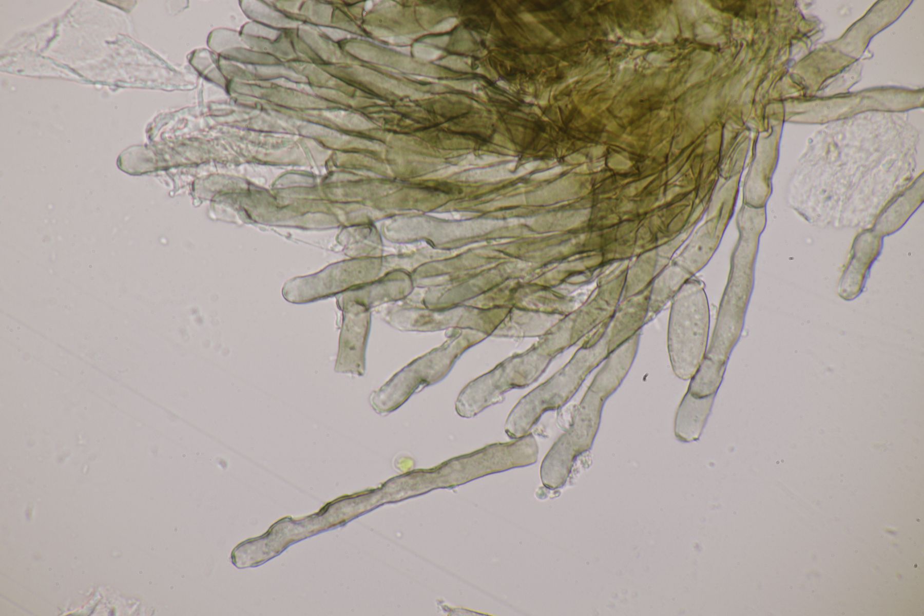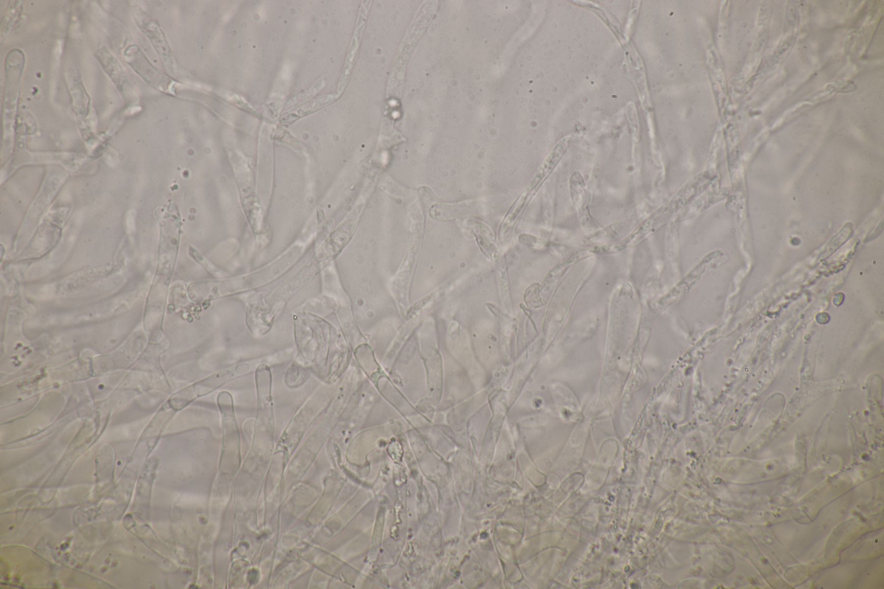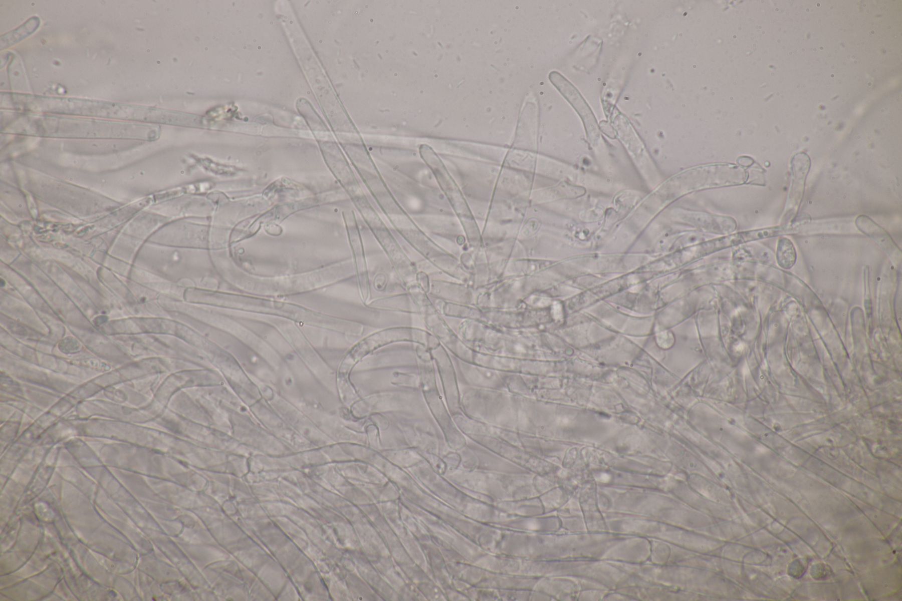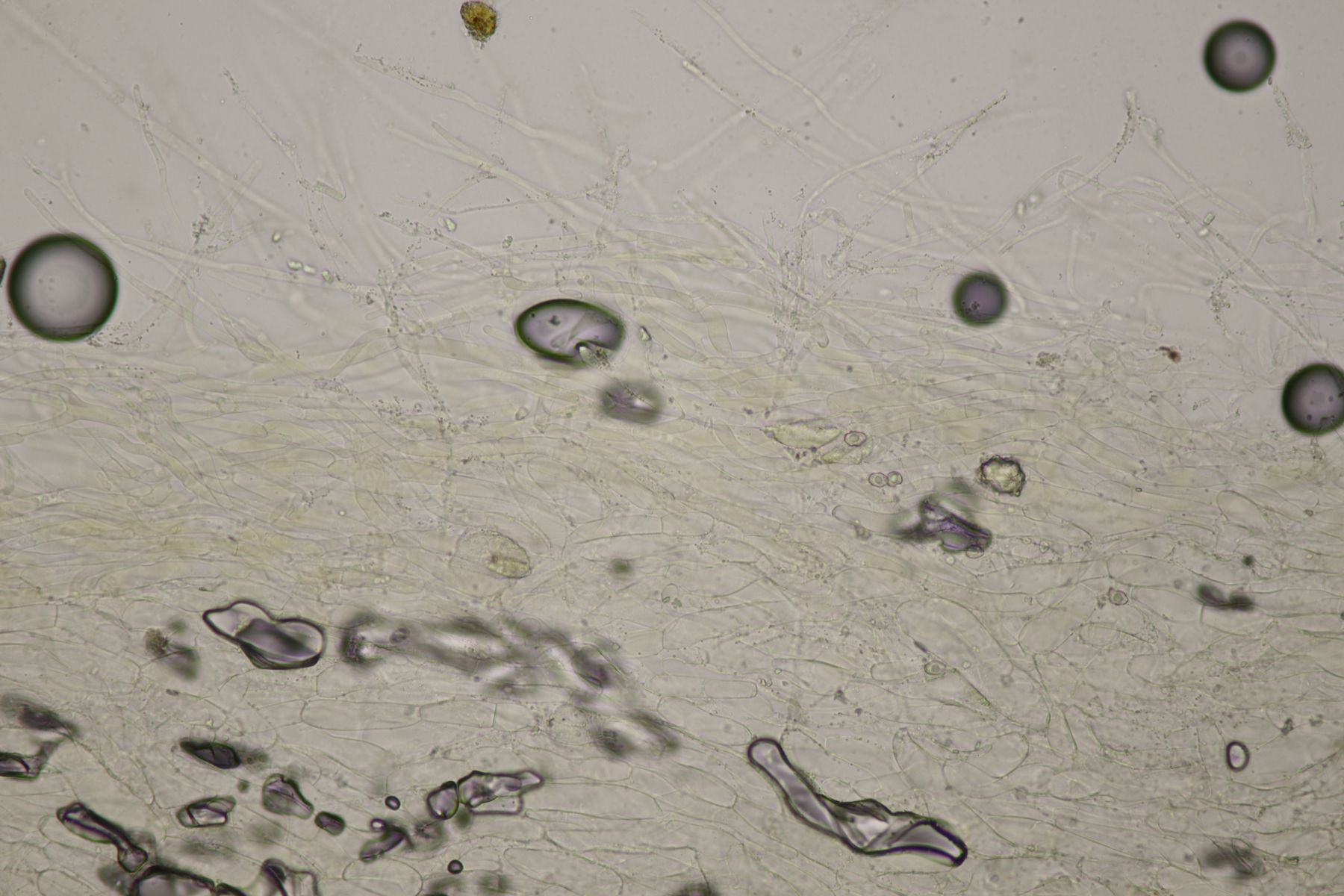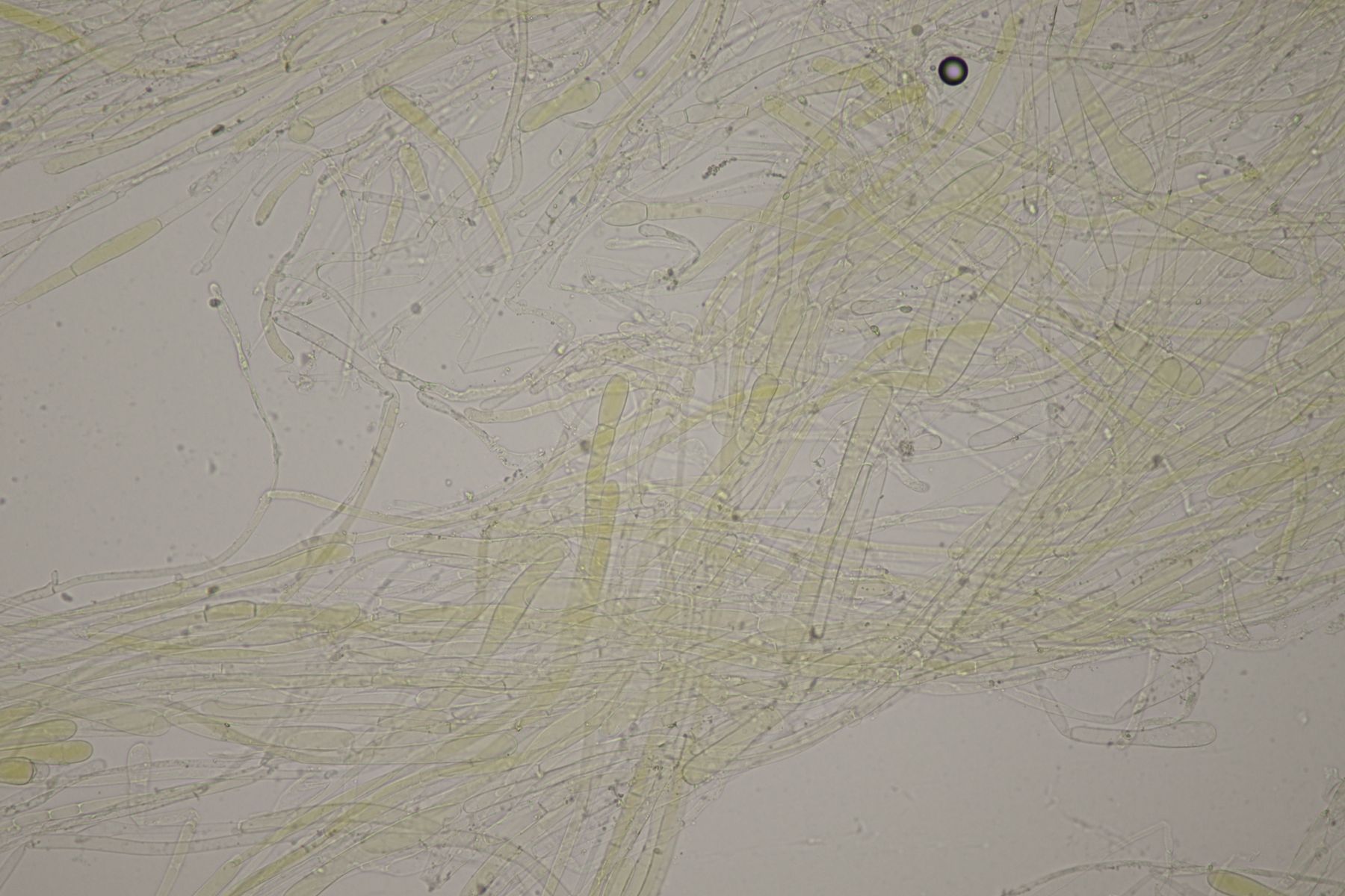 das mit dem Mikroskopierbesteck ist wohl auch durchaus eine Geschmacksfrage. Ich selber nutze zum Beispiel gar keine Pinzette. Das mag zum Teil daran liegen, daß ich eine Pinzette habe, die nicht wirklich scharf und präzise ist und mit der man folglich nichts so hinbekommt, wie man es gerne hätte. Stattdessen setze ich ausschließlich auf Rasierklingen und zwei Präpariernadeln. Mit den Rasierklingen mache ich einerseits radiale Schnitte der Huthaut, andererseits löse ich damit einzelne Lamellen aus einem Fruchtkörper heraus und schneide mir dann je nach Bedarf eine dünne Scheibe von der Lamellenschneide (Beurteilung von Cheilozystiden) oder aber ein schmales Rechteck aus der Lamelle (Untersuchung der Lamellentrama bei Saftlingen). Mit den beiden Präpariernadeln zerzupfe ich dann mein Präparat, nach dem ich so ein Lamellenstück gefärbt und anschließend in KOH gegeben habe. Akupunkturnadeln sind hier zwar feiner, aber leider auch zu weich um einen guten Zupfeffekt zu haben. Daneben kann man mit den Nadeln auch einen Streifen Huthaut im Wasser verschieben, so daß die Hutoverfläche dann am Ende sehr schön von links nach rechts durchs Präparat läuft.