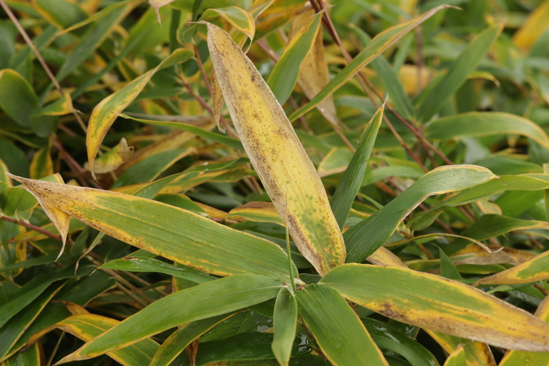1. Auf dem Weg zum Gebiet an einer Bushaltestelle: Puccinia deutziae auf Bambus