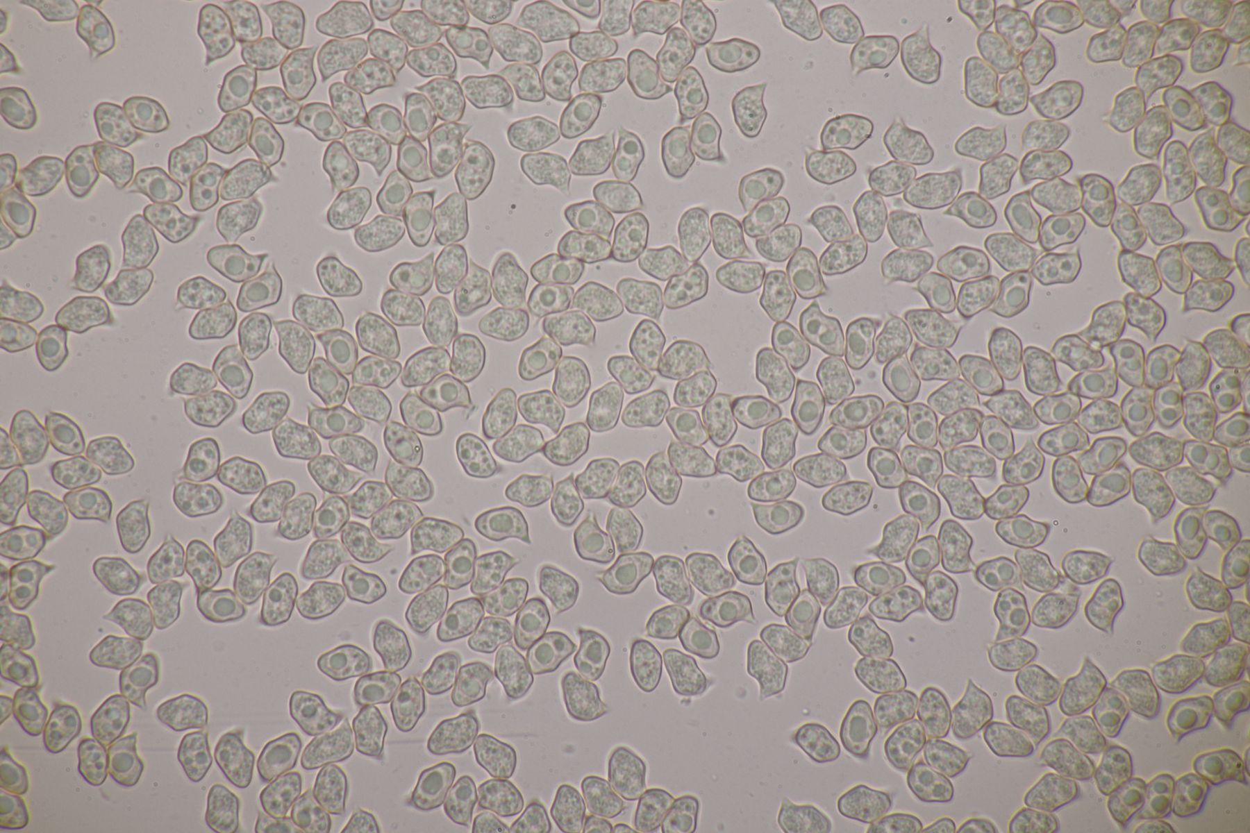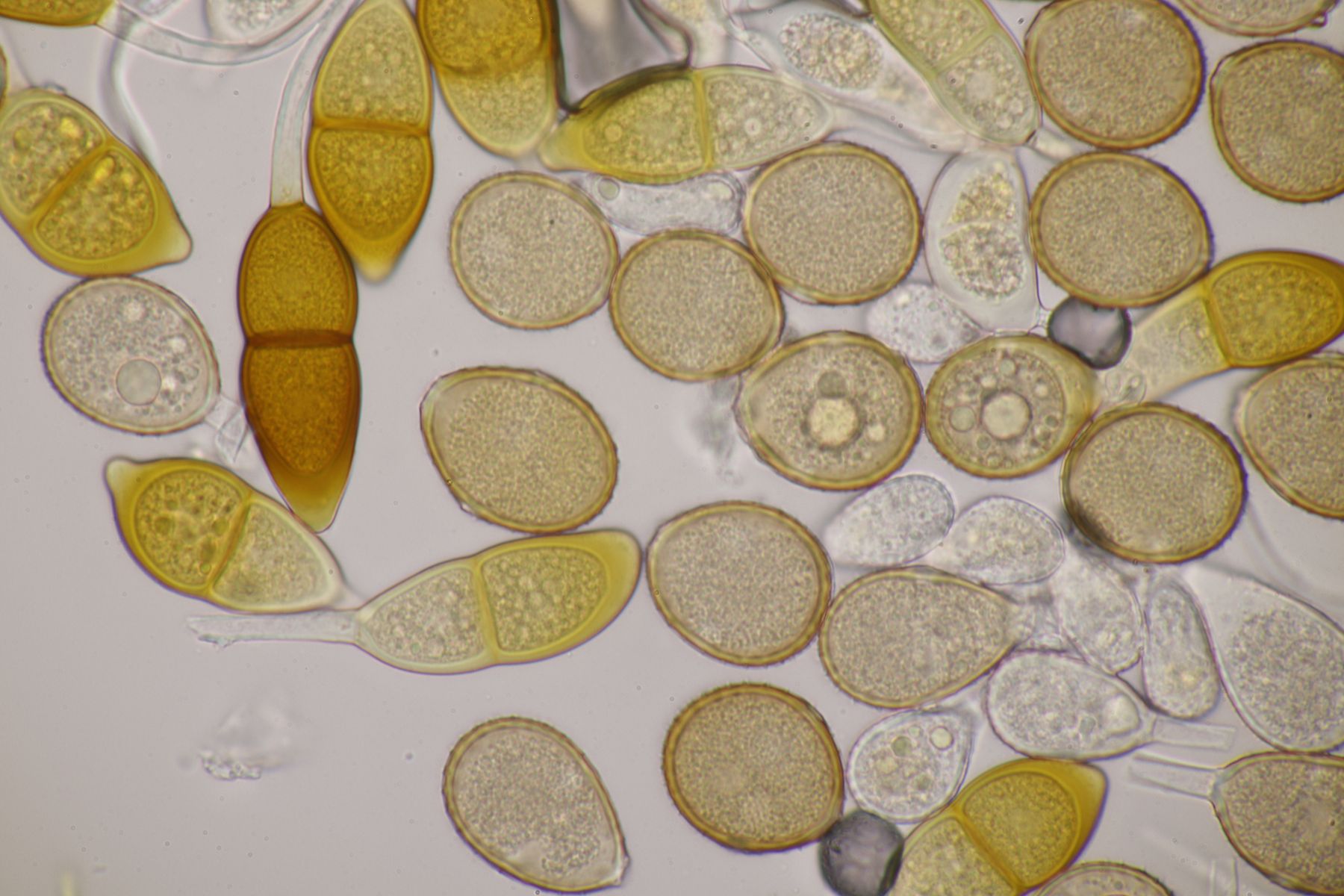 12. Eines der absoluten Highlights: Porpolomopsis calyptriformis. Sporenmaße 7,6±0,6 µm × 5,5±0,2 µm, Q=1,4±0,1; 6,7-8,8 µm × 5-5,9 µm, Q=1,2-1,5