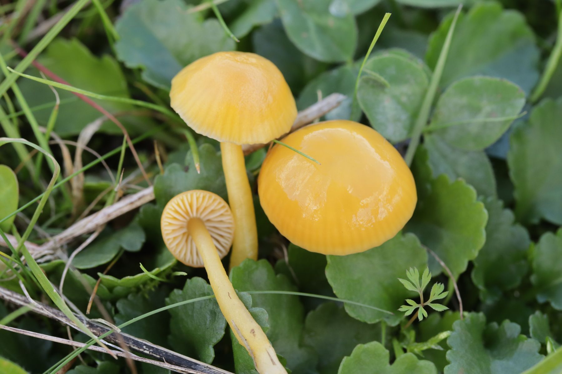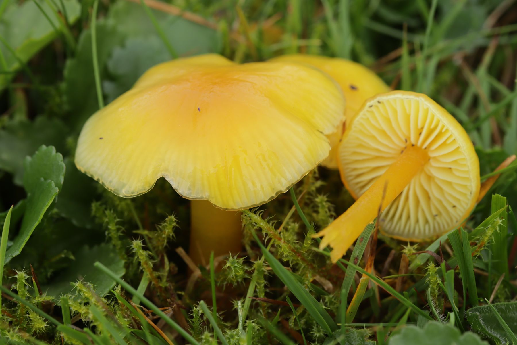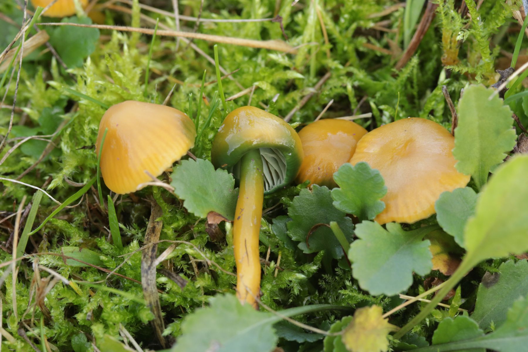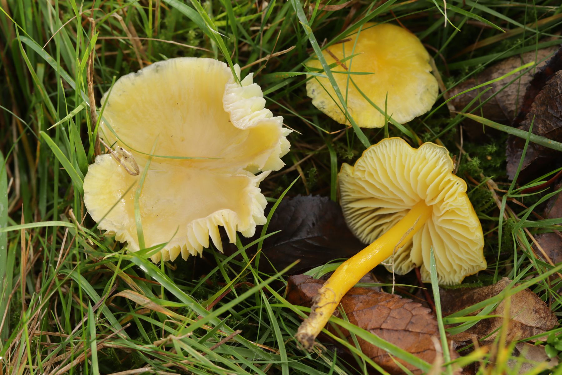 Gliophorus psittacinus kann schon sehr stark gelb ausbleichen. Ich hatte am Wochenende auch einige Fruchtkörper, die praktisch gar keine Grüntöne mehr hatten. Sie wuchsen aber direkt zusammen mit weiteren Fruchtkörpern, die zumindest auf der Unterseite z.T. noch sehr deutlich grün waren.