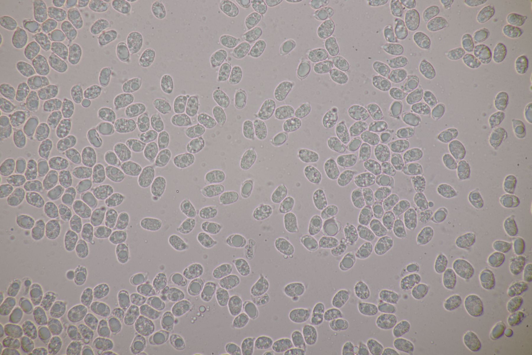 17. Eines der Highlights: Cuphophyllus berkeleyi mit Sporen von 5,9±0,4 µm × 4±0,1 µm, Q=1,5±0,1; 5,3-6,8 µm × 3,7-4,3 µm, Q=1,3-1,8. Interessanterweise hatte ObsIdentify aus einer ähnlichen Kollektion des Gebietsbetreuers Calocybe gambosa gemacht ![]()