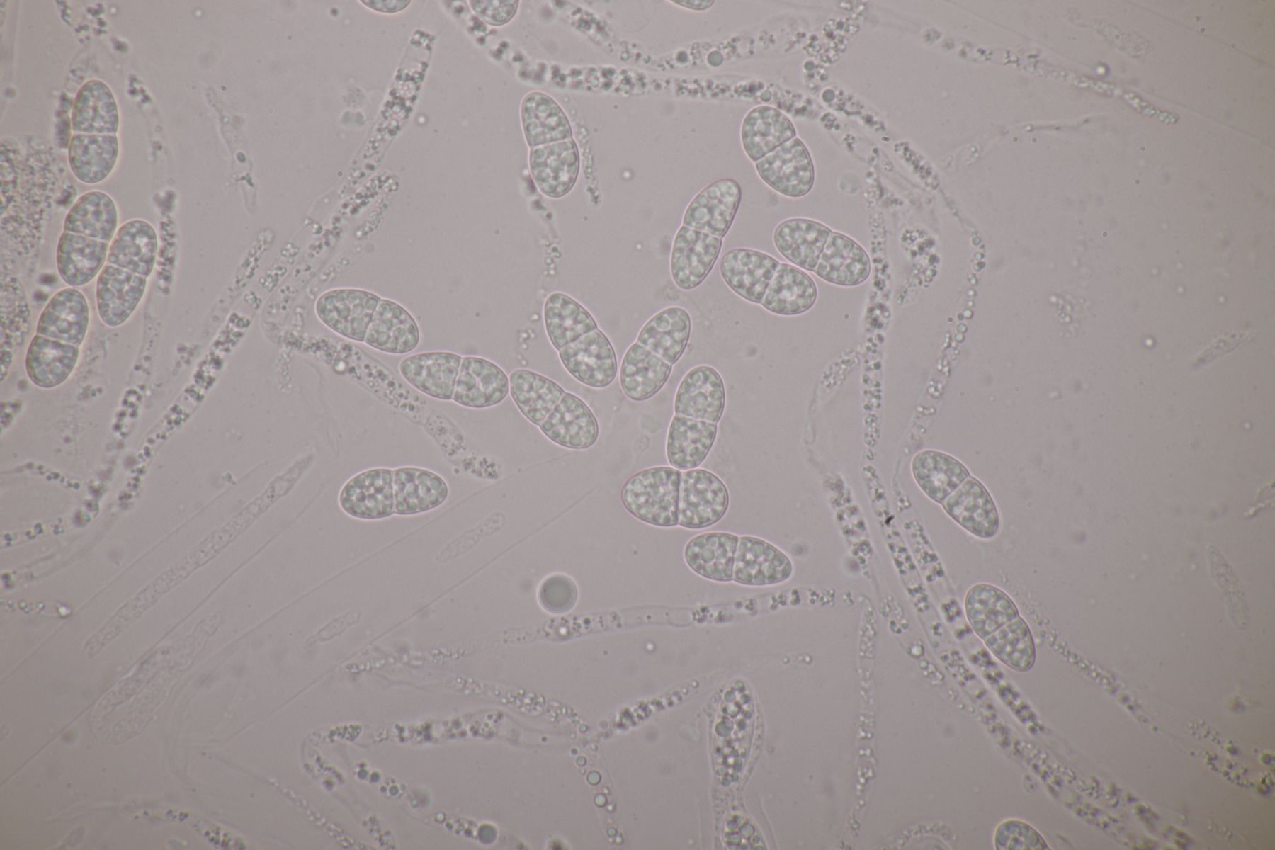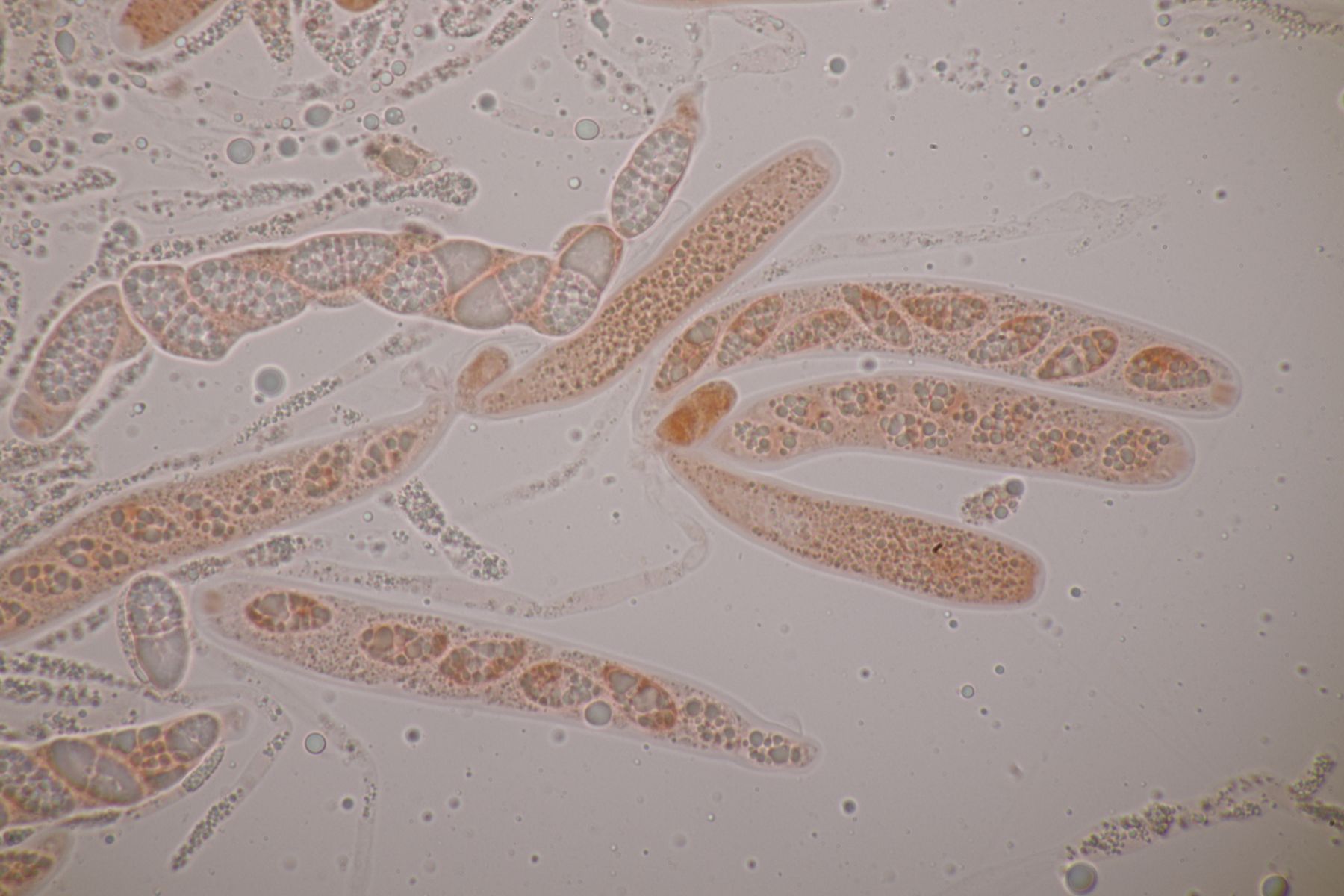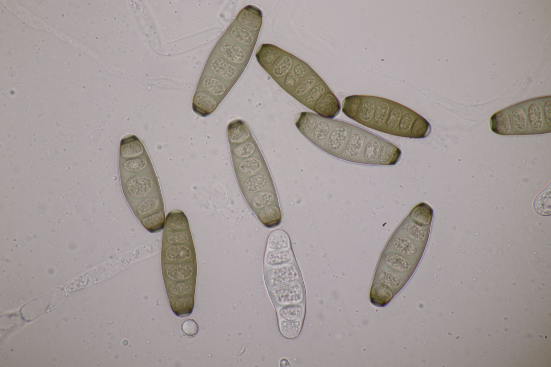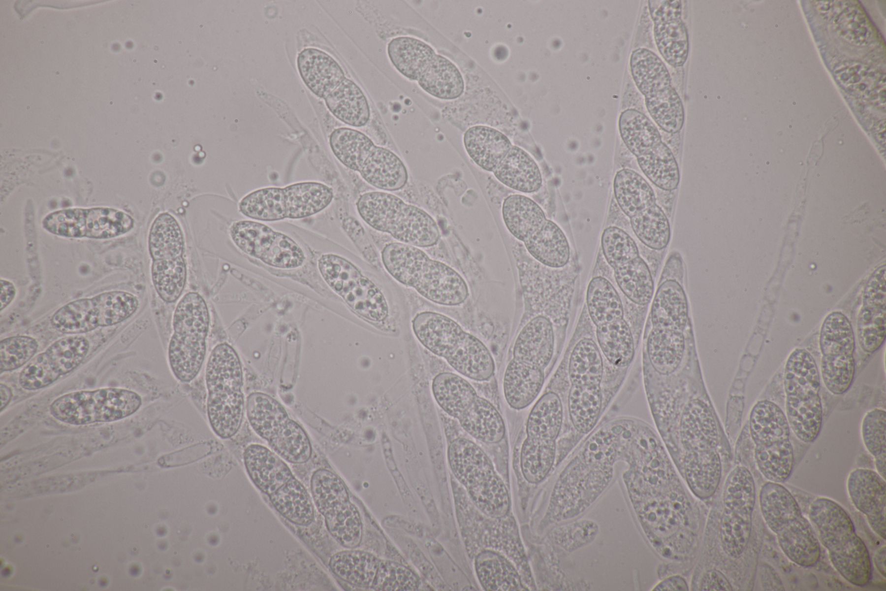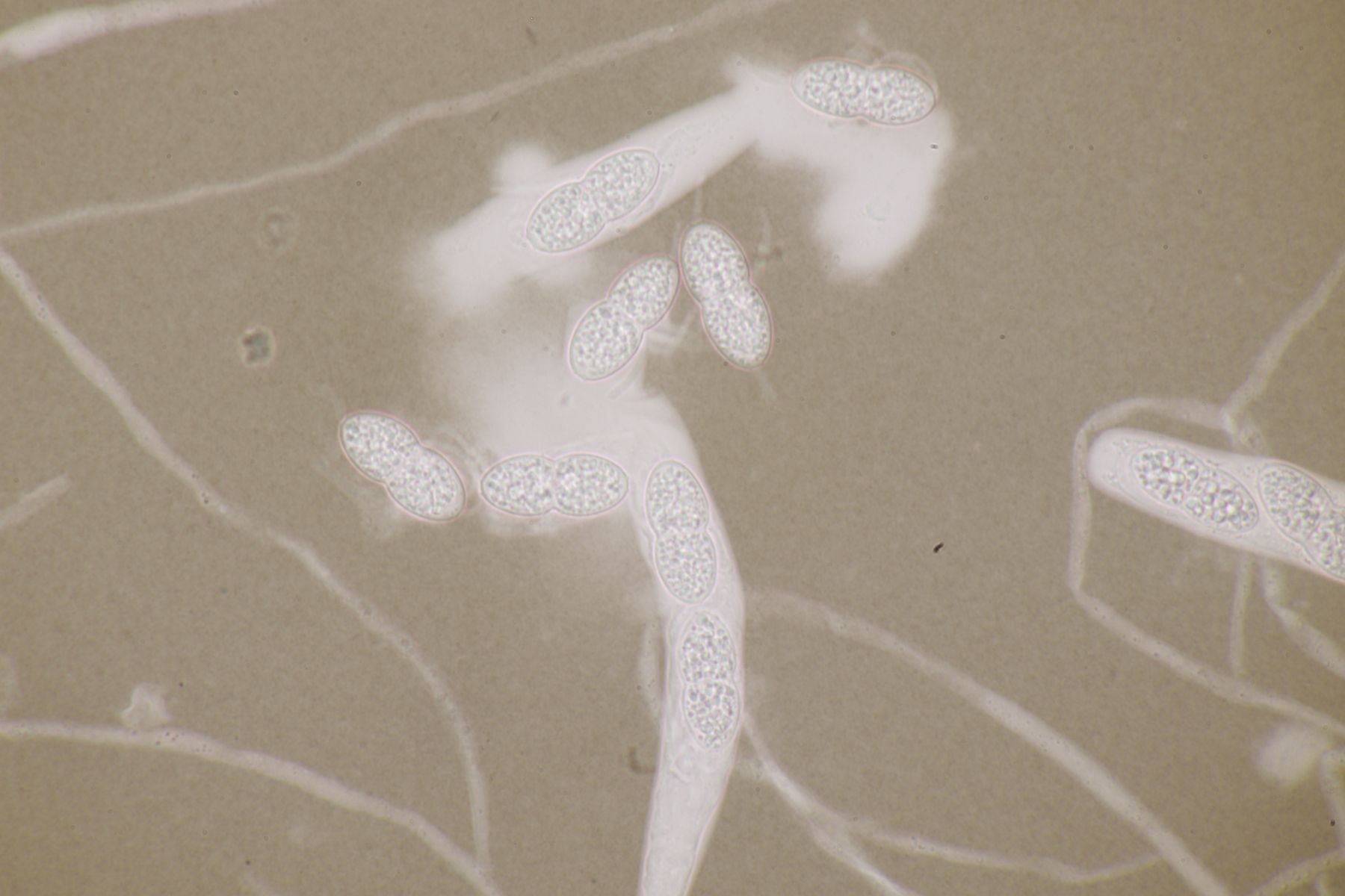 1. Das hier war ein Beifang bei der Präparation eines anderen Pilzes. Weitere Fruchtkörper habe ich nicht gefunden, deshalb ist kann ich insgesamt nur wenig über den Fund sagen. Sporen messen 6,5 x 4 µm. Letztens wurde hier ja eine Sordaria minima vorgestellt, die relativ kompatibel mit meinem Fund aussieht.