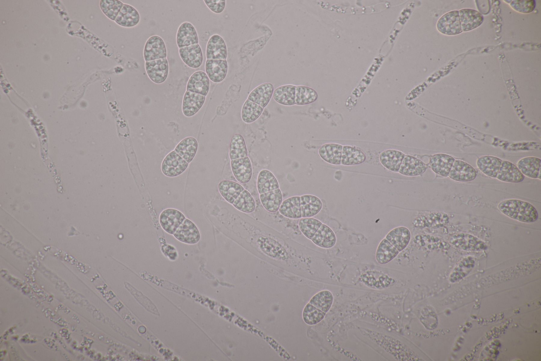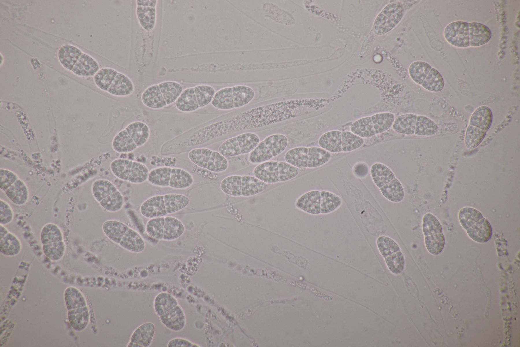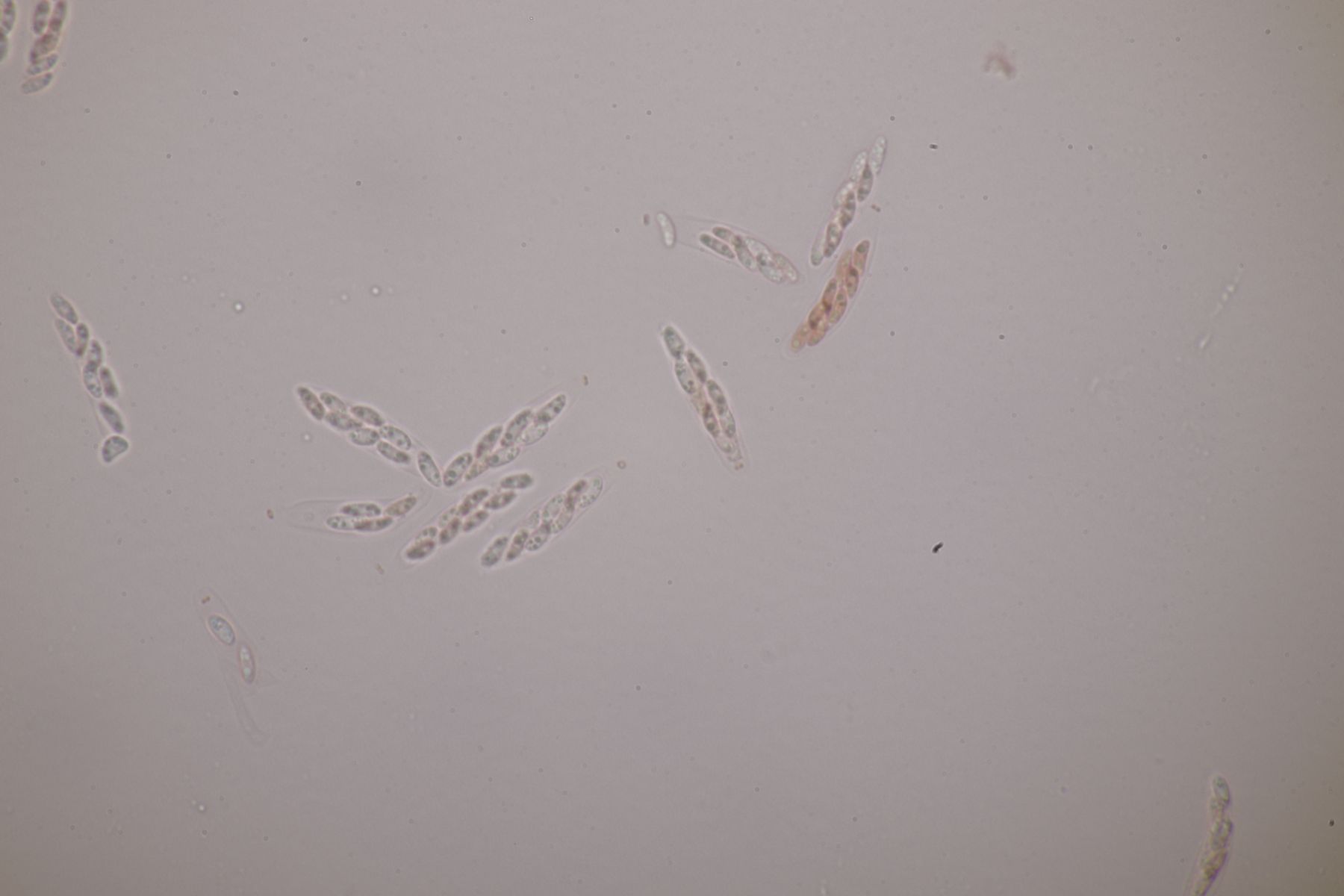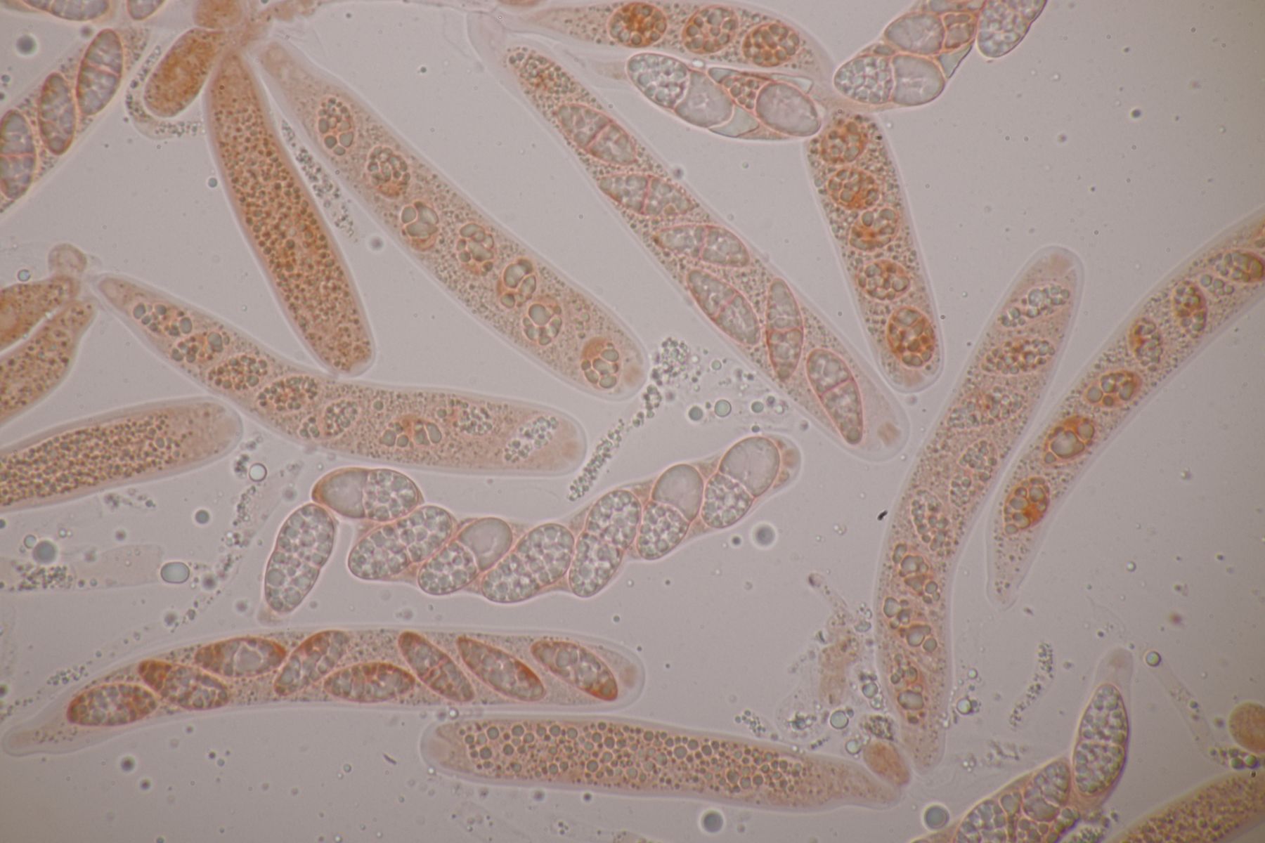 1. Das hier war ein Beifang bei der Präparation eines anderen Pilzes. Weitere Fruchtkörper habe ich nicht gefunden, deshalb ist kann ich insgesamt nur wenig über den Fund sagen. Sporen messen 6,5 x 4 µm. Letztens wurde hier ja eine Sordaria minima vorgestellt, die relativ kompatibel mit meinem Fund aussieht.