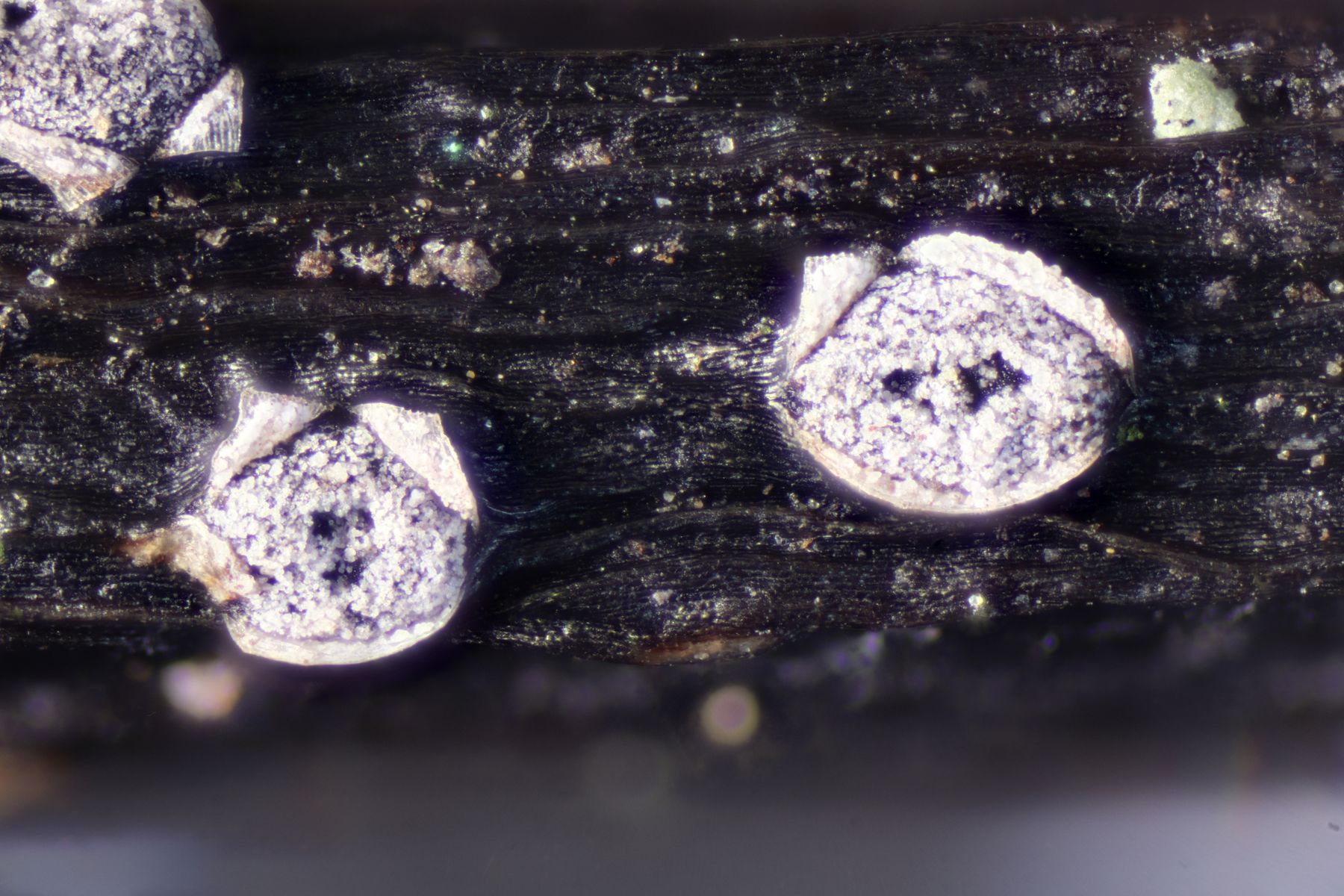 5. Eine unbekannte Anamorphe auf den Stängeln von alten Populus-Blättern. Da fehlt mir leider jegliche Idee.