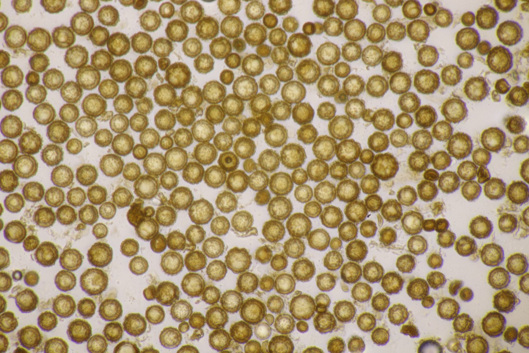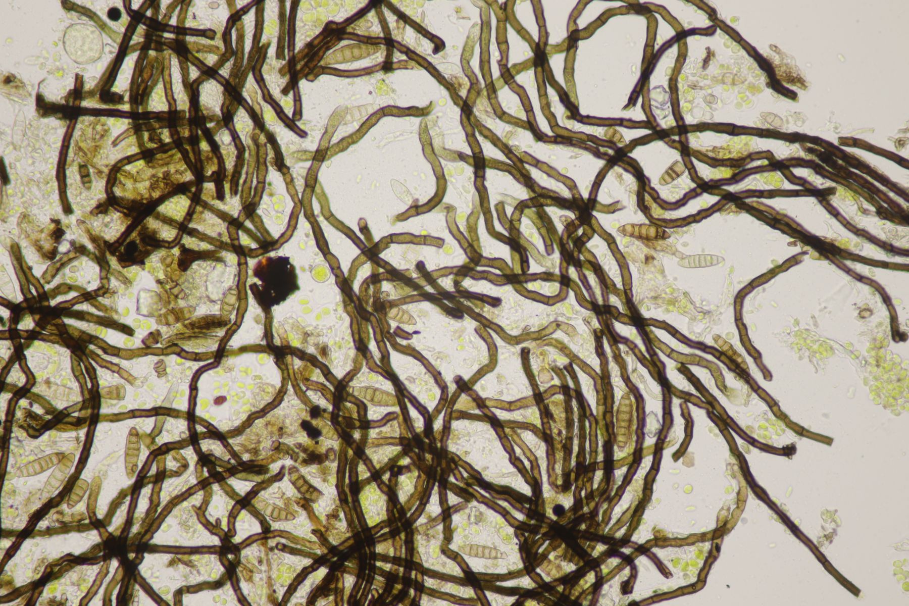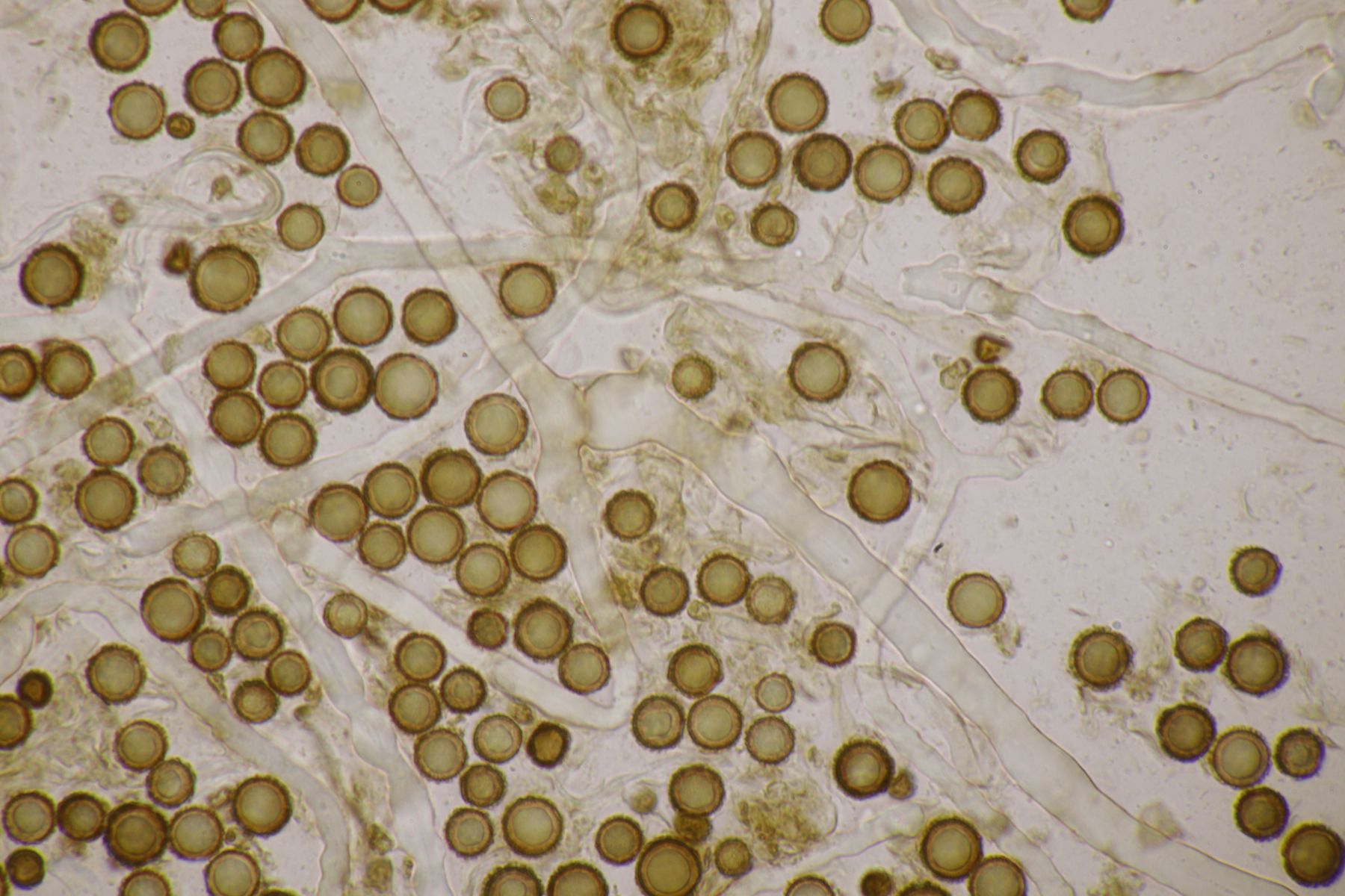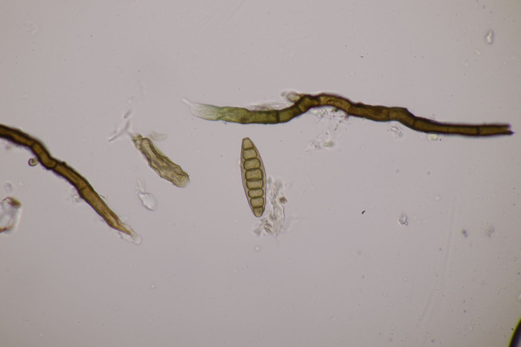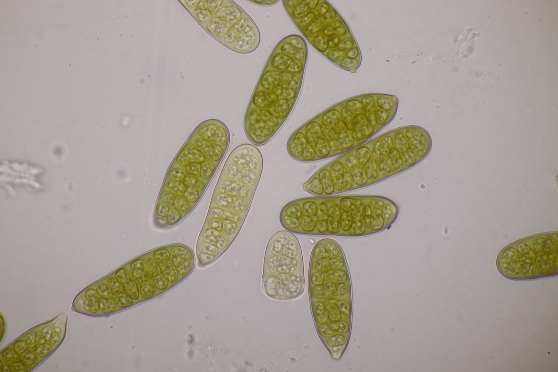 Ich würde das Substrat aber nie in KOH einweichen, sondern immer nur in Wasser. Auch wenn Pyrenomyceten meist sehr robust sind, sind es immer noch Ascomyceten und die gehören erstmal in Wasser und nicht in KOH oder andere Chemie. Später kann man dann gerne einen Tropfen Lugol und danach auch Kongorot ins Präparat geben um zu schauen, ob der Apikalapparat verfärbt (das wird hier aber wohl nicht der Fall sein). Ansonsten hilft es, wenn man im Präparat die Ascusmasse von der harten Schale (und sonstigem Dreck) separiert und dann den ganzen Schmock vorsichtig entfernt. Dadurch bekommt man ein viel flacheres Präparat hin und kann dann auch bei nur wenigen vorhandenen reifen Sporen diese gut beurteilen. Beim konkreten Fall hier, der wohl Richtung Leptosphaeria geht, wird es nämlich wichtig sein, die Zellenzahl und Größe der Sporen zu beurteilen (und ggfs. ob an den Enden Schleimhüllen vohanden sind).