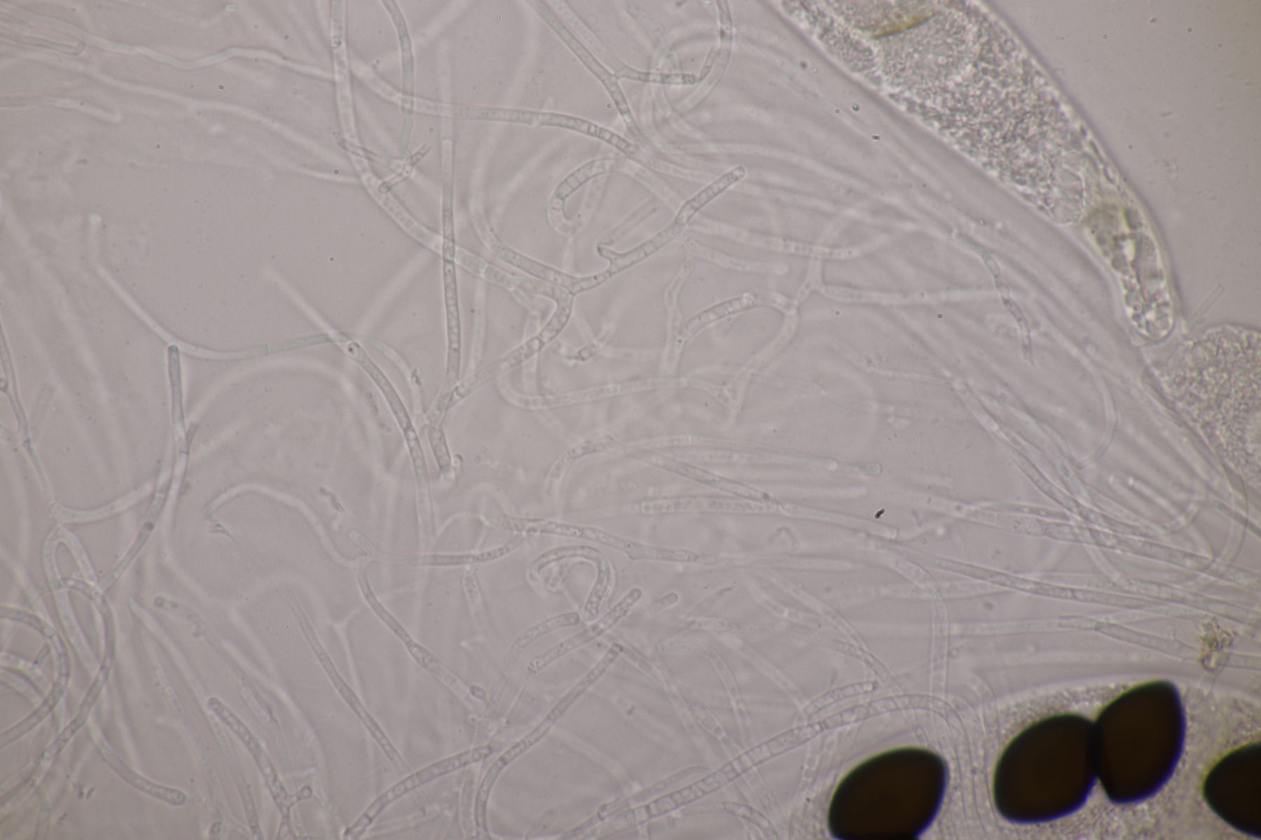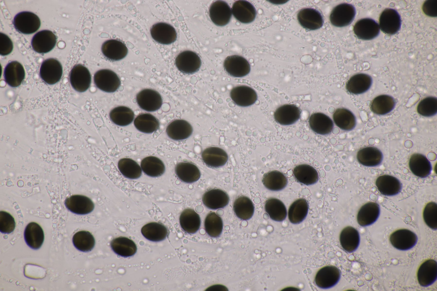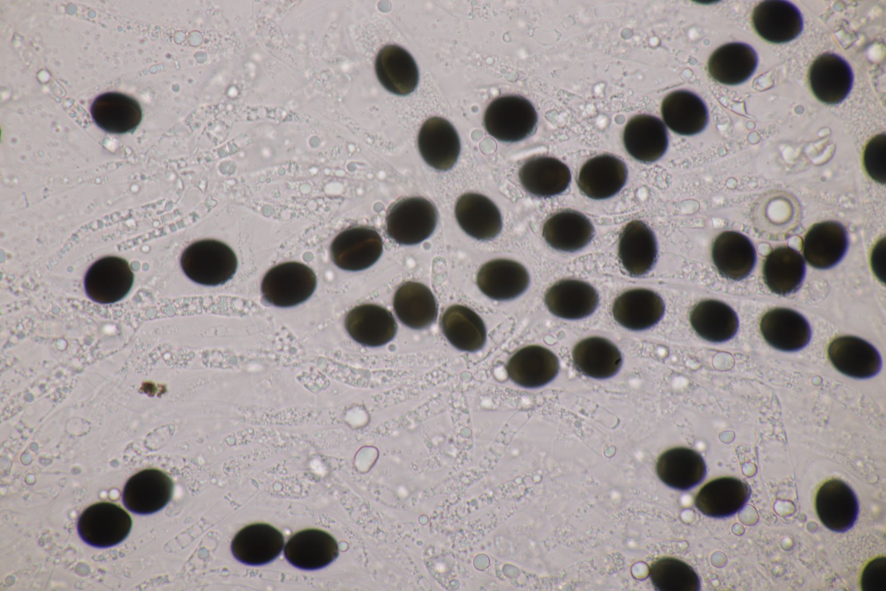 2. Coniochaeta vagans mit Sporen von 13-14.5 µm x 10-11 µm