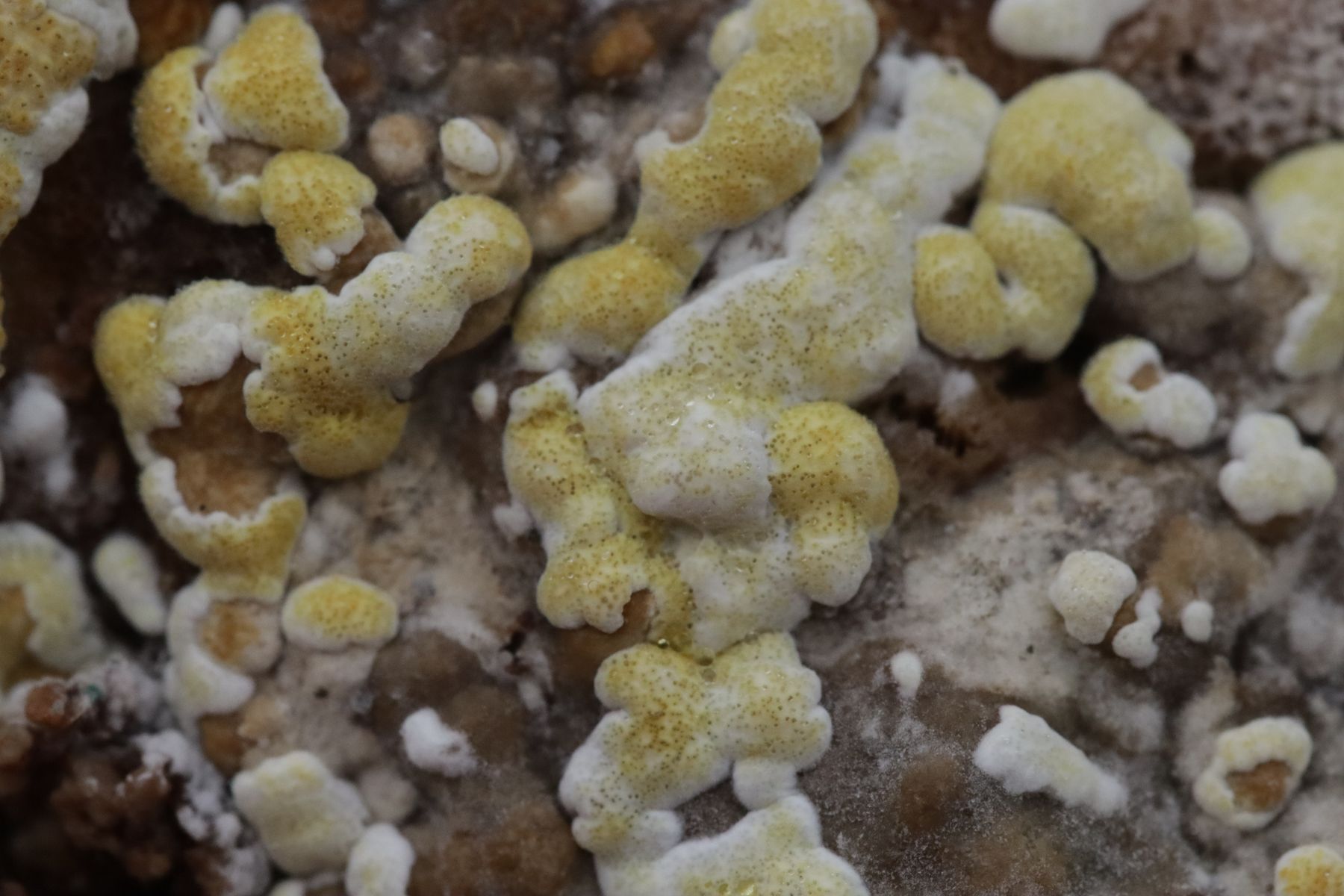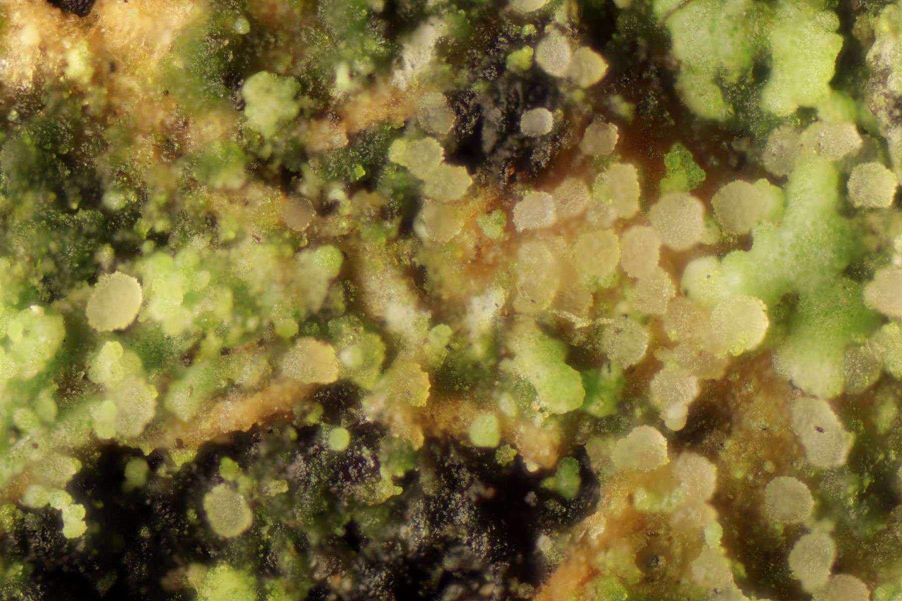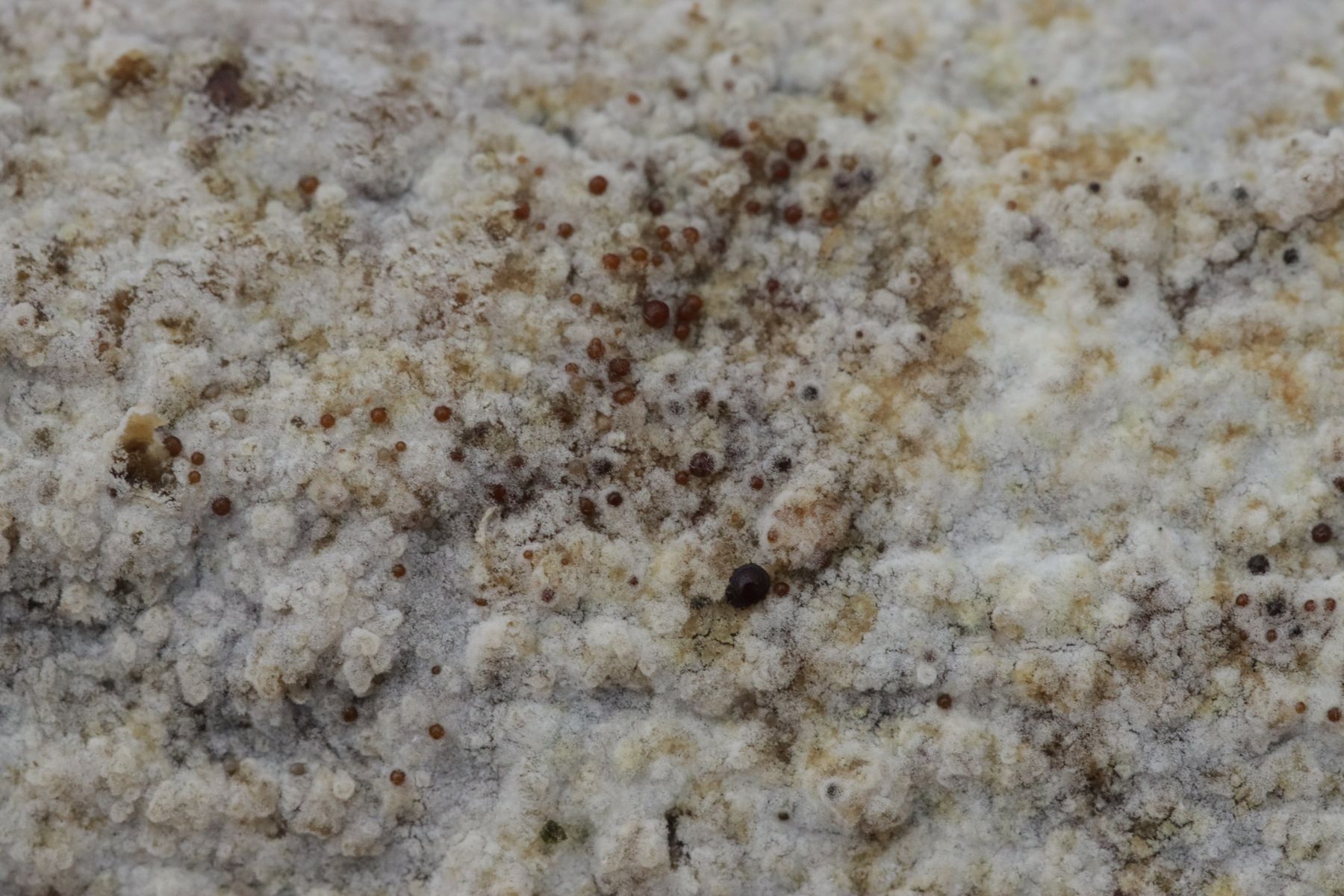 2. Auch noch auf dem Ast diese kleinen, weißen Knubbel, die mikroskopische leider nur aus Hyphen bestanden. Vielleicht etwas Richtung Burgoa?