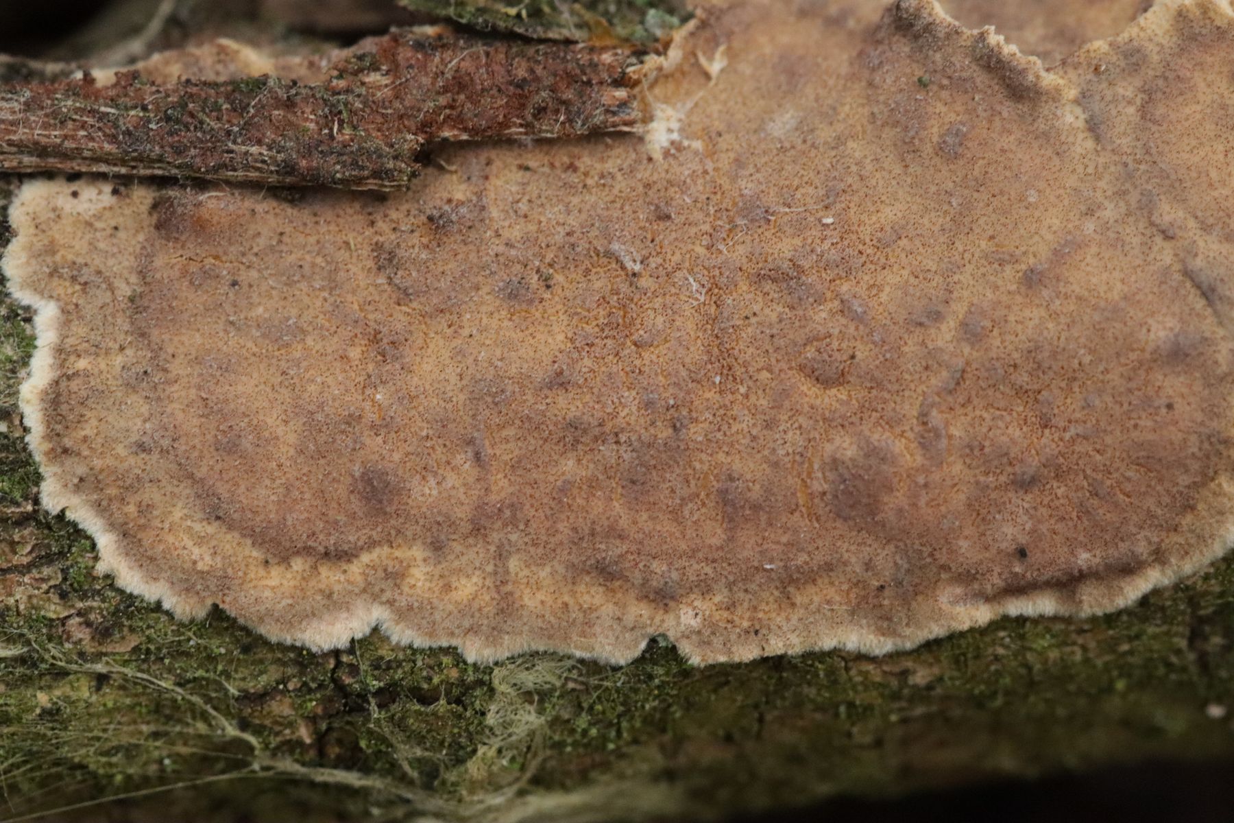 2. Noch ein Rindenpilz auf dem gleichen Rindenstück. 7.9-9.5 µm x 4.2-4.9 µm, Q=1.7-2.2. Basidien 4-sporig, Schnallen vorhanden. Zystiden gab es auch in allen Farben und Formen, aber insgesamt nur relativ wenig, so daß sich da kein kohärentes Gesamtbild ergibt.