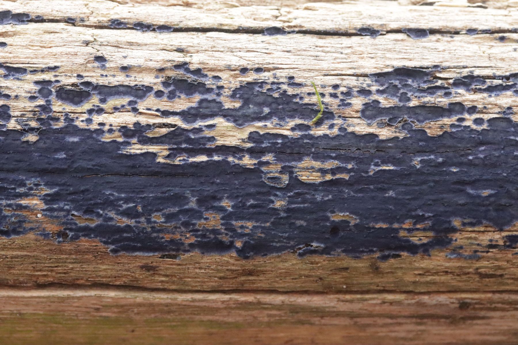 Das stimmt. Im ersten Moment wäre ich auch fast vorbeigelaufen. Das Wetter war ja eher düster und der blaue Rindenpilz eher auf der dem Boden zugewandten Seite des Holzes wuchs, wirkte er erstmal fast schwarz und wie ein Pyrenomycet. Umso größer natürlich die Freude, als er dann blau wurde.