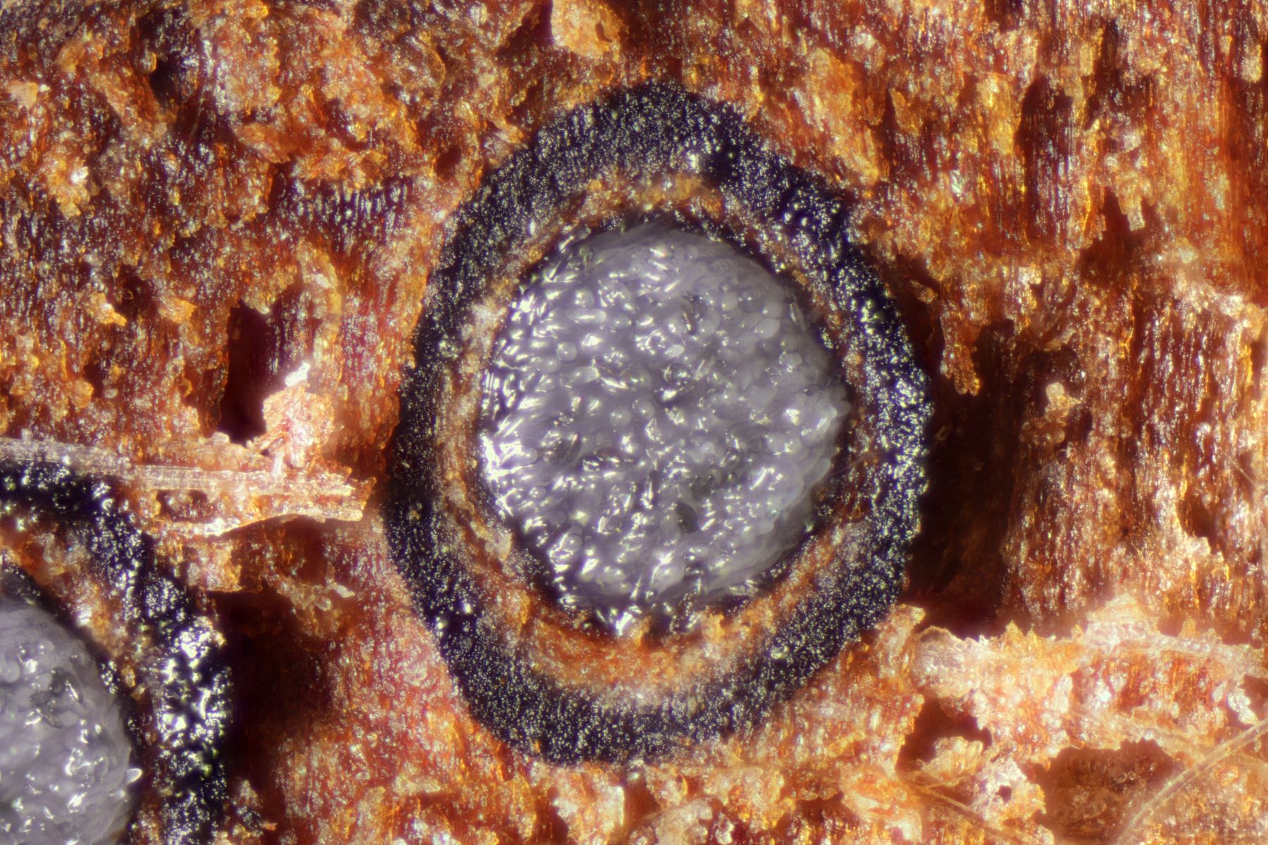 an Heiligabend habe ich auf dem Weg zu meinen Eltern ein Stück Mahonie aus einem Vorgarten mitgenommen, nachdem mir daran schwarze Knubbel aufgefallen sind. Das hat sich dann mikroskopisch als Hingucker erwiesen: