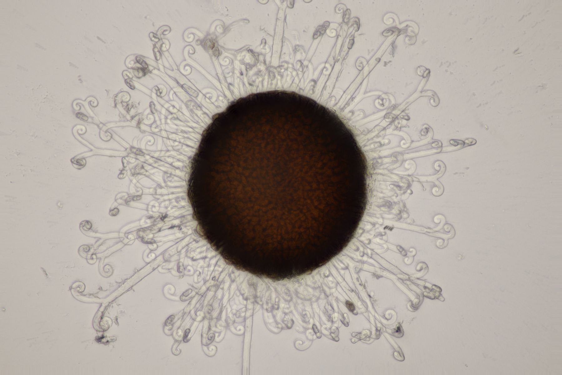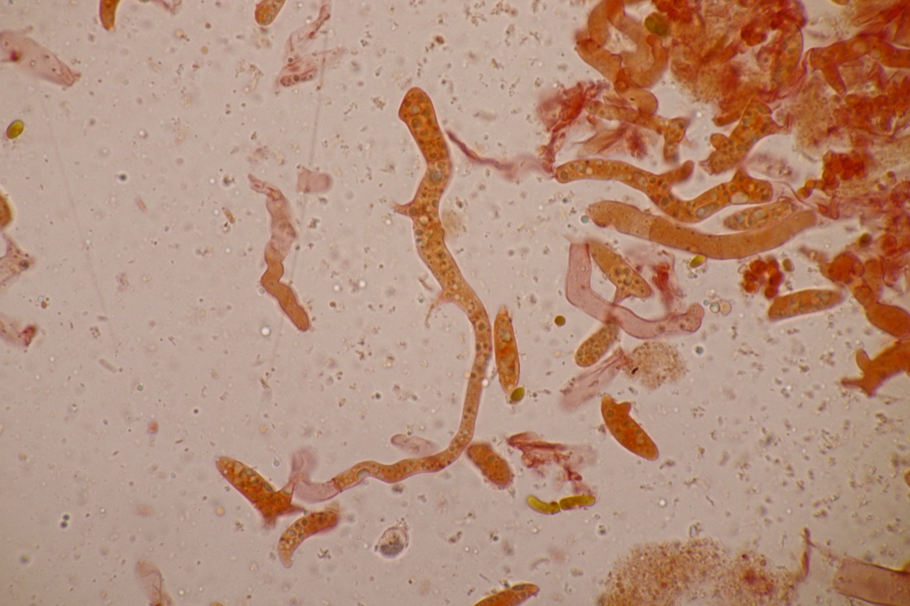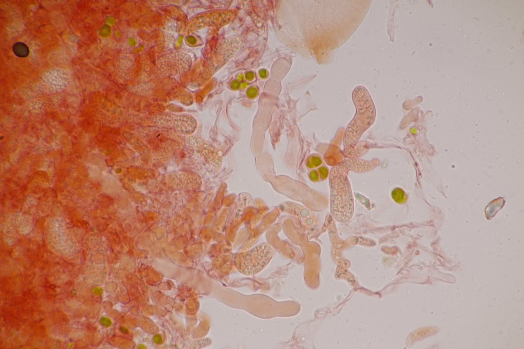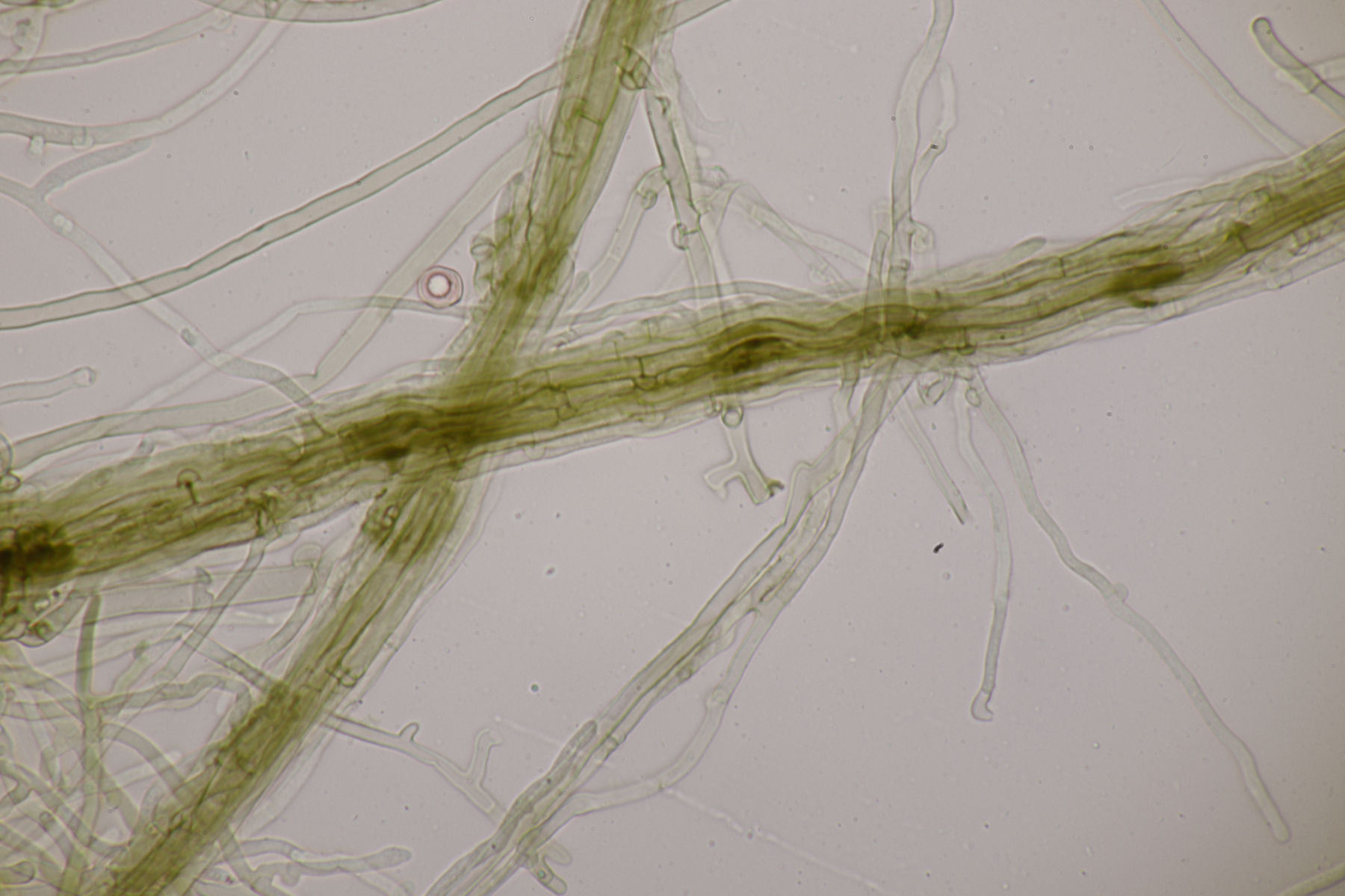 da Ralf und ich uns seit seinem letzten Sirobasidium-Fund immer noch nicht wieder bei Exkursionen getroffen haben, hat er mir den Ast jetzt einfach per Post zugeschickt. Der Fund ist dann natürlich auch direkt unters Mikroskop gewandert und ich denke, daß ich diesmal Bilder machen konnte, die etwas zufriedenstellender als die von 2020 sind.
