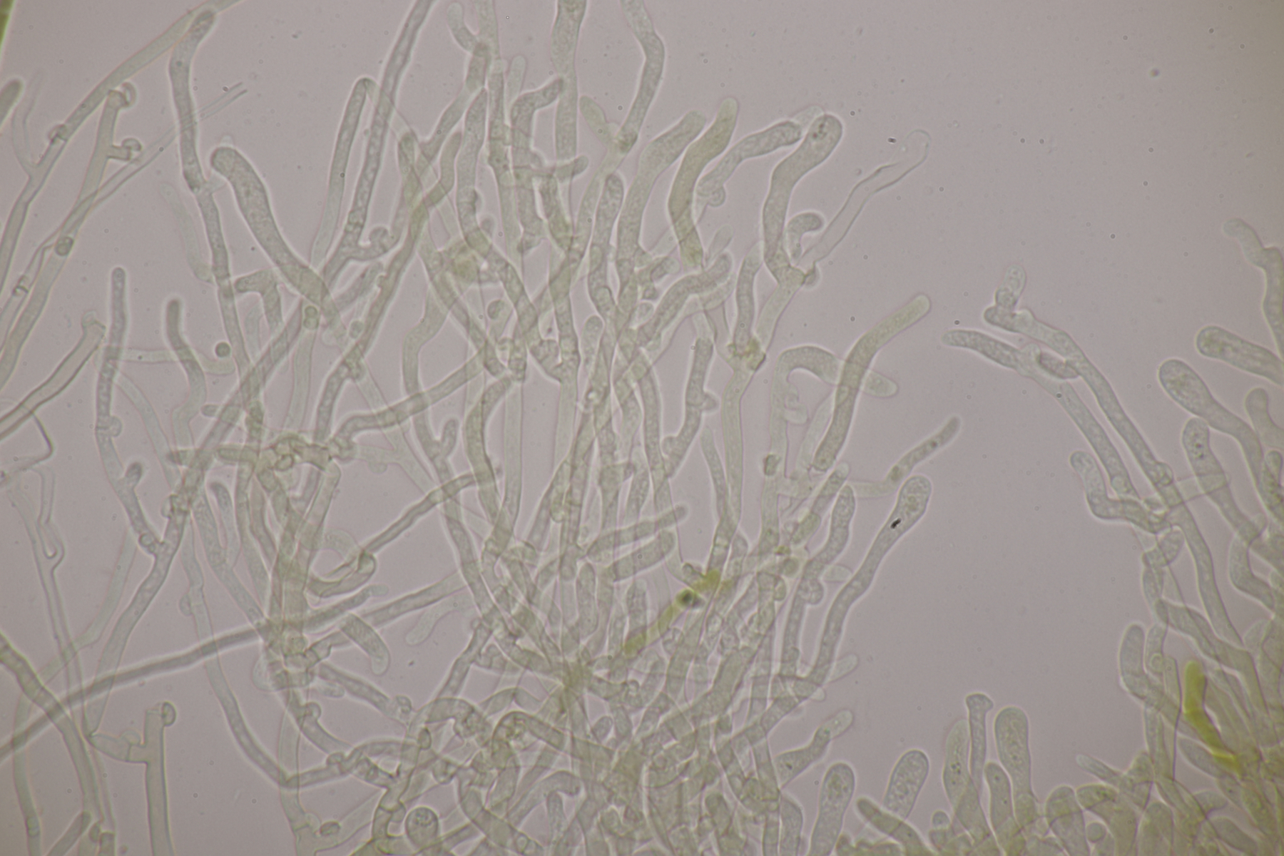 12. Hier hatte ich im Feld auf Helicobasidium gehofft, aber es war dann doch nur eine Anamorphe, zu der ich keine Idee habe.