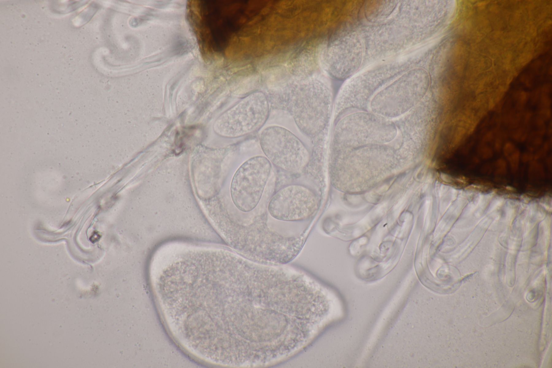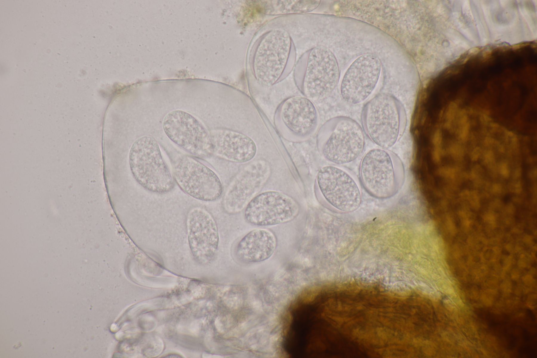 11. Zum Schluß noch eine Sordaria mit Sporen von 31-32 µm x 19-20.5 µm, Q=1.5-1.7, womit ich hier bei Sordaria macrospora rauskomme. Aber bis jetzt bin ich in dieser Gattung fast noch nie bei der richtigen Art rausgekommen.... ![]()